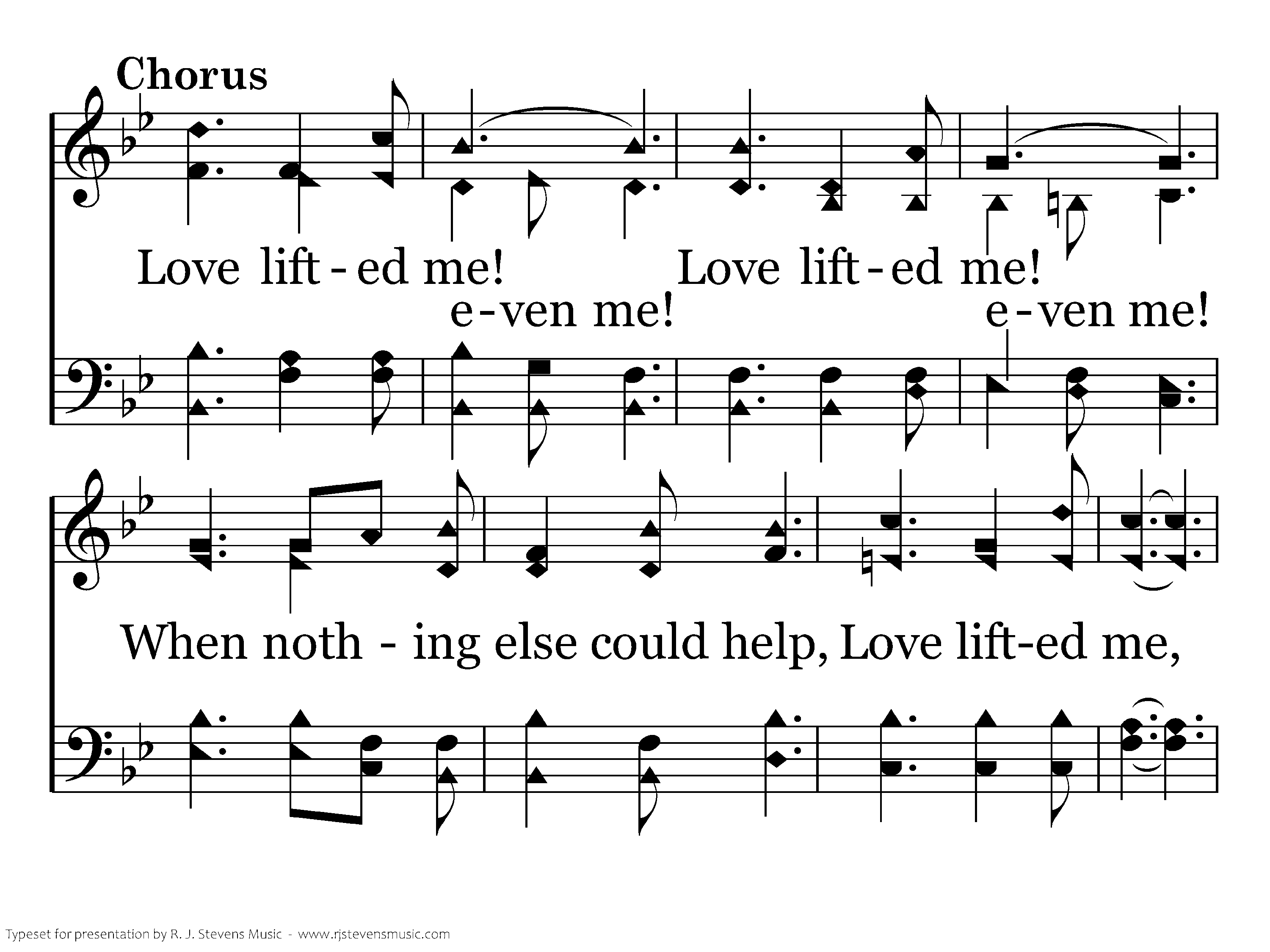 Love lifted me! Love lifted me! When nothing else could help, Love lifted me, Love lifted me! Love lifted me! When nothing else could help,Love lifted me!
