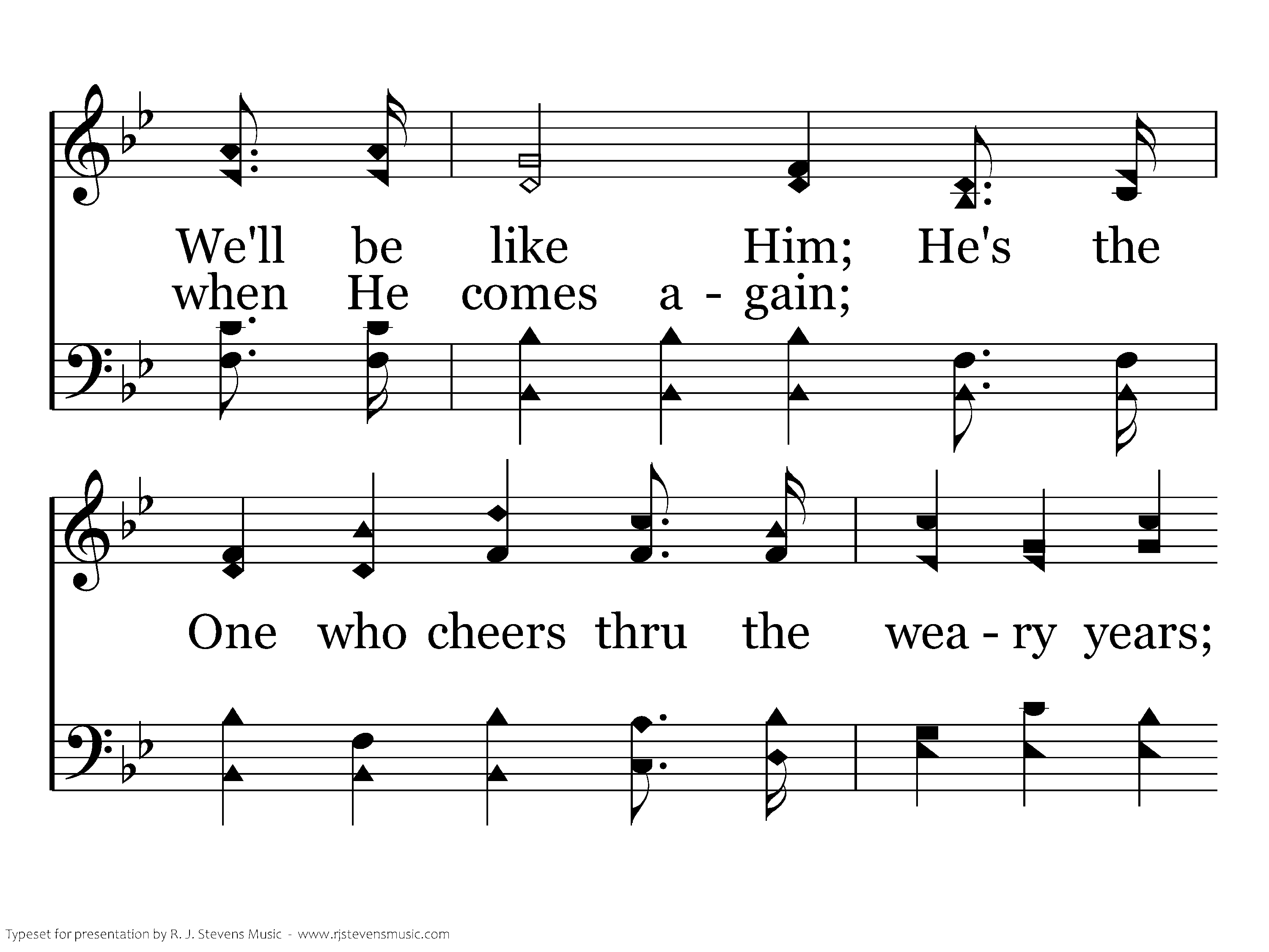 He's the One we love, He's the One we prove, He's the One who cheers thru the weary years; We'll be like Him when He comes.