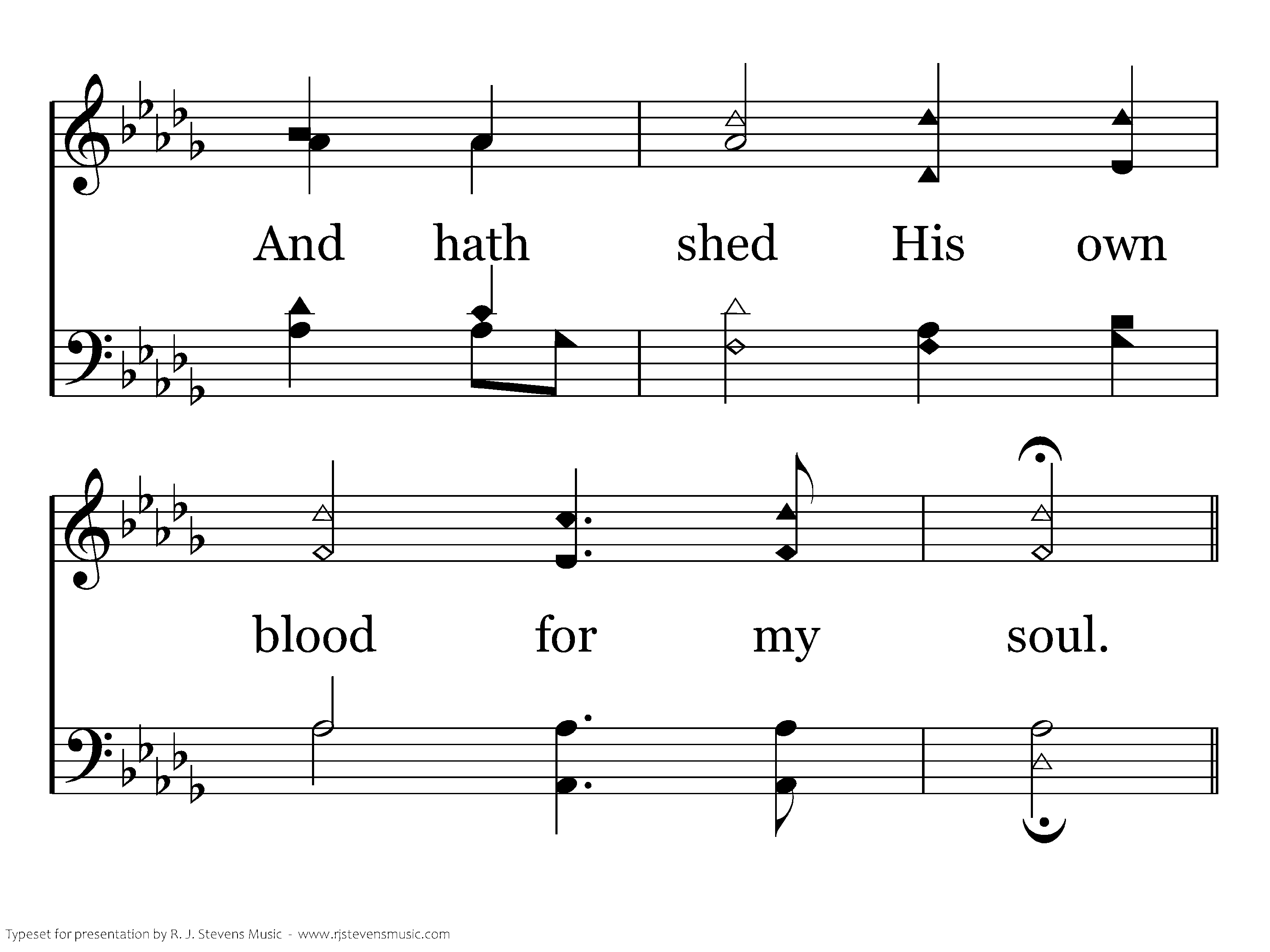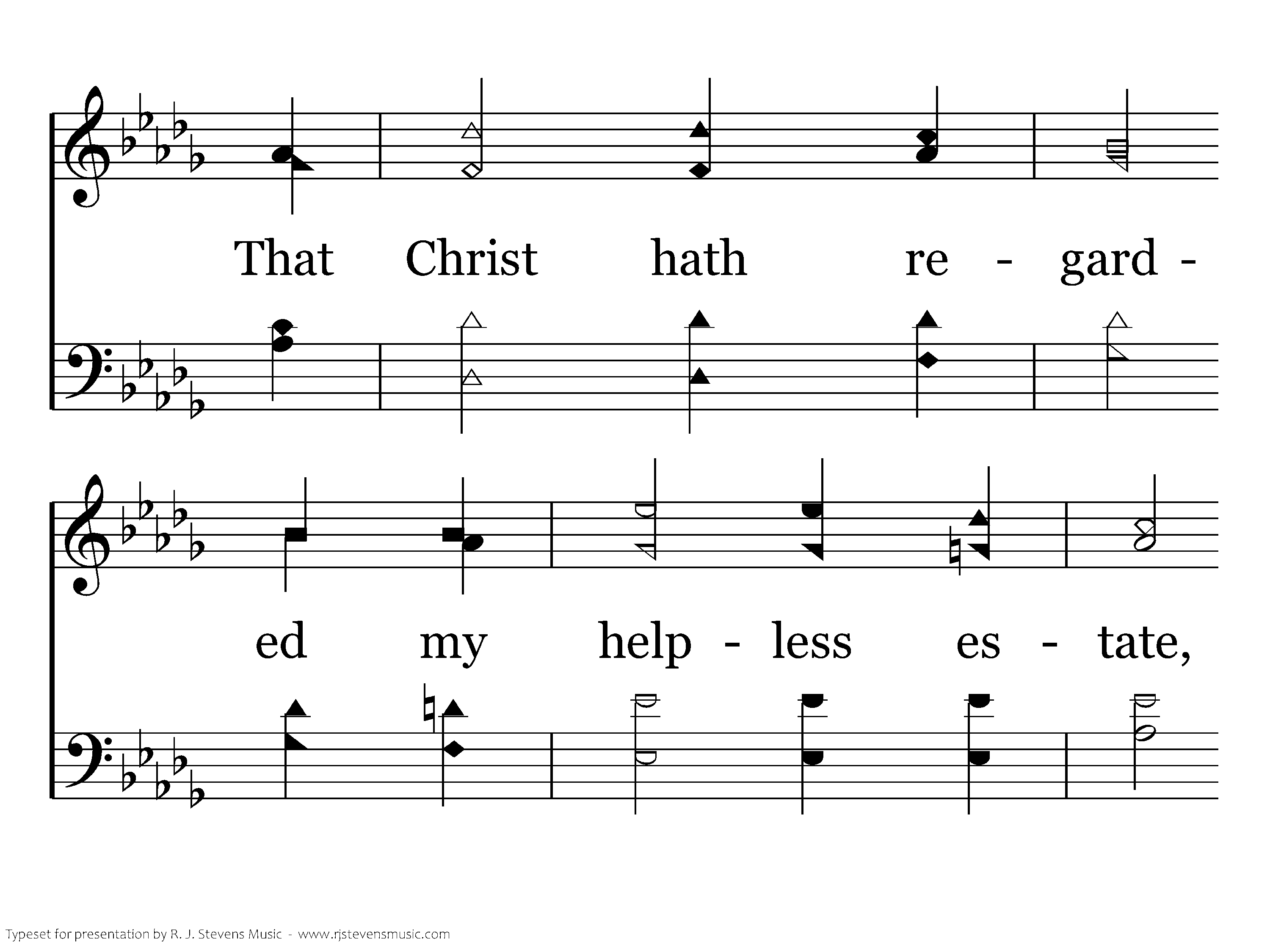 Tho' Satan should buffet, tho' trials should come, Let this blest assurance control, That Christ hath regarded my helpless estate, And hath shed His own blood for my soul.