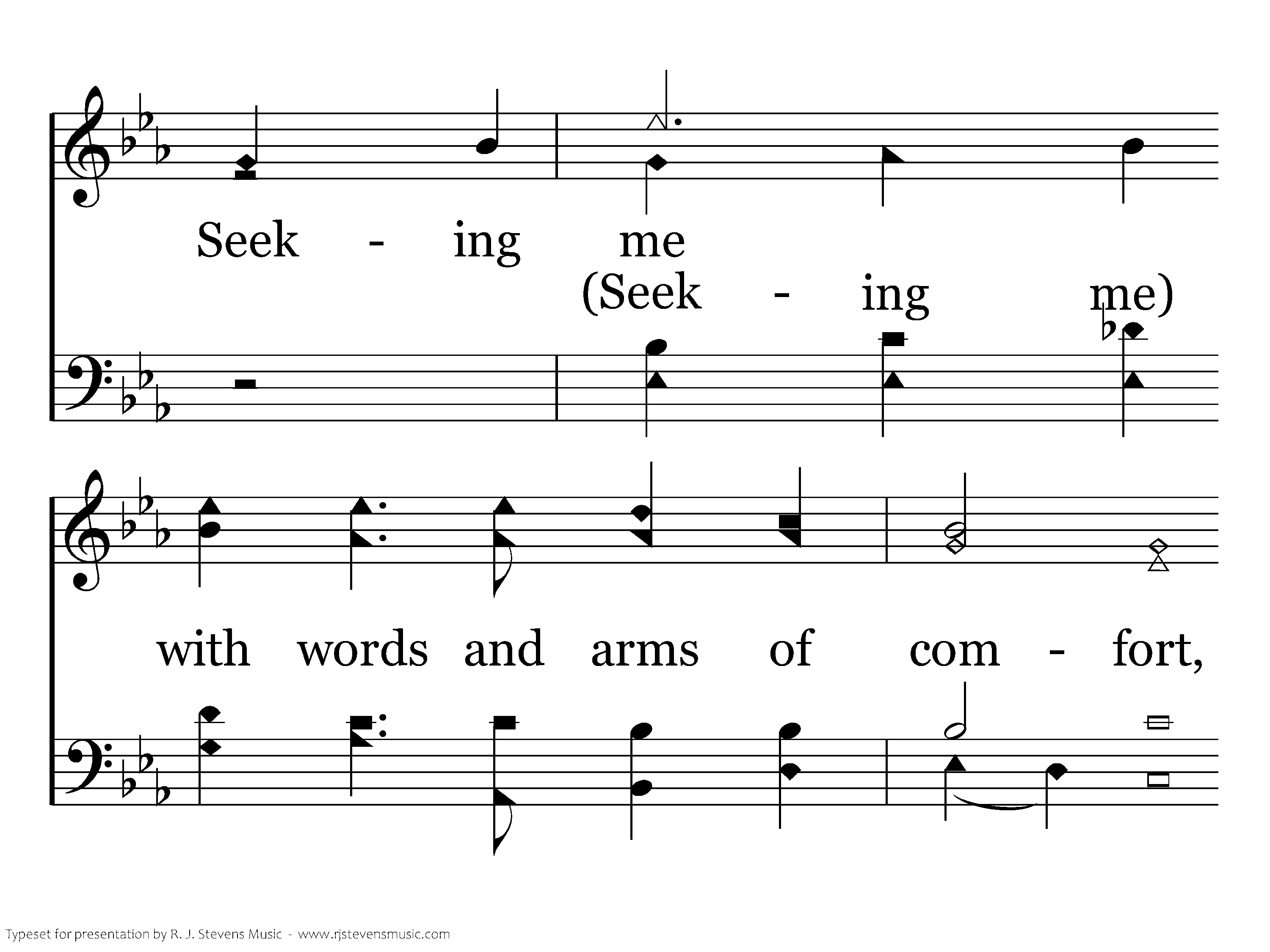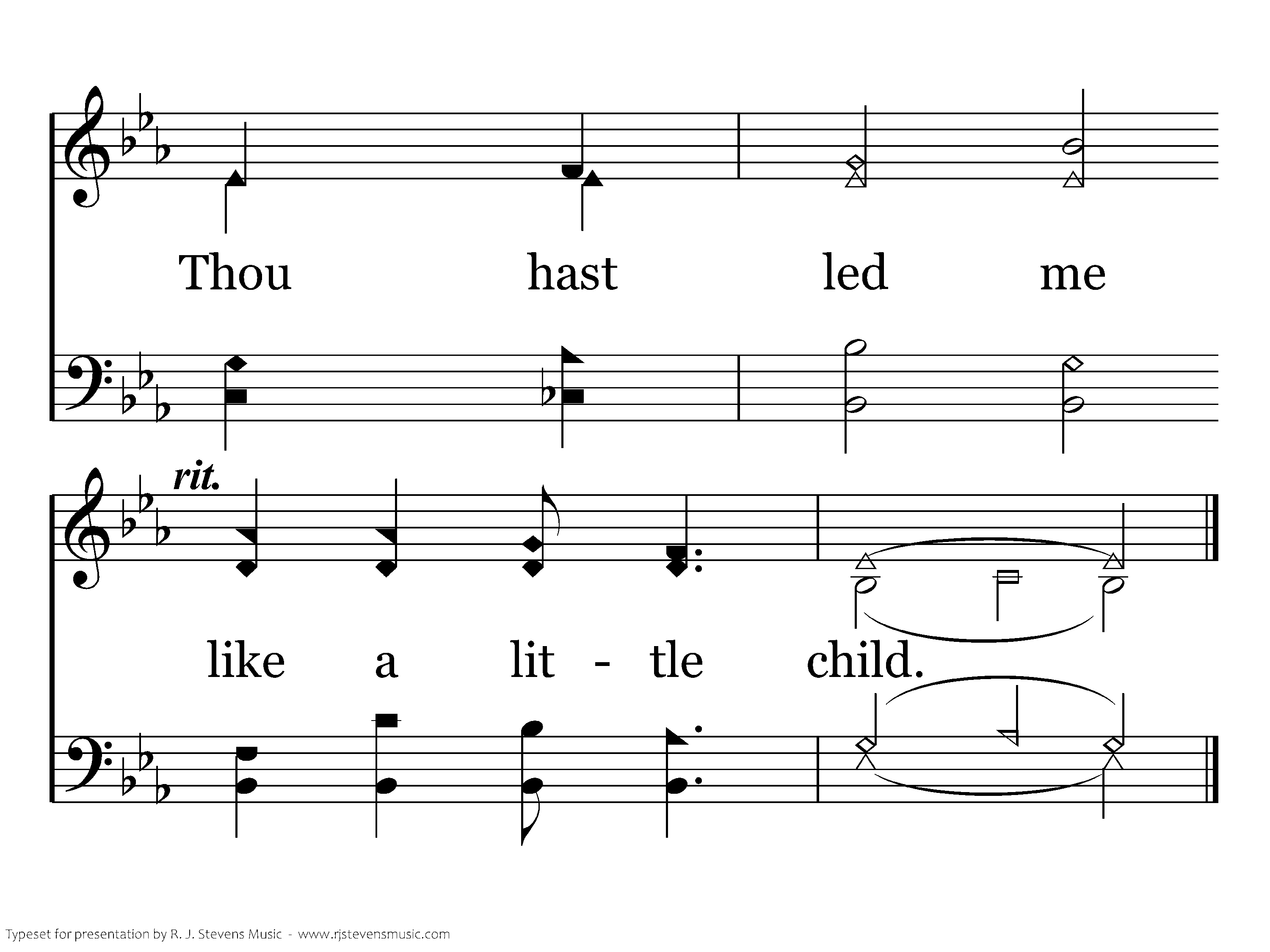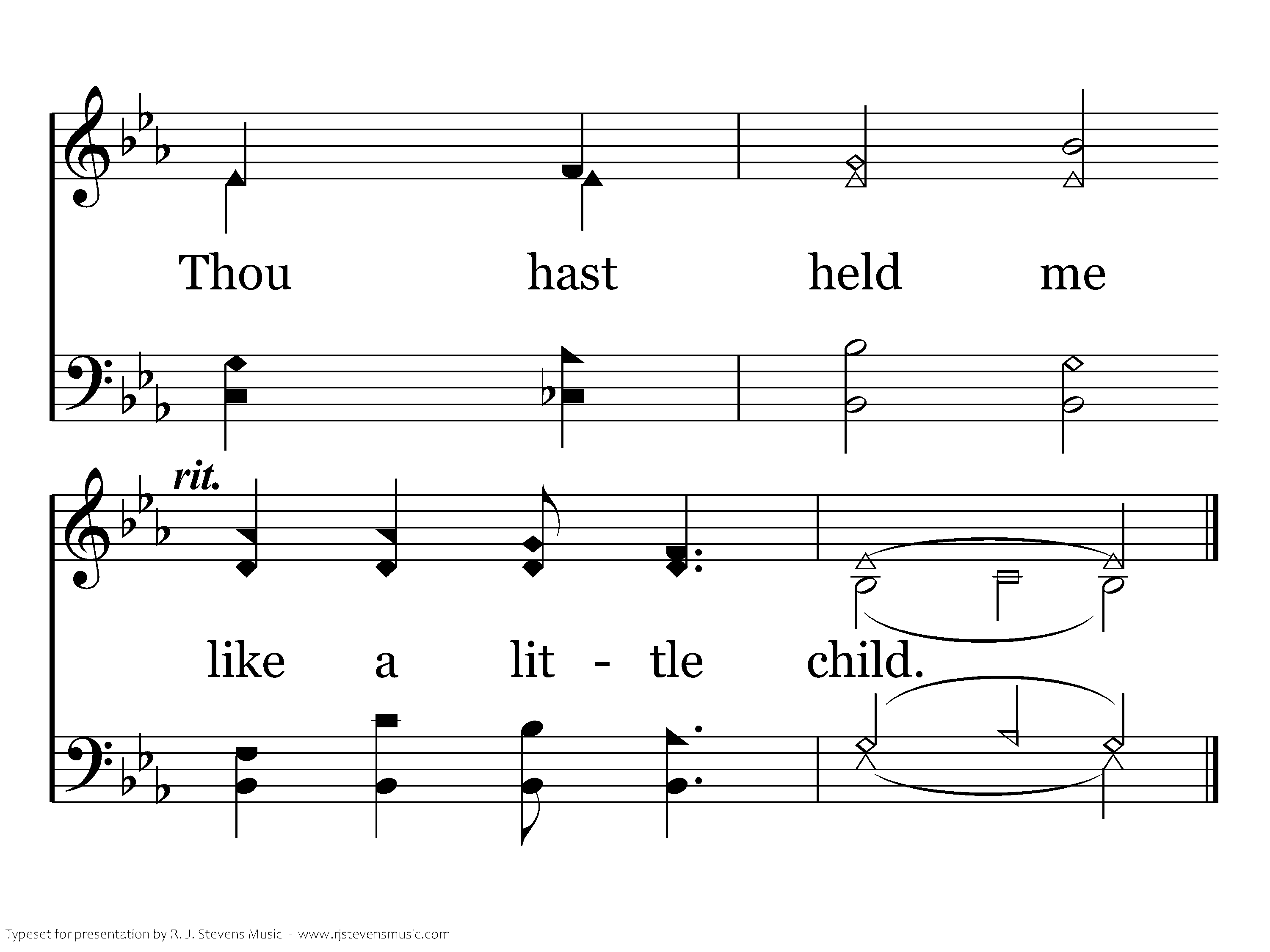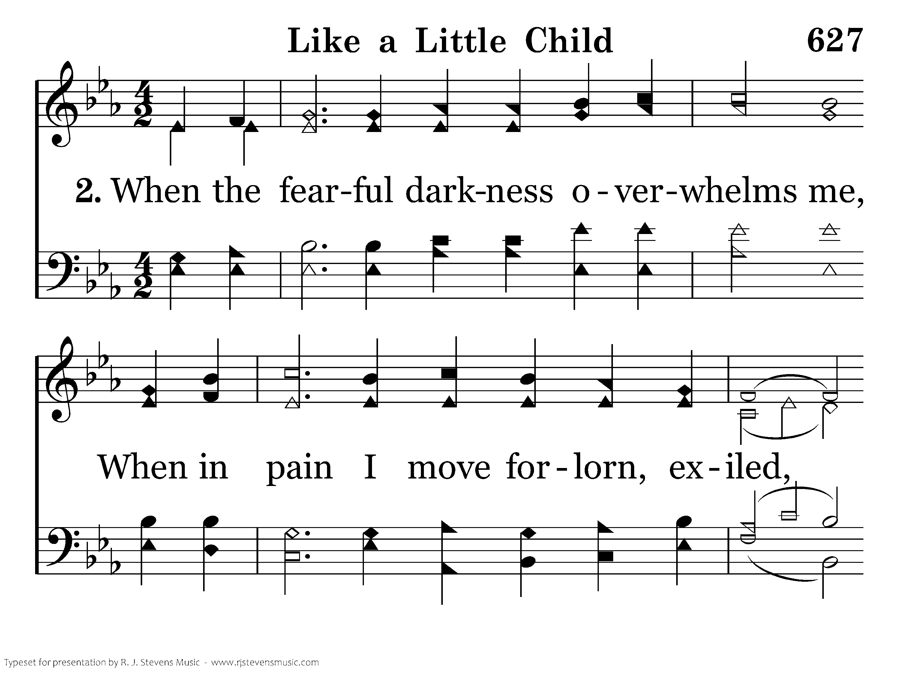 When the fearful darkness overwhelms me, When in pain I move forlorn, exiled, Seeking me with words and arms of comfort, Thou hast held me like a little child. child.