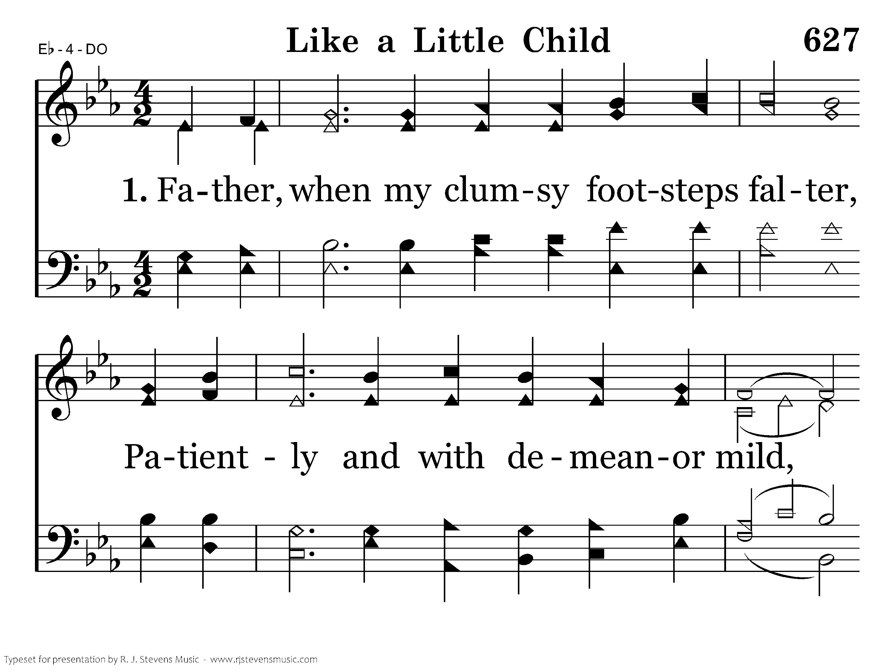 Father, when my clumsy footsteps falter, Patiently and with demeanor mild, Stretching out Thy hands along my pathway, Thou hast led me like a little child.