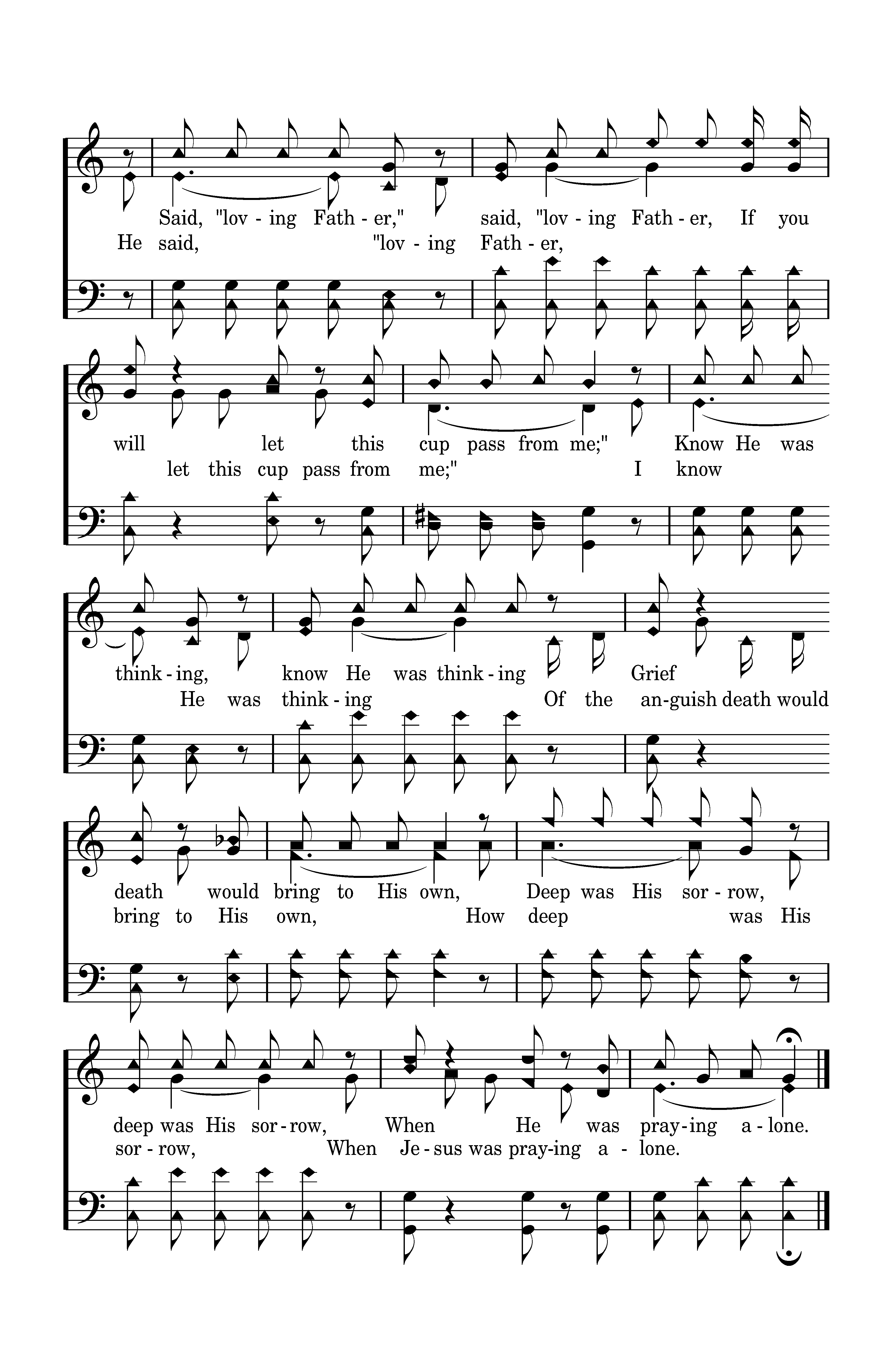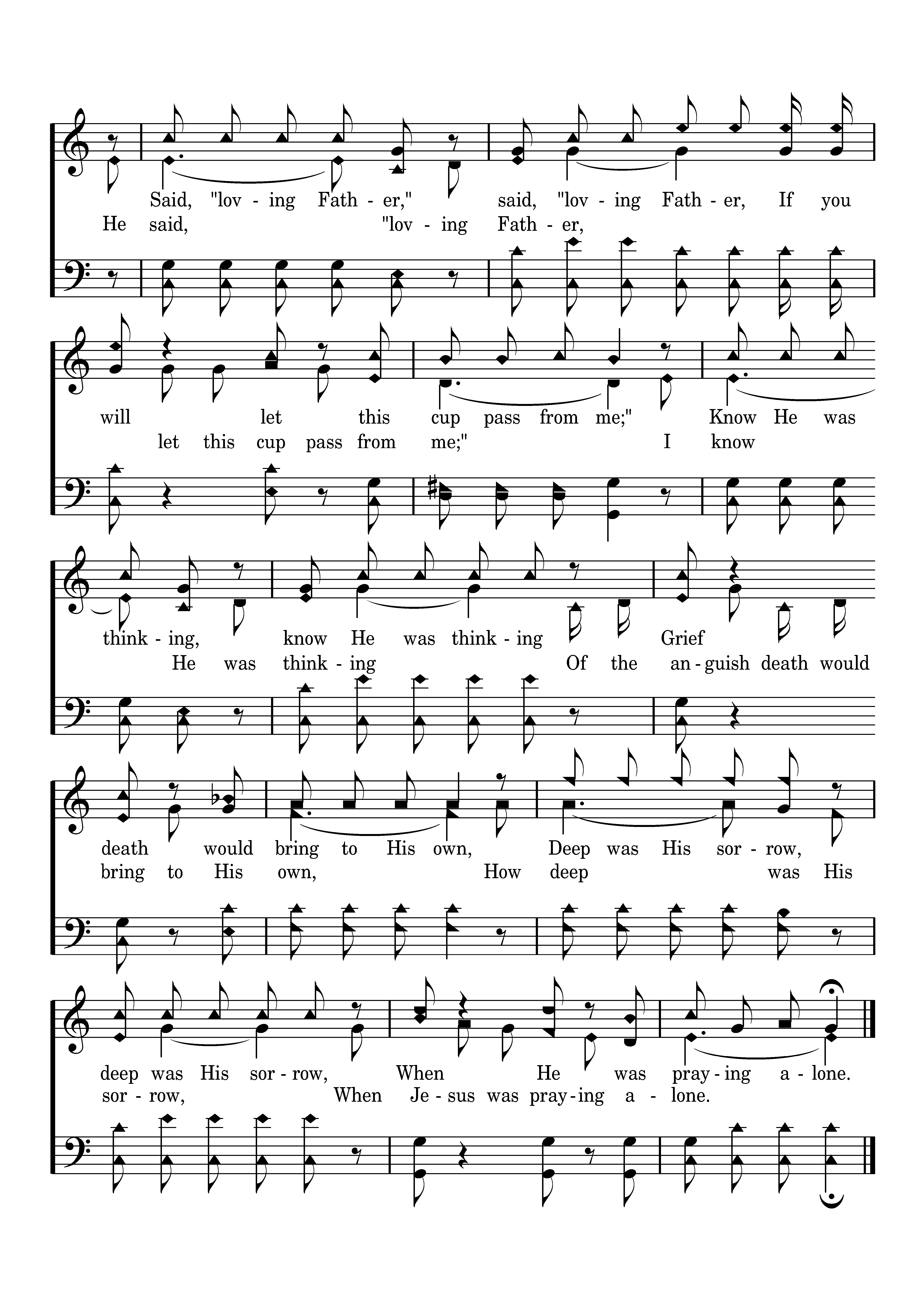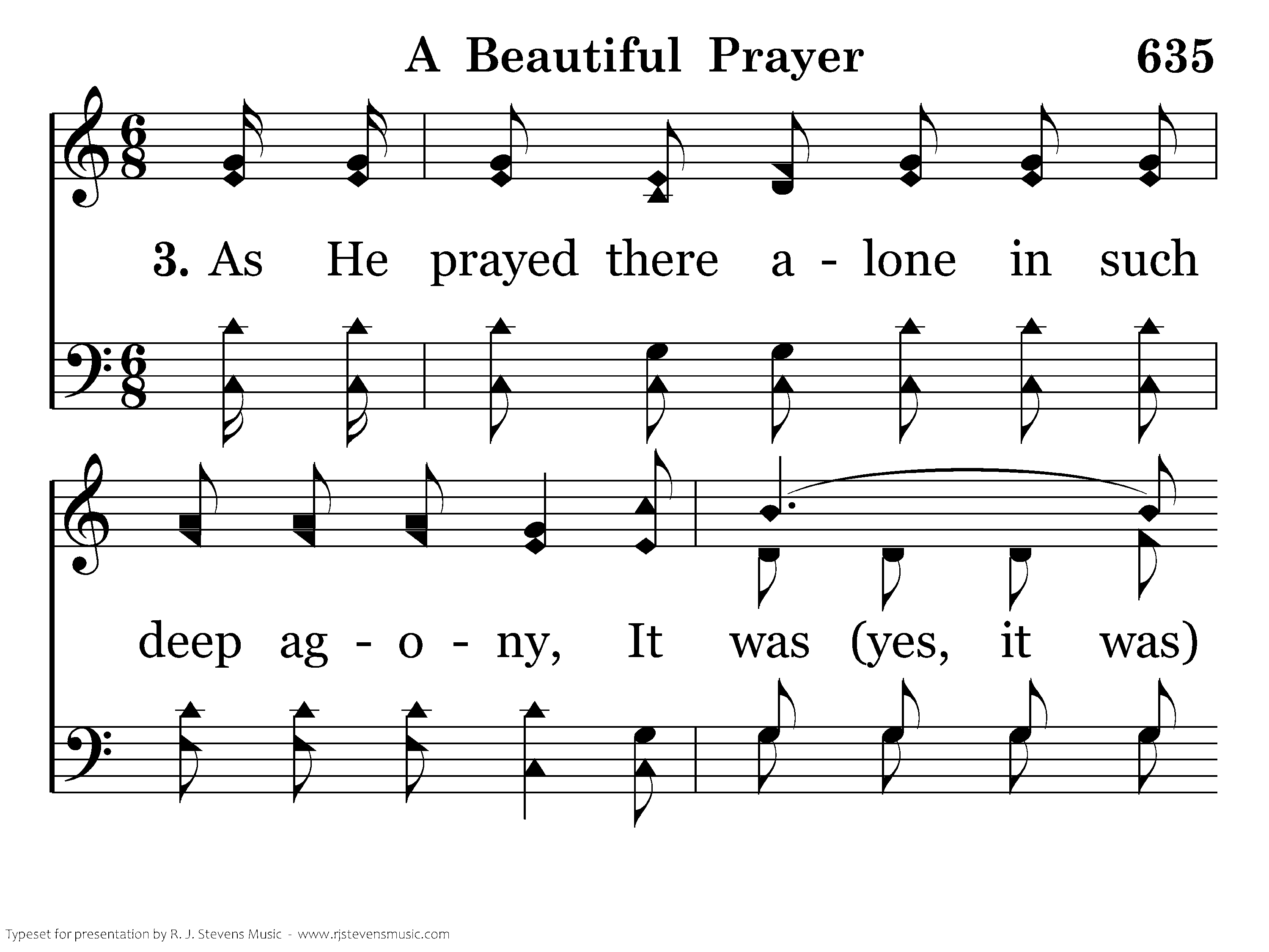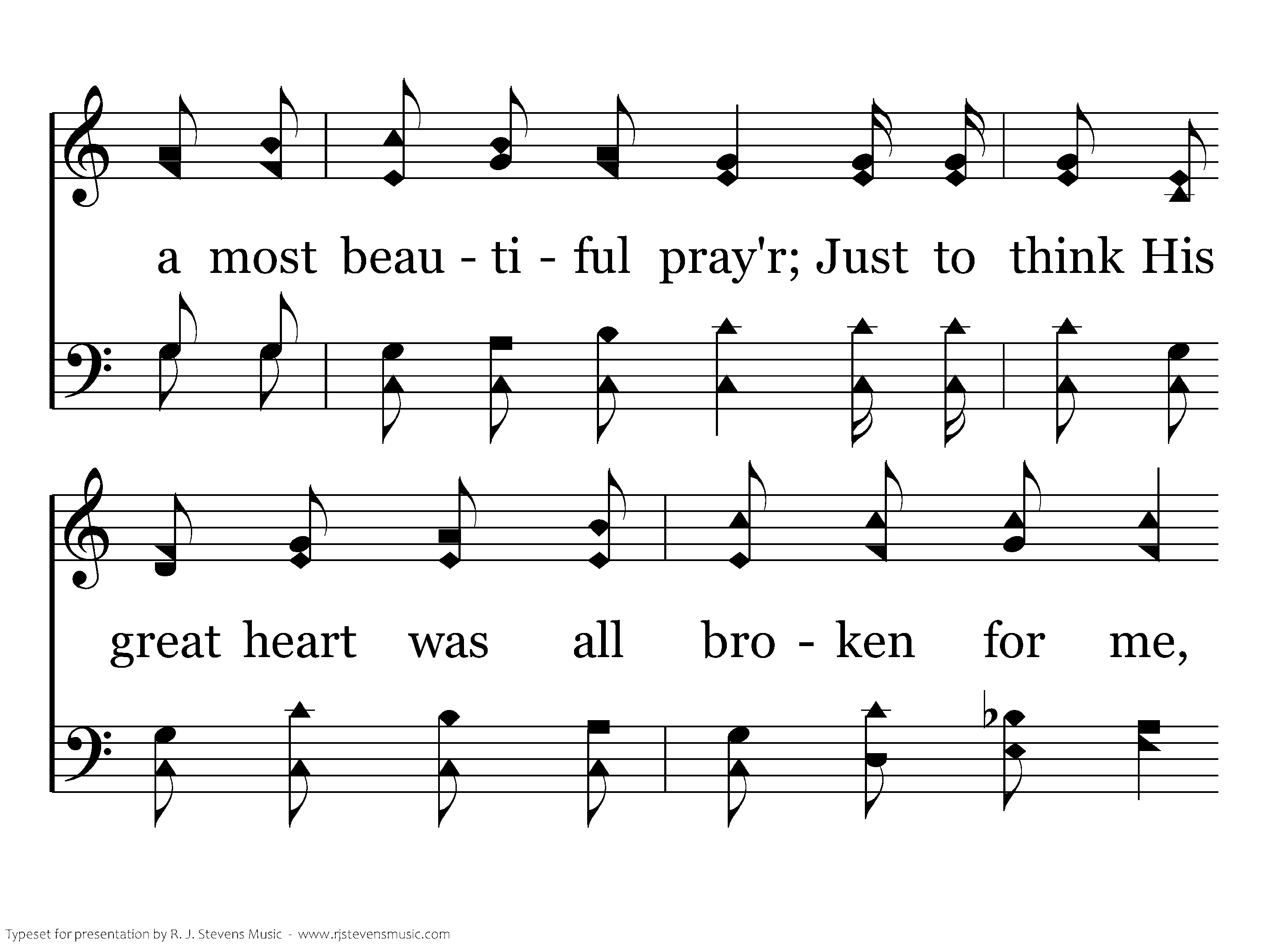 As He prayed there alone in such deep agony, It was a most beautiful pray'r; Just to think His great heart was all broken for me, That He my great sorrow must share.