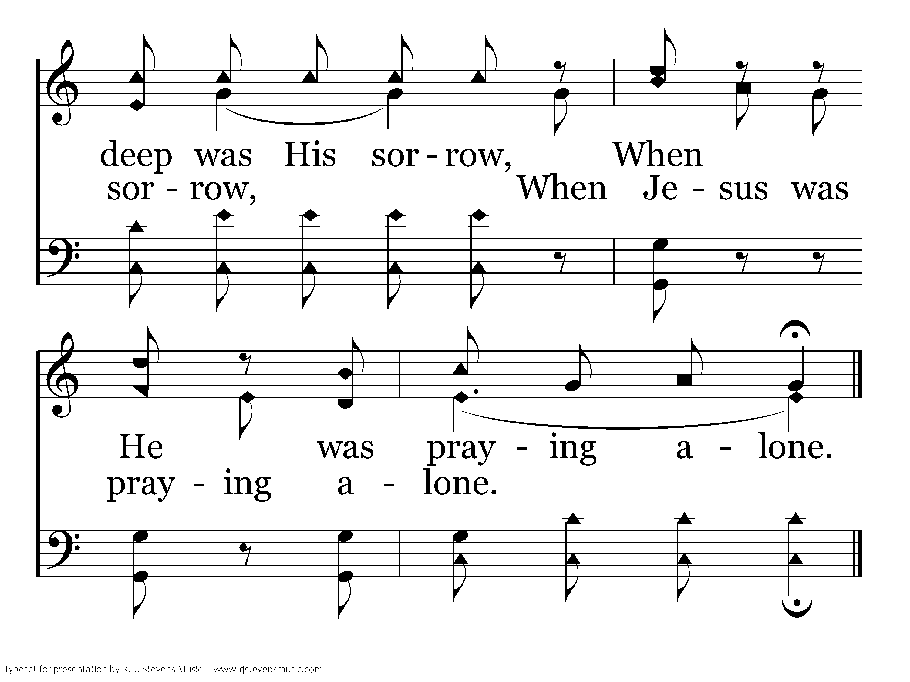 When the Savior was praying, In the garden of Gethsemane, He said, "loving Father, if you will let this cup pass from me." I know He was thinking of the anguish death would bring to His own, How deep was His sorrow, When Jesus was praying alone.