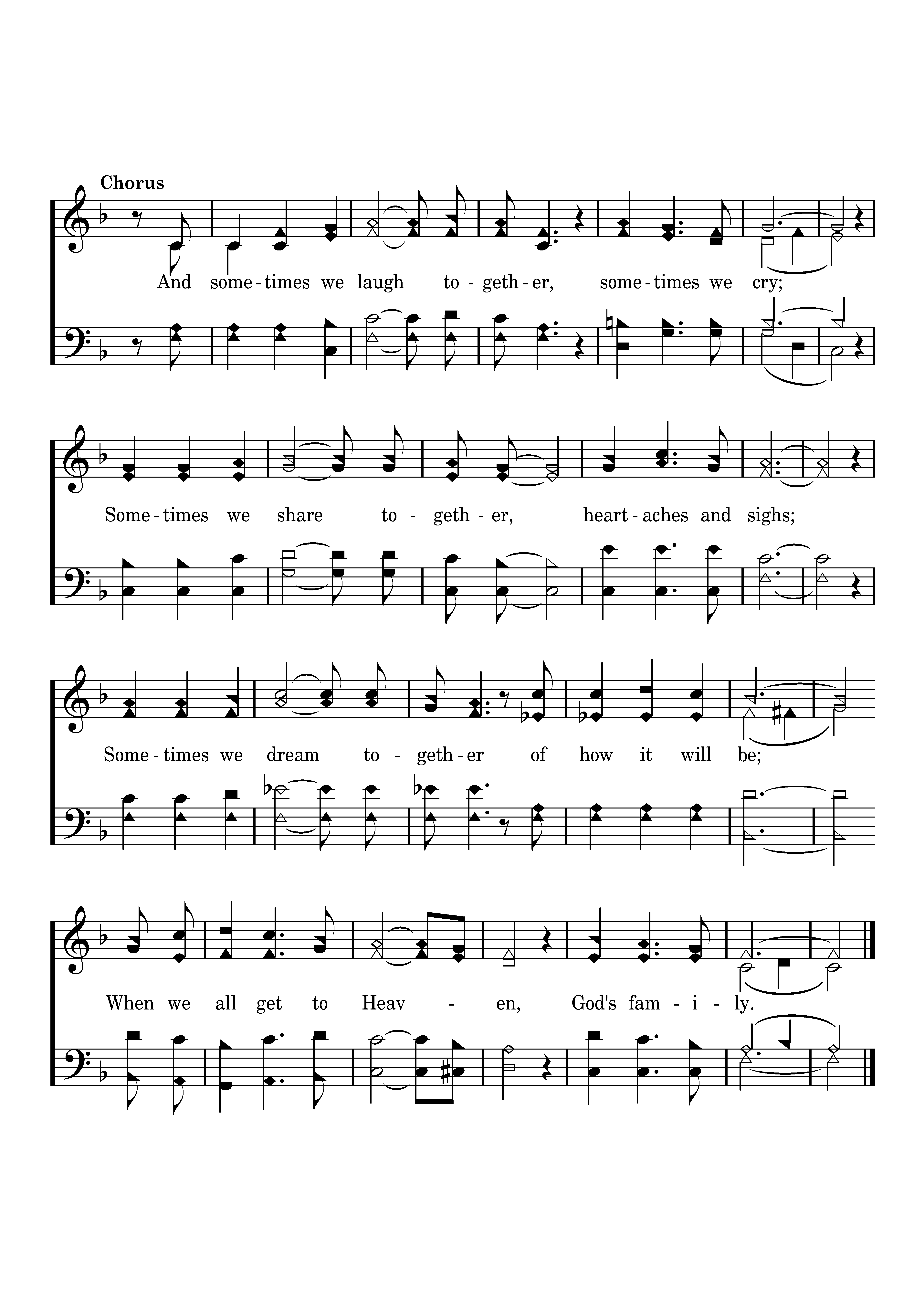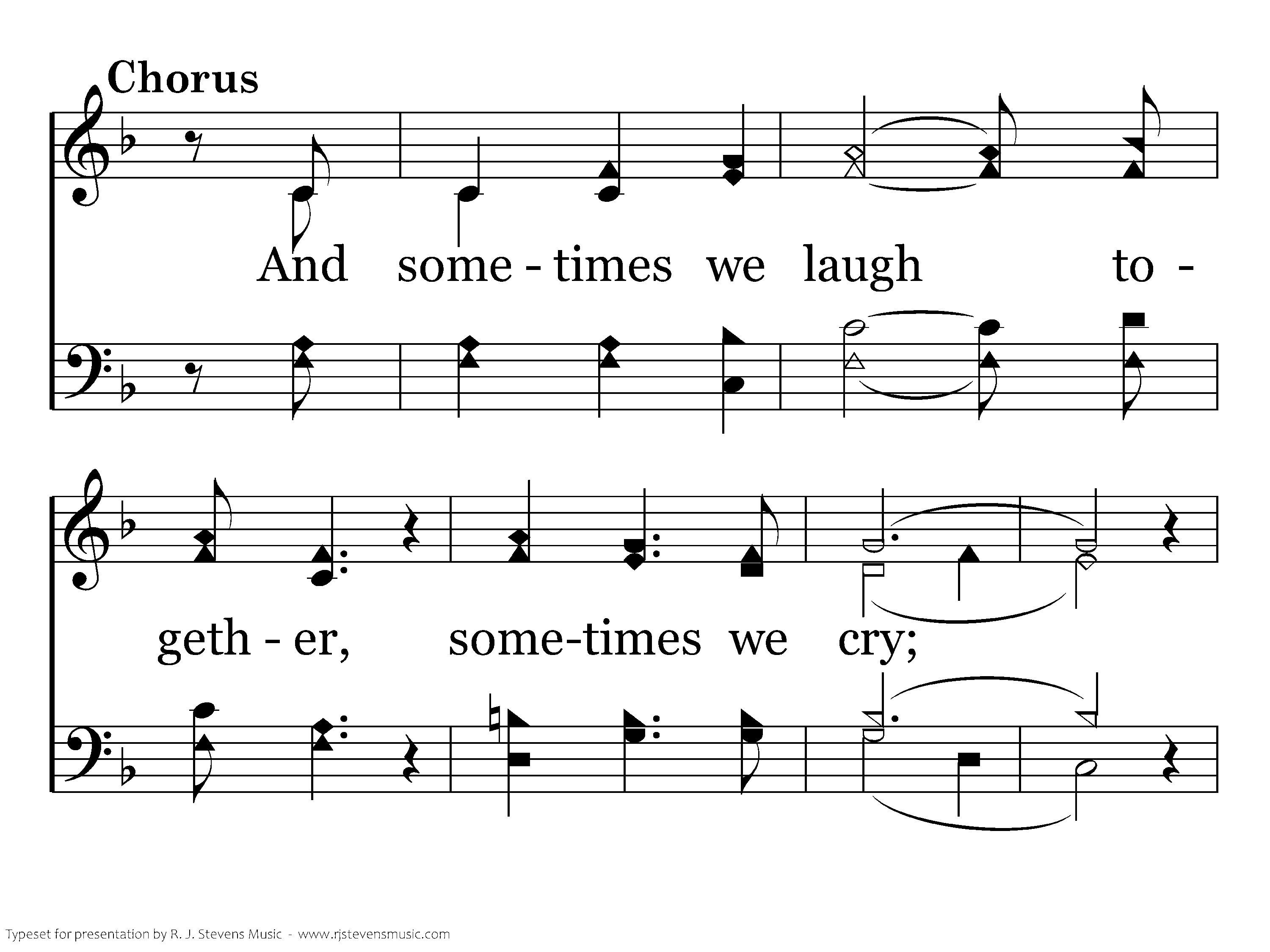 And sometimes we laugh together, sometimes we cry; Sometimes we share together, heartaches and sighs; Sometimes we dream together of how it will be; When we all get to Heaven, God's family.