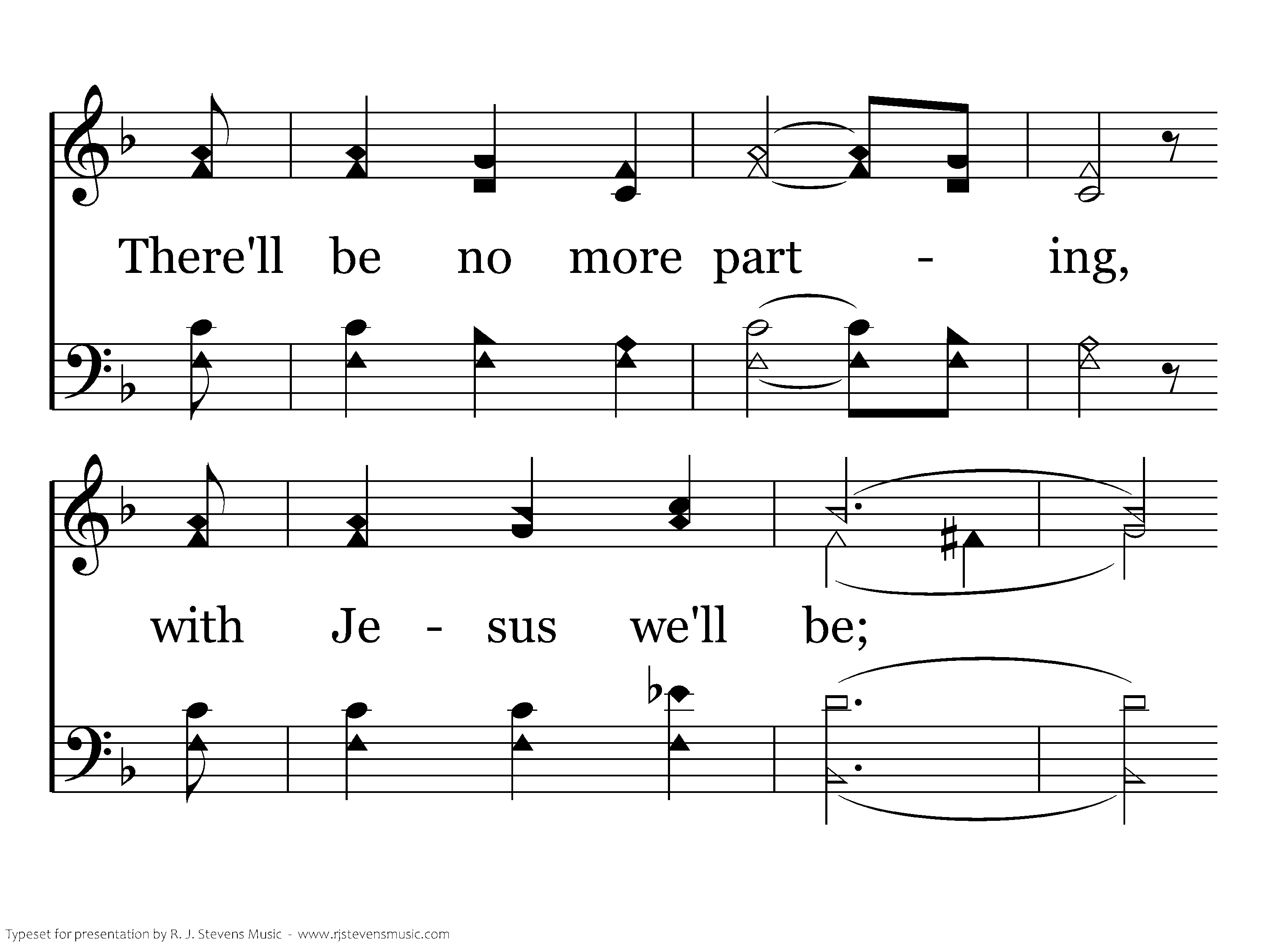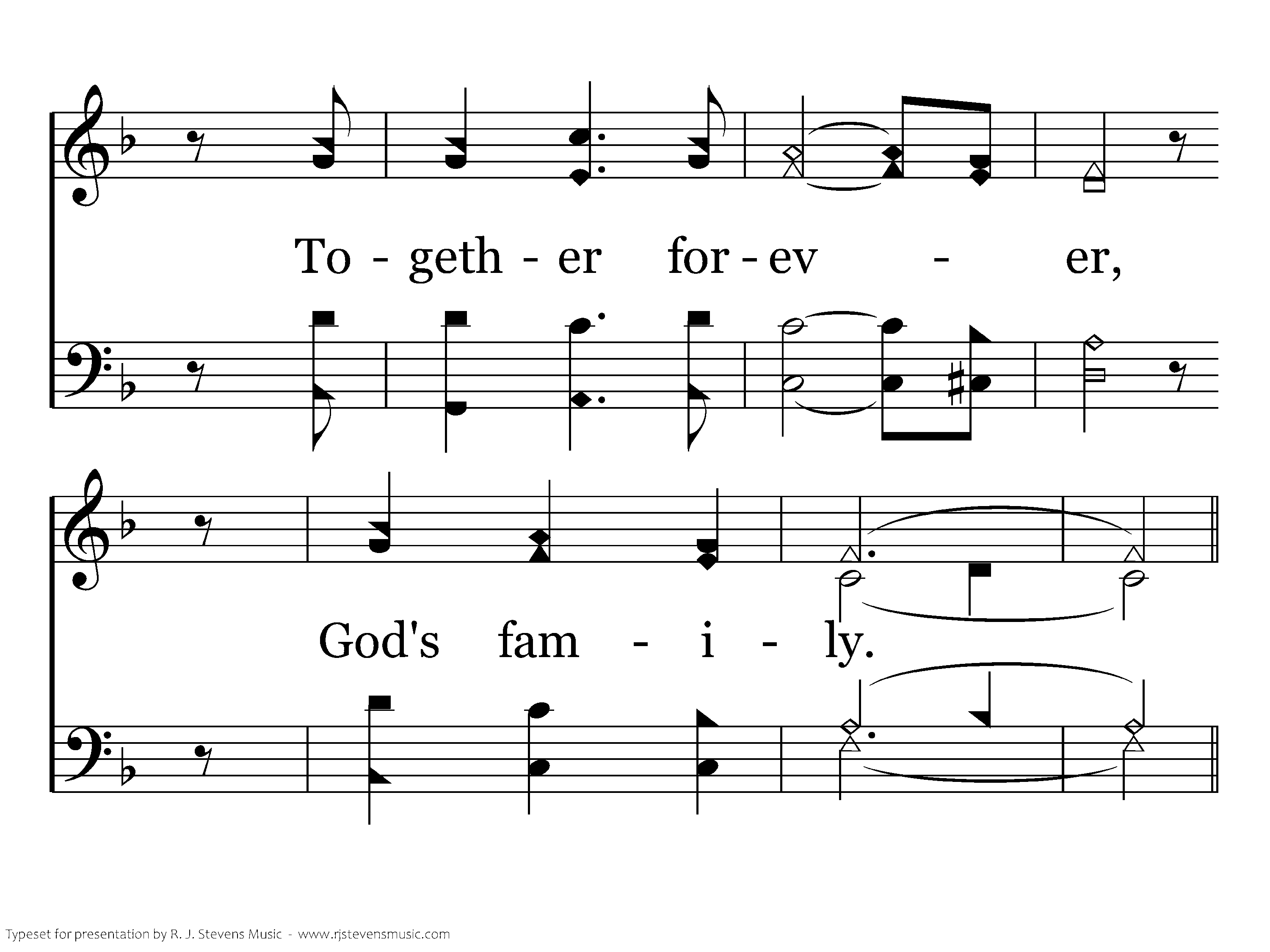And tho' some go before us, we'll all meet again; Just inside the city as we enter in; There'll be no more parting, with Jesus we'll be; Together forever, God's family.