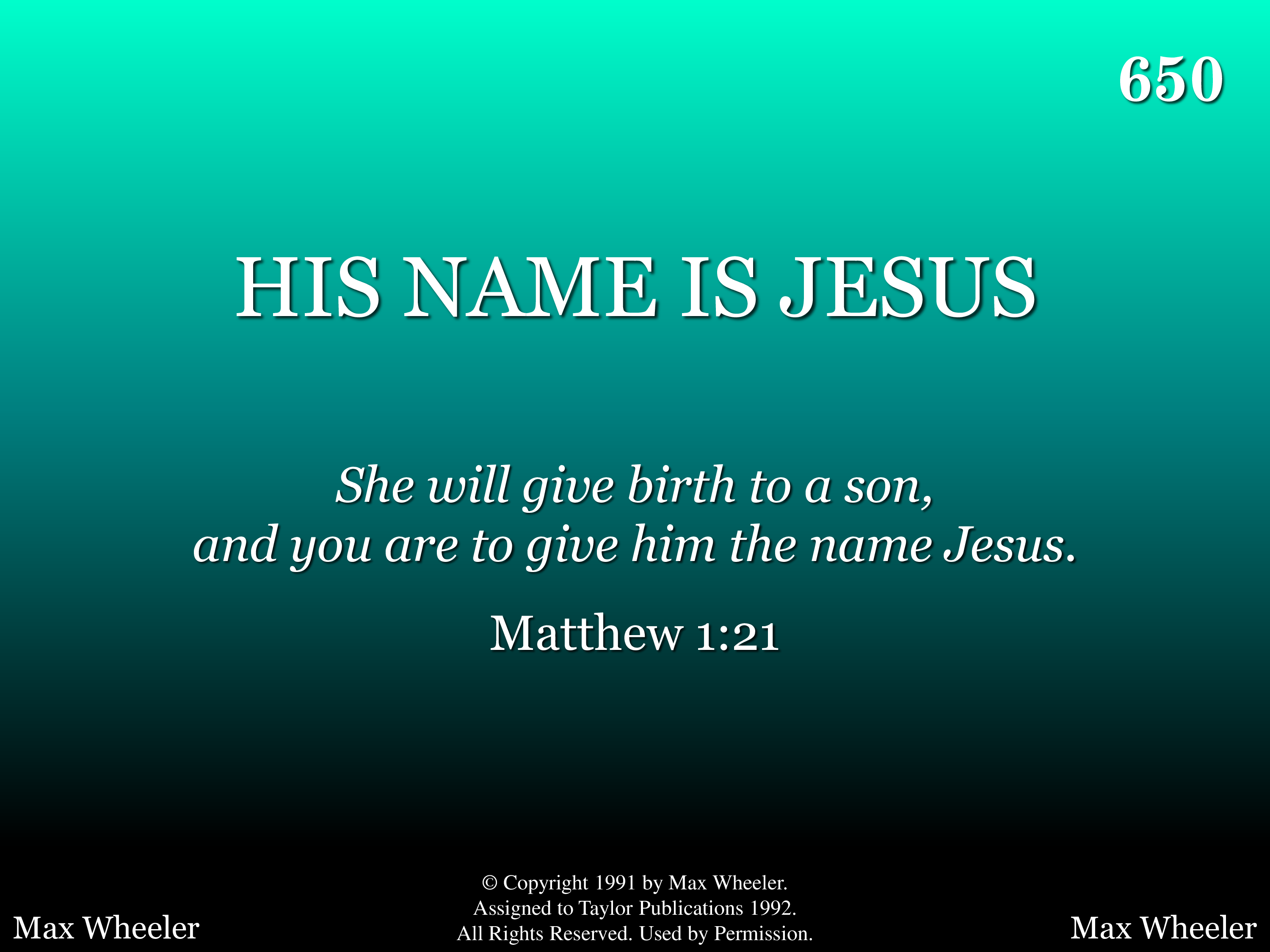 - Copyright © 1991 Max Wheeler. Assigned to Taylor Publications. (Admin. by Taylor Publications.) All Rights Reserved. Used by Permission.