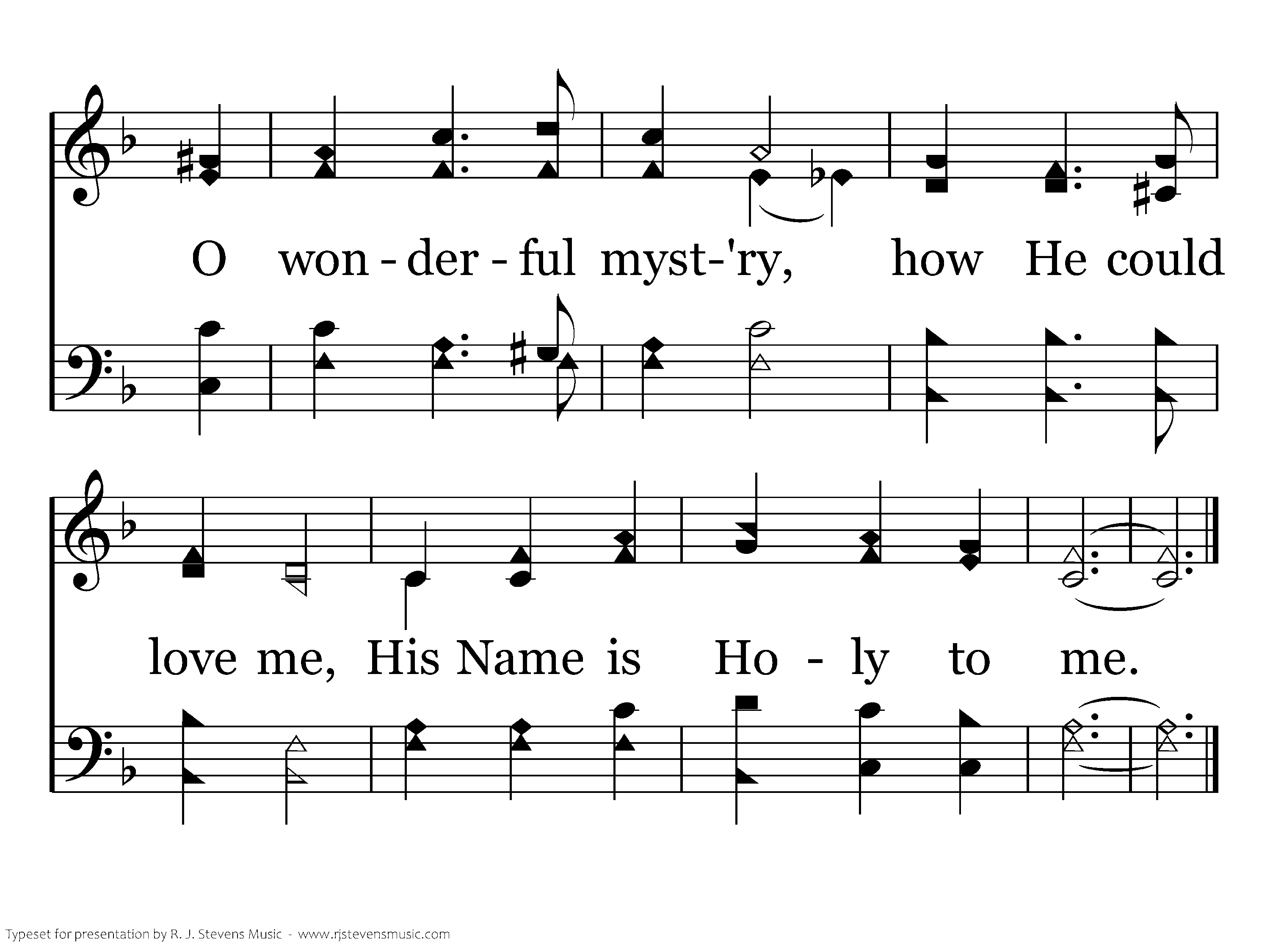 His Name is Holy, His Name is Holy, His Name is Holy to me, O wonderful myst'ry, how He could love me, His Name is Holy to me.