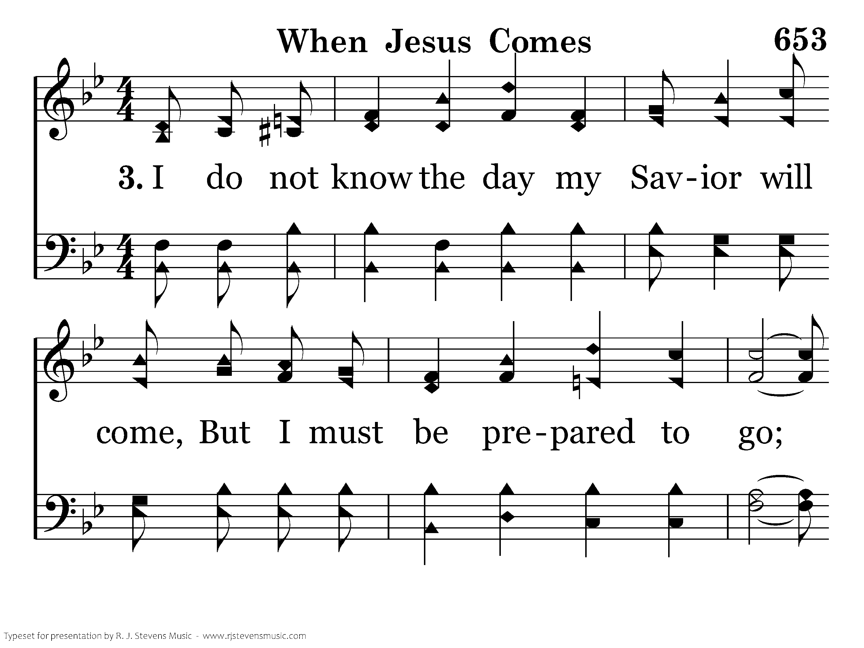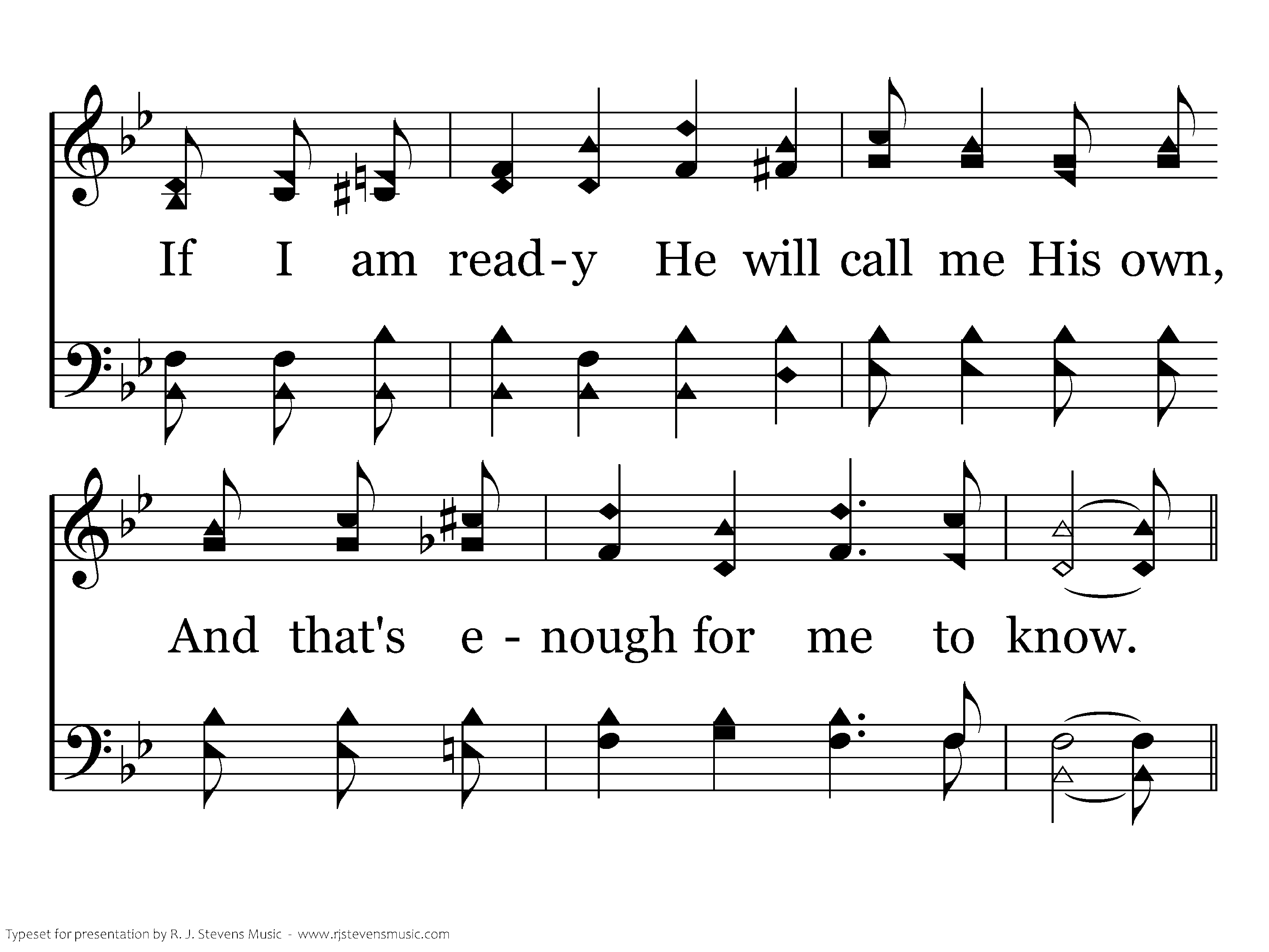 I do not know the day my Savior will come, But I must be prepared to go; If I am ready He will call me His own, And that's enough for me to know.