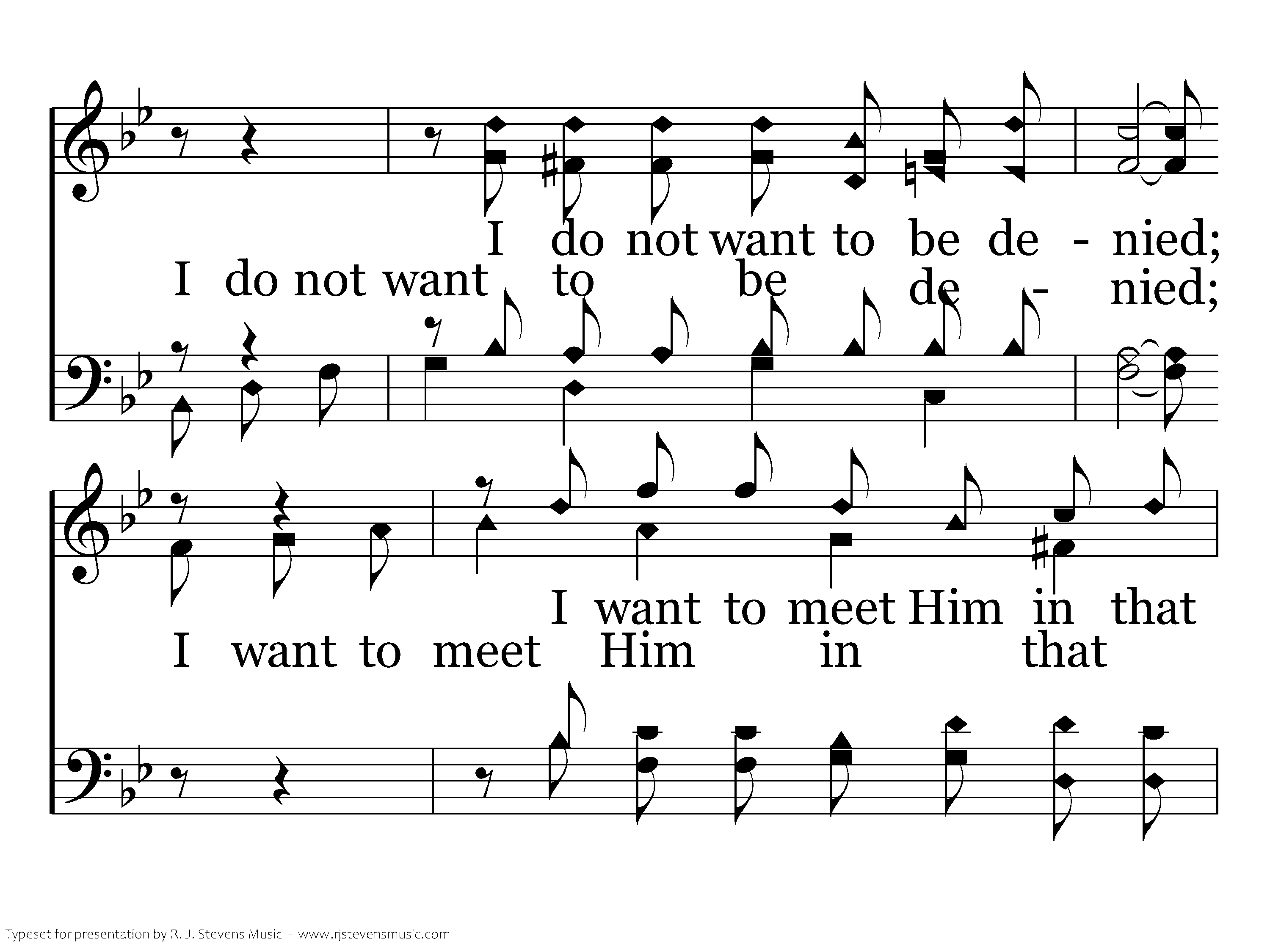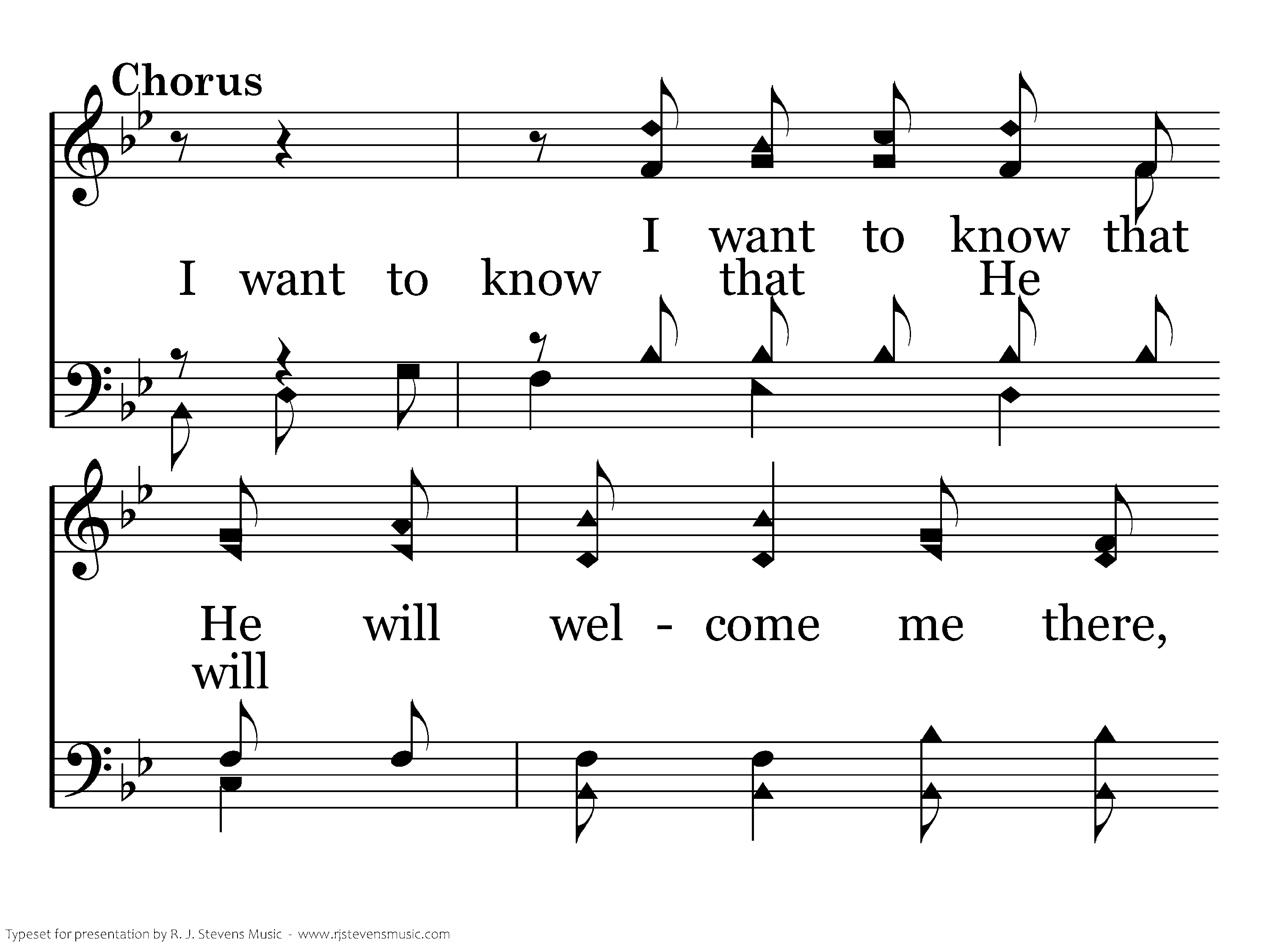 I want to know that He will welcome me there, I do not want to be denied; I want to meet Him in that city so fair, And ever there with Him abide.