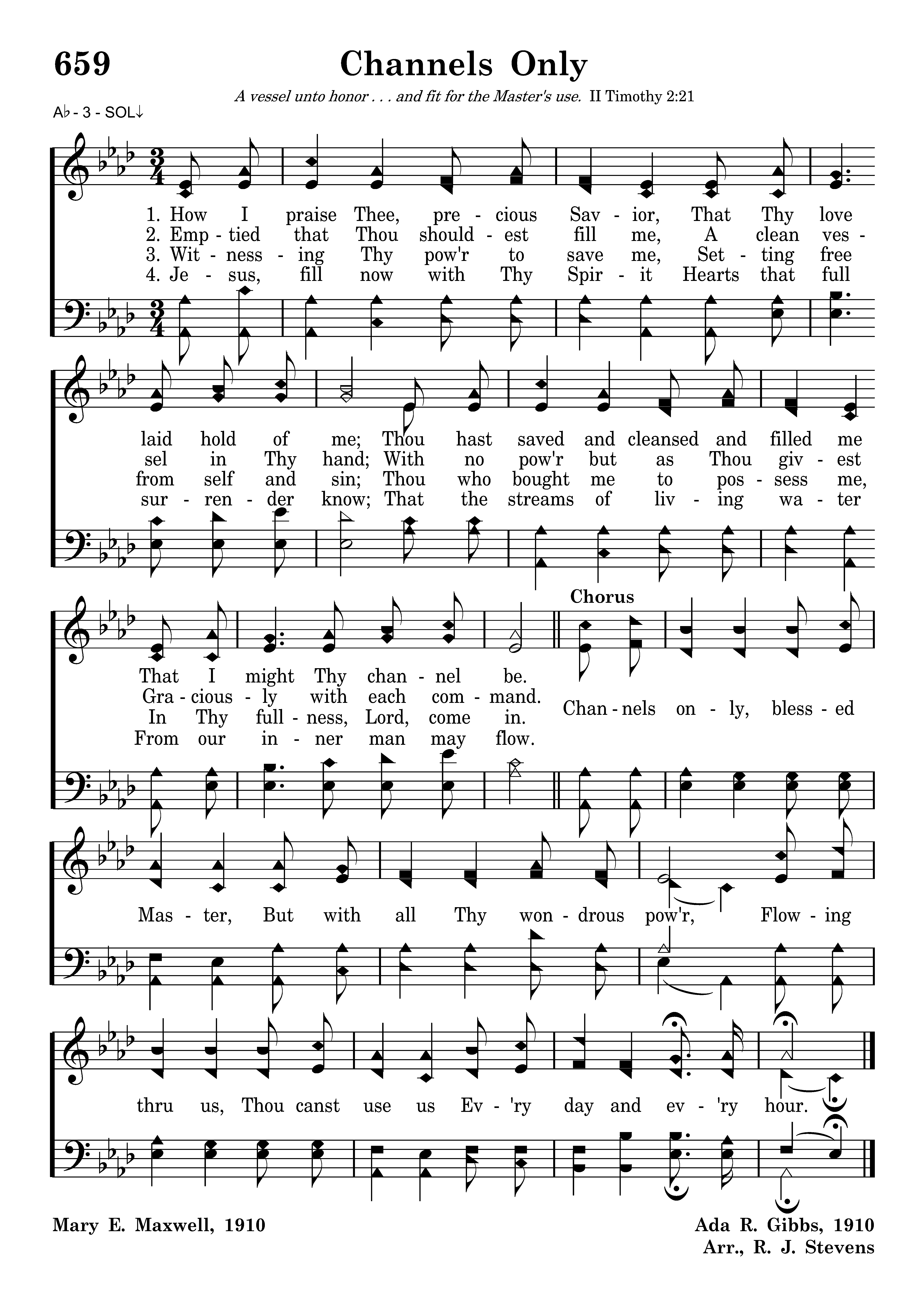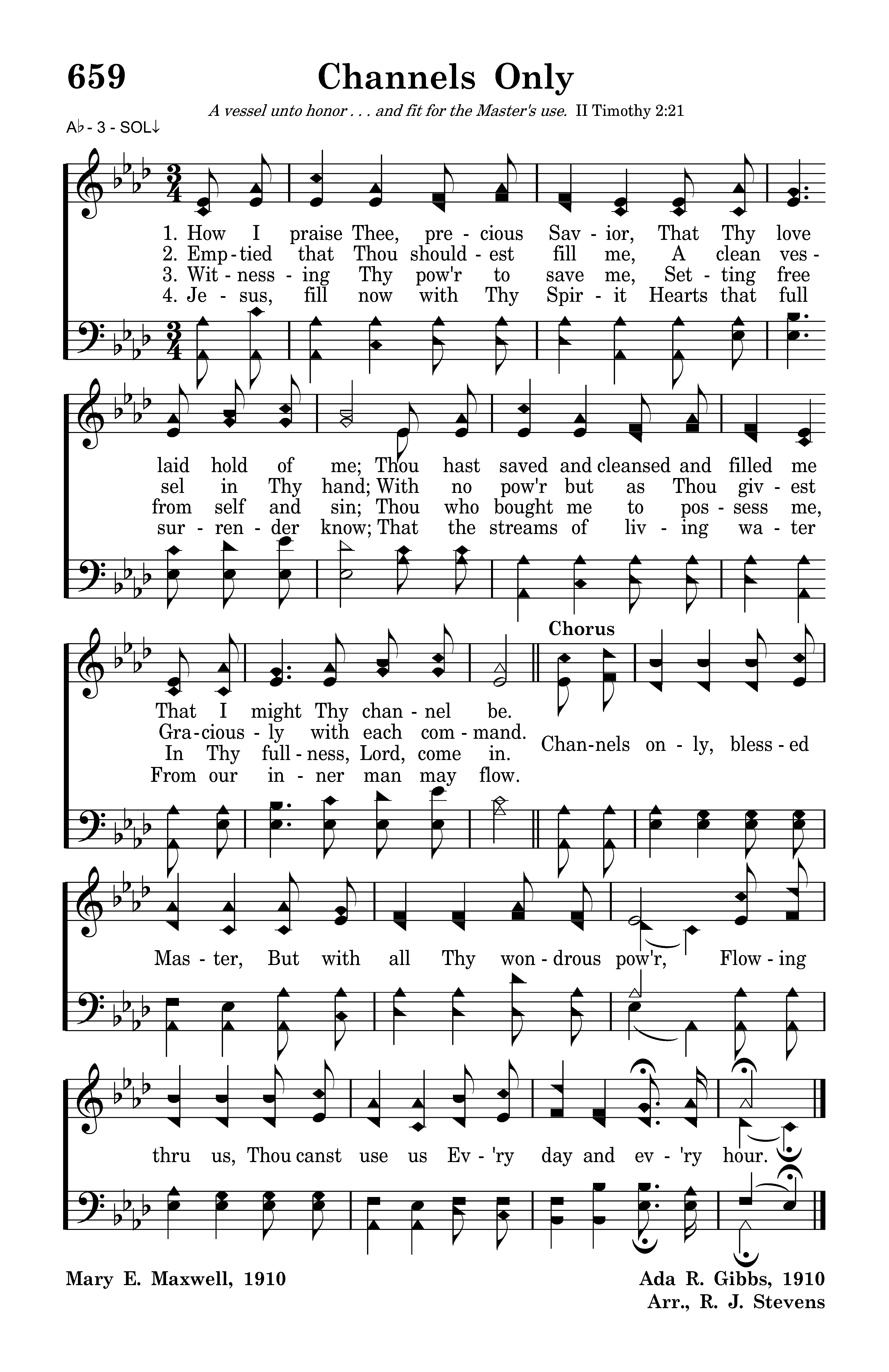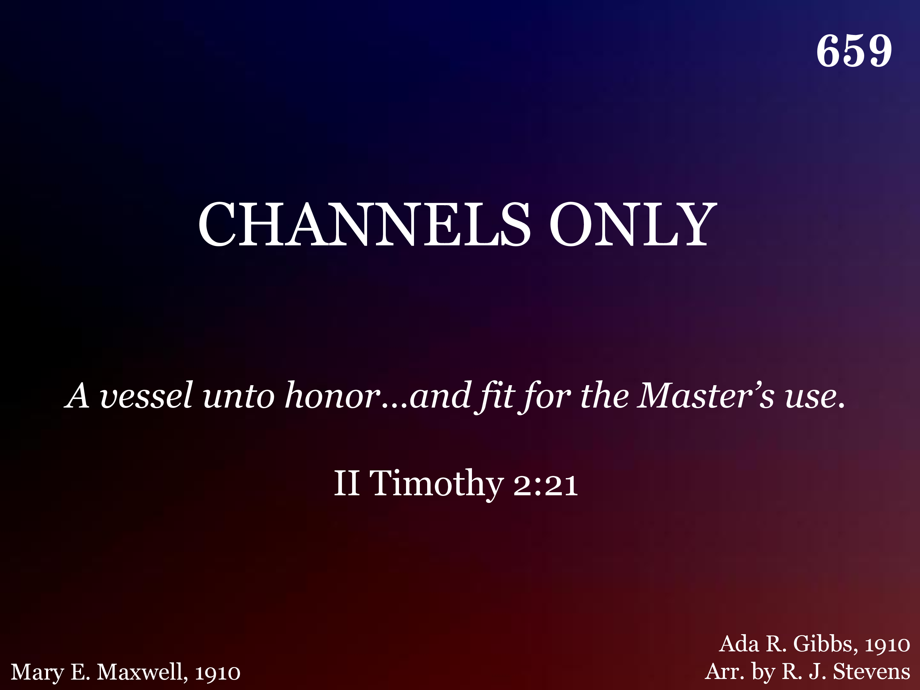 Channels only, blessed Master, But with all Thy wondrous pow'r, Flowing through us, Thou canst use us Ev'ry day and ev'ry hour.