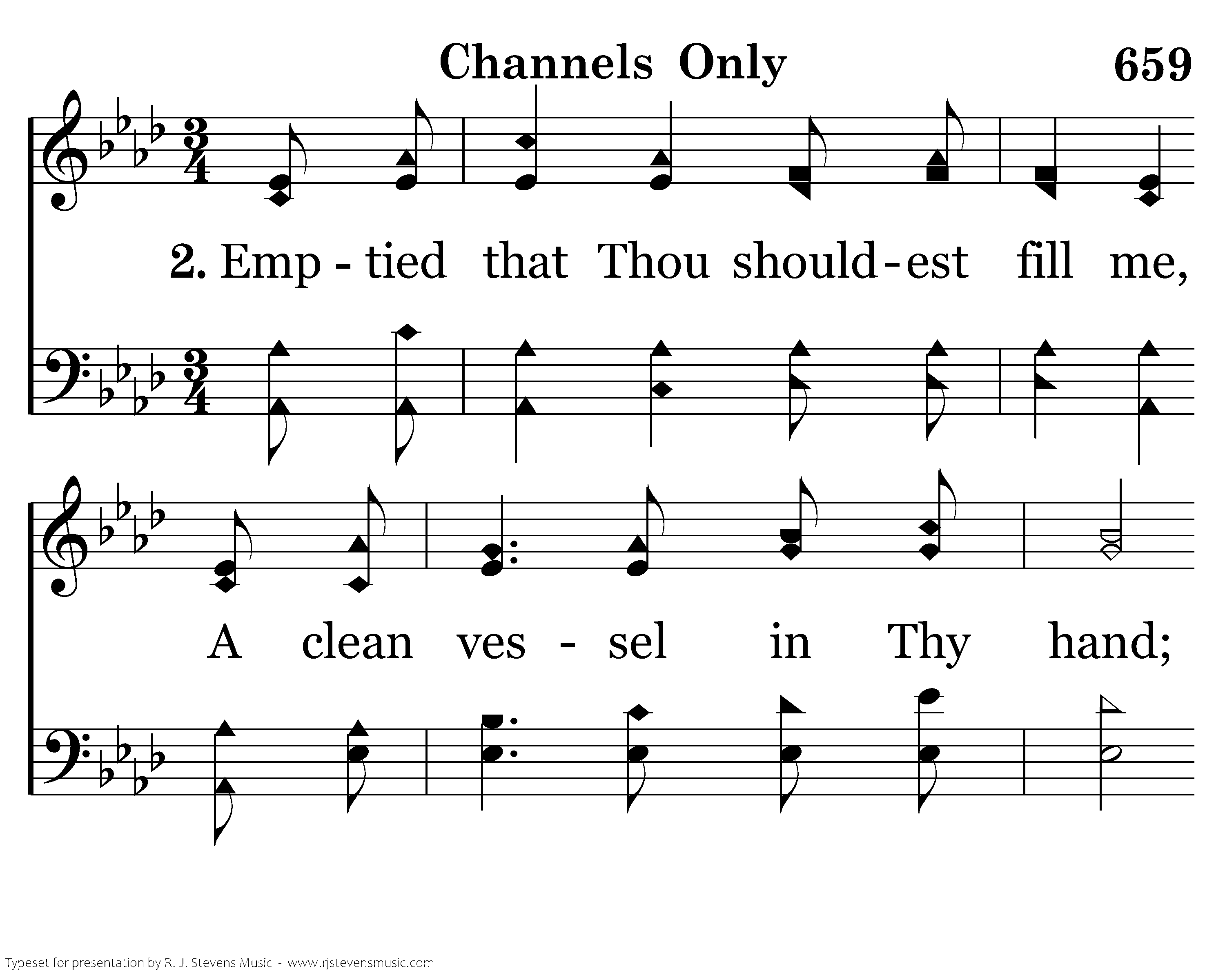 Emptied that Thou shouldest fill me, A clean vessel in Thy hand; With no pow'r but as Thou givest Graciously with each command.
