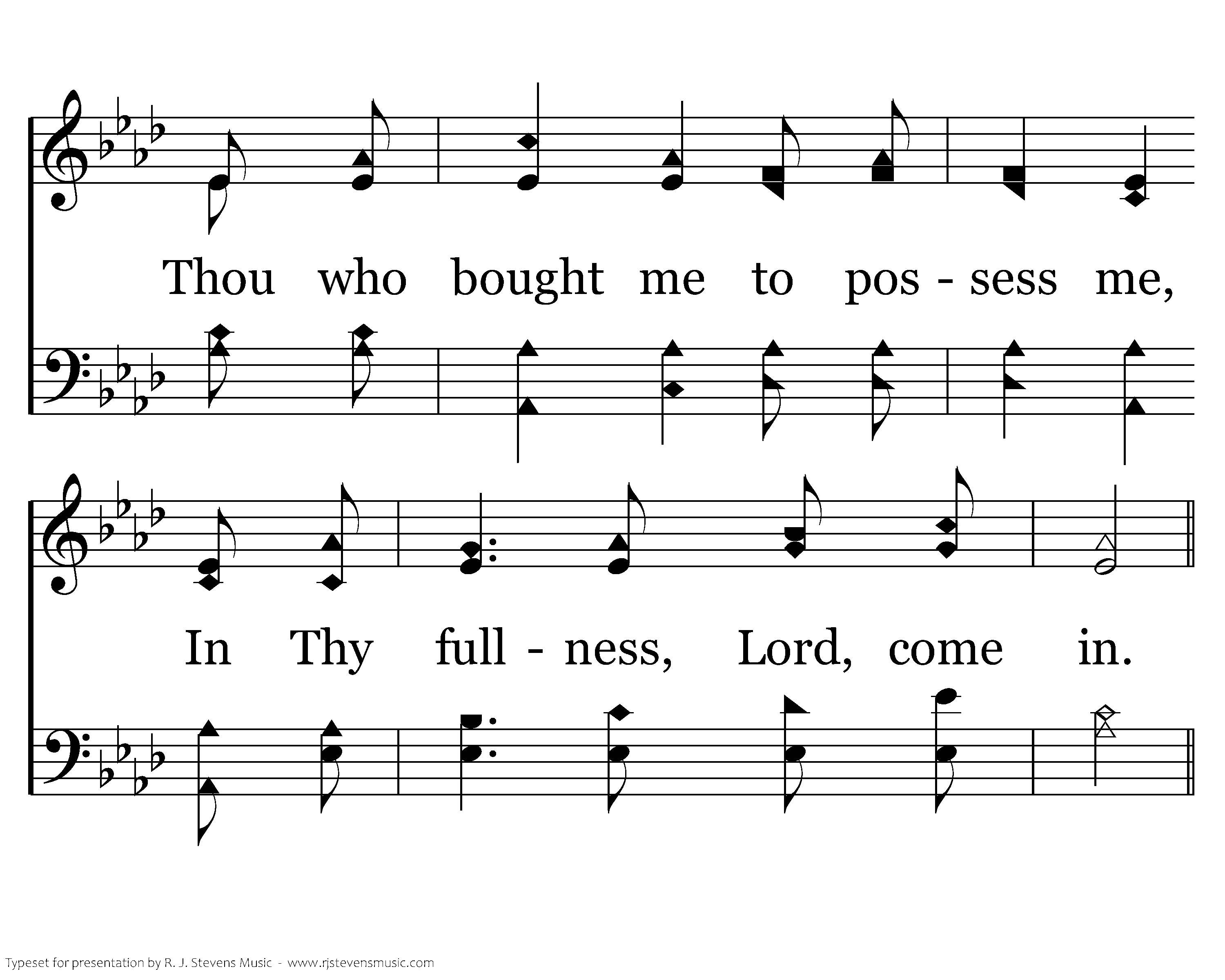 Witnessing Thy pow'r to save me, Setting free from self and sin; Thou who bought me to possess me, In Thy fullness, Lord, come in.