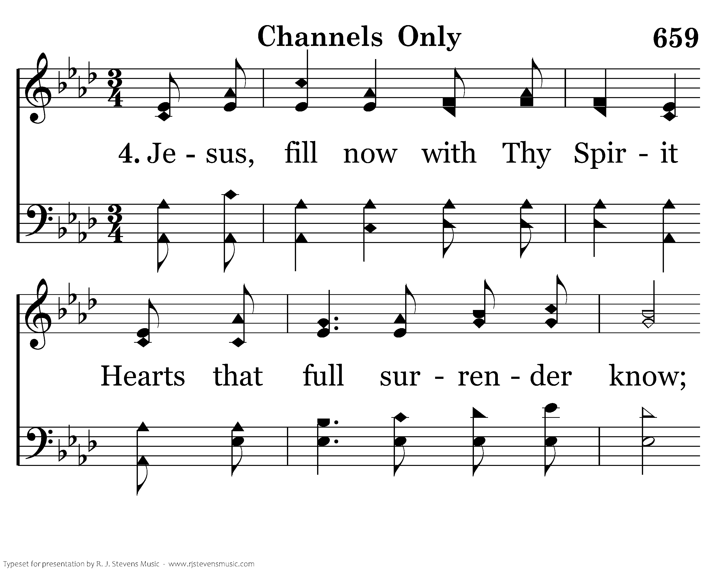 Jesus, fill now with Thy Spirit Hearts that full surrender know; That the streams of living water From our inner man may flow.