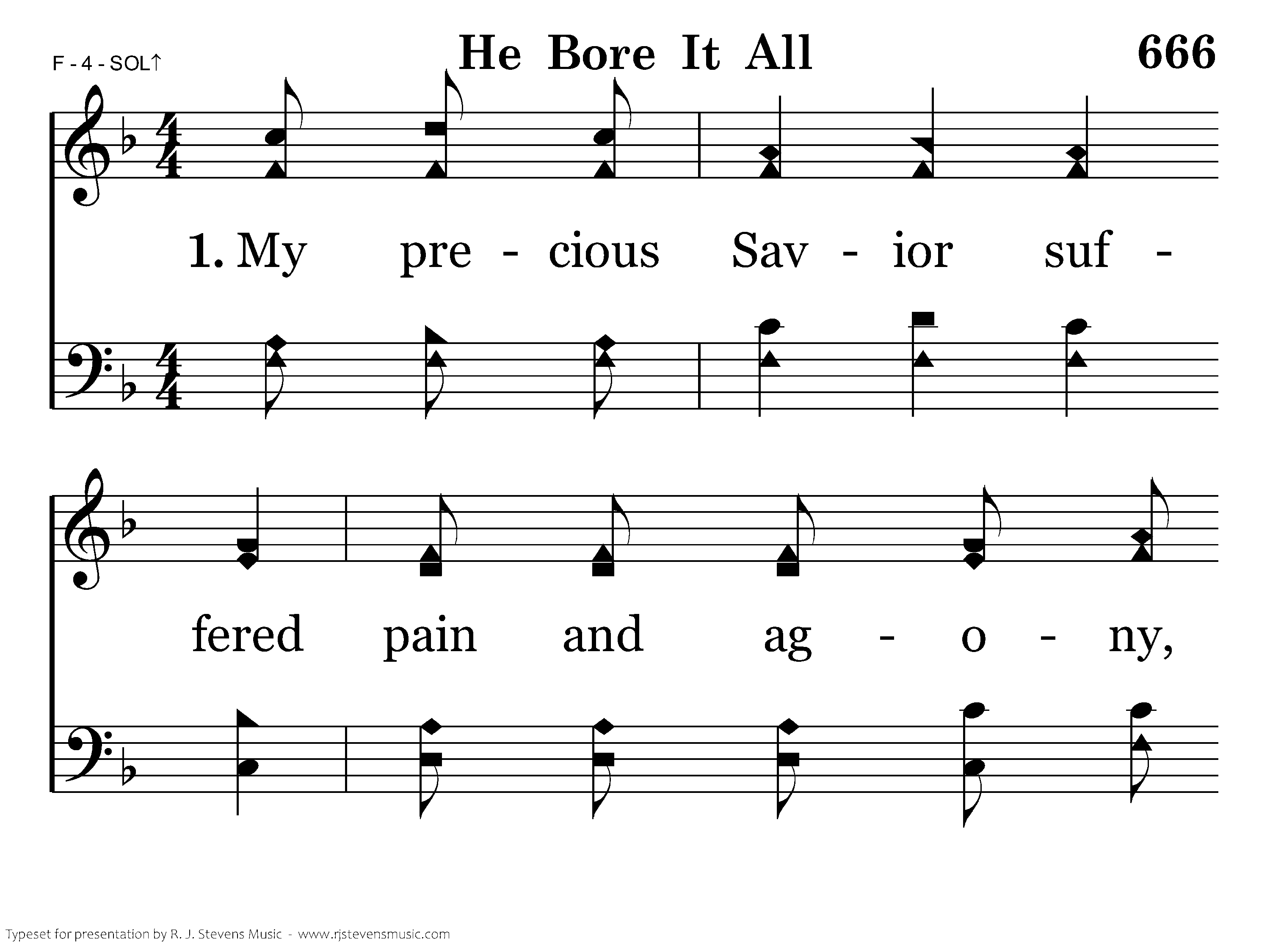 My precious Savior suffered pain and agony, He bore it all that I might live; He broke the bonds of sin and set the captive free, He bore it all that I might live.