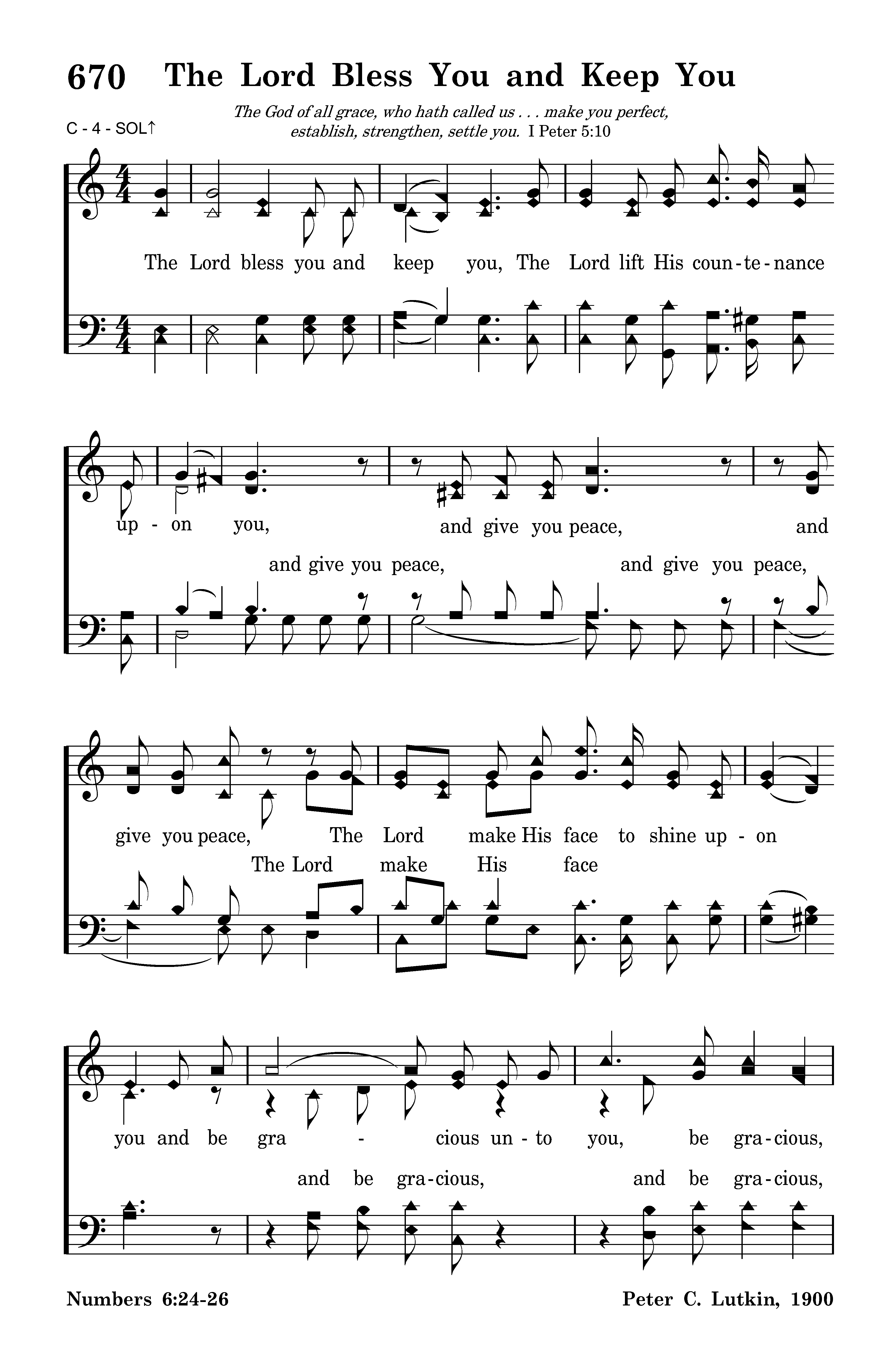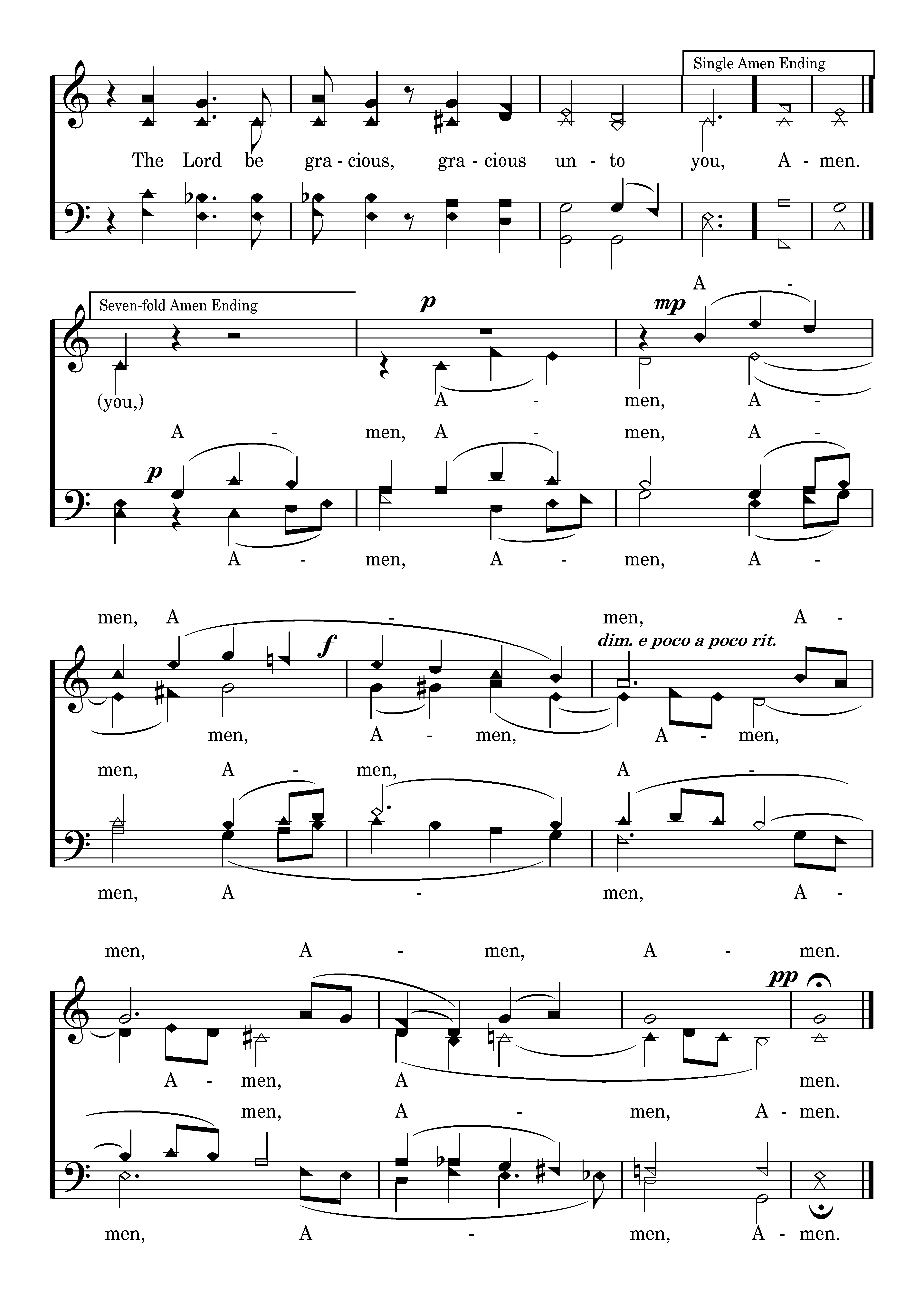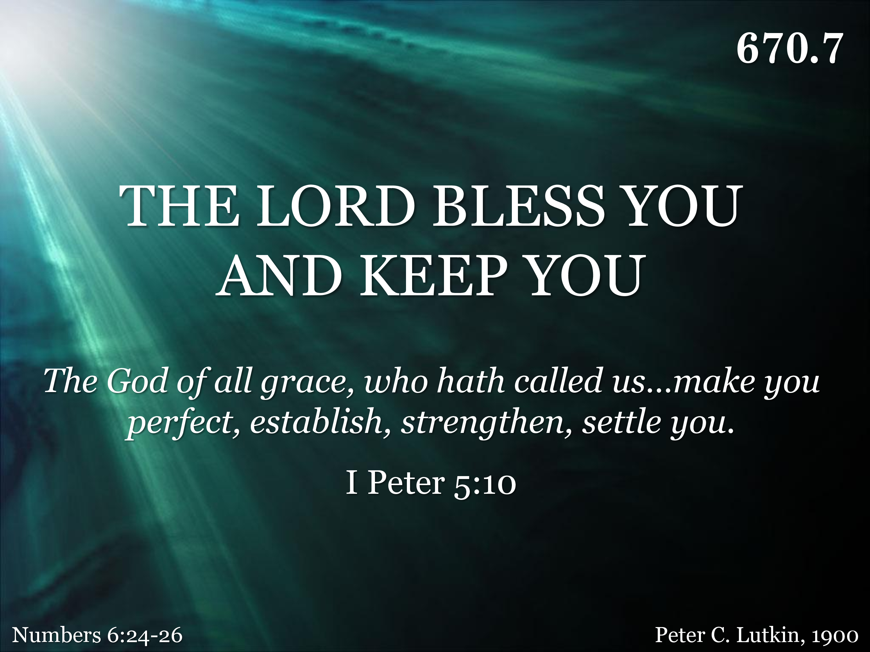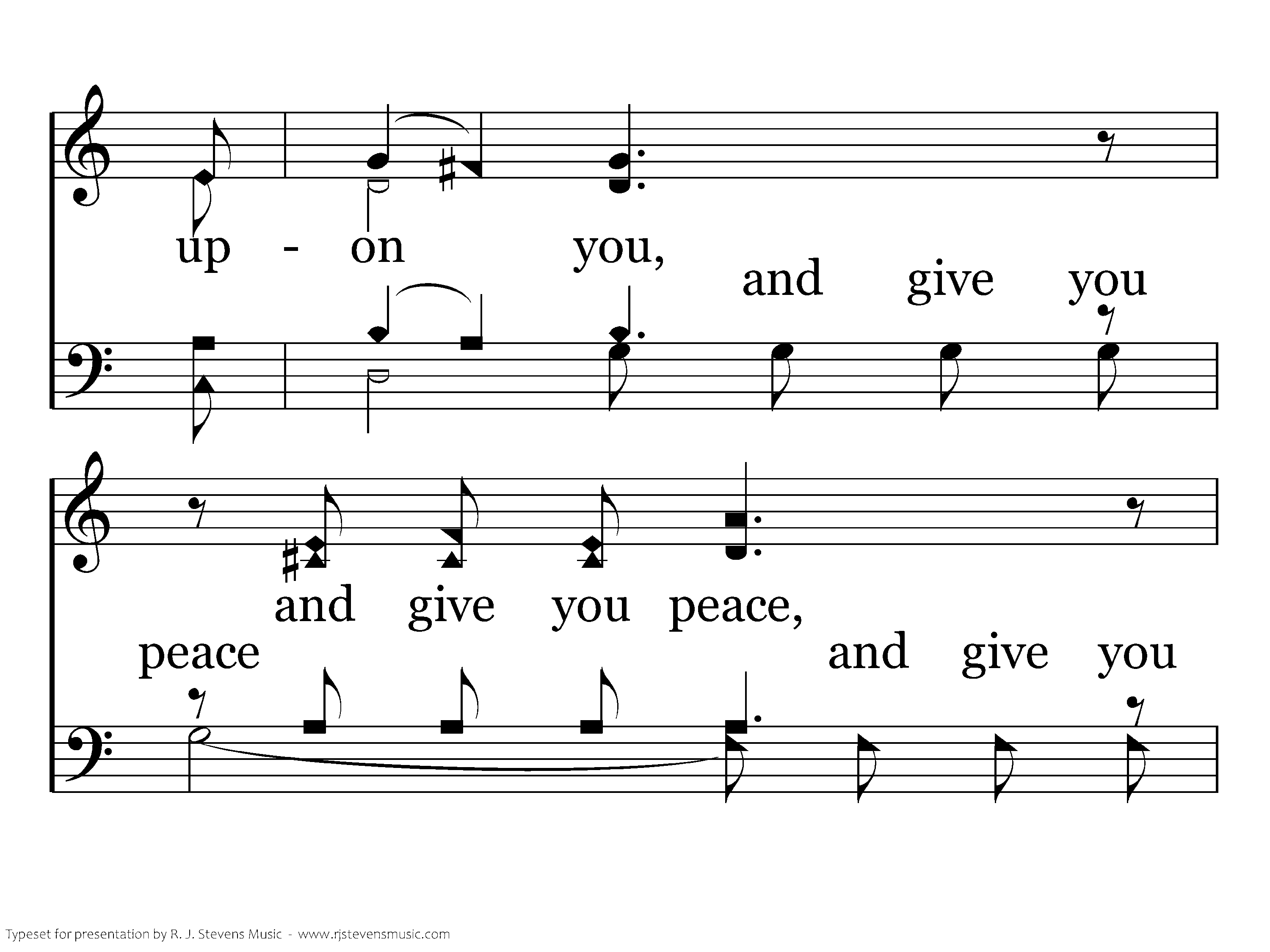 The Lord bless you and keep you, The Lord lift His counenance upon you, and give you peace, The Lord make His face to shine upon you and be gracious unto you, be gracious, The Lord be gracious, gracious unto you. Amen.