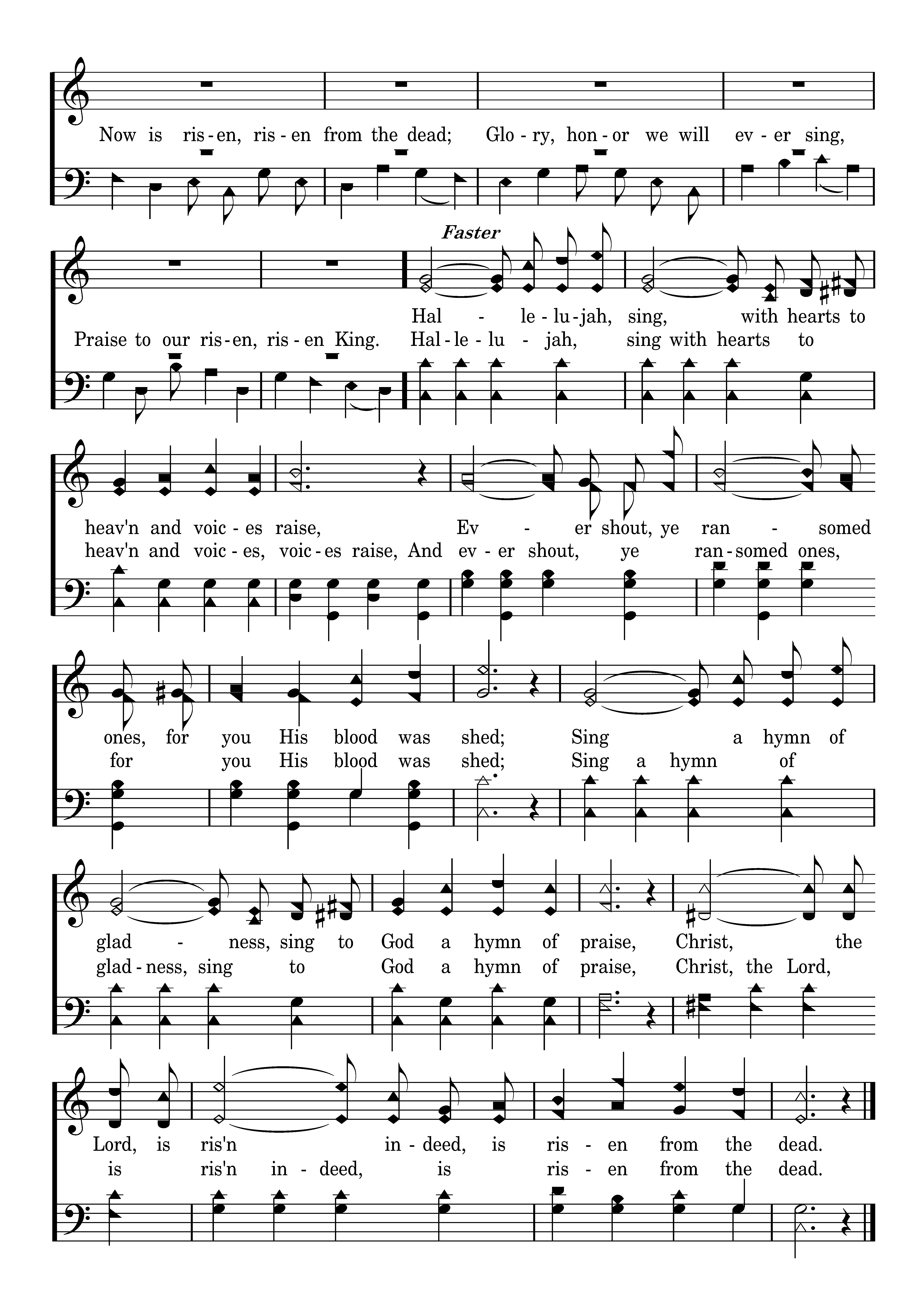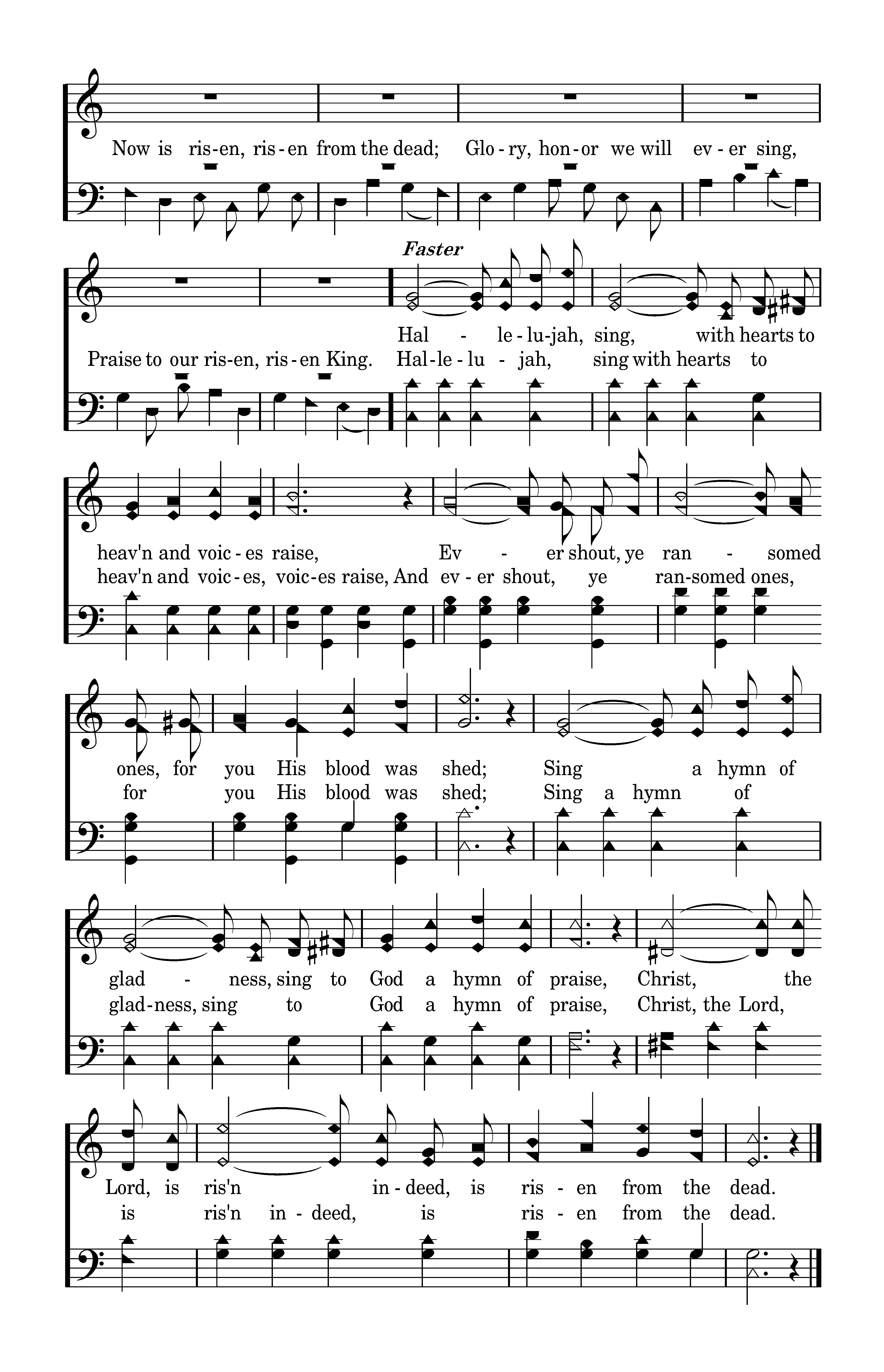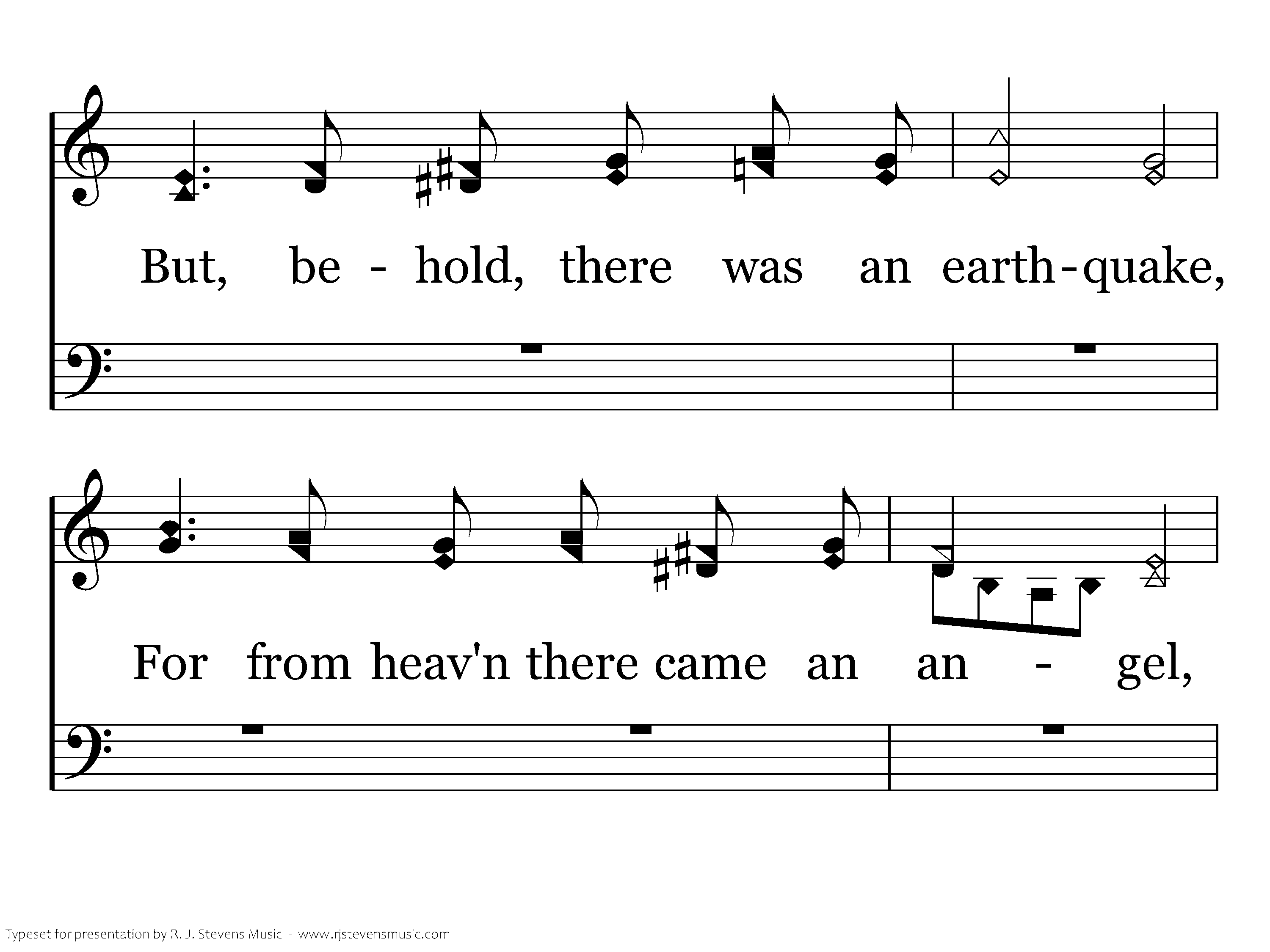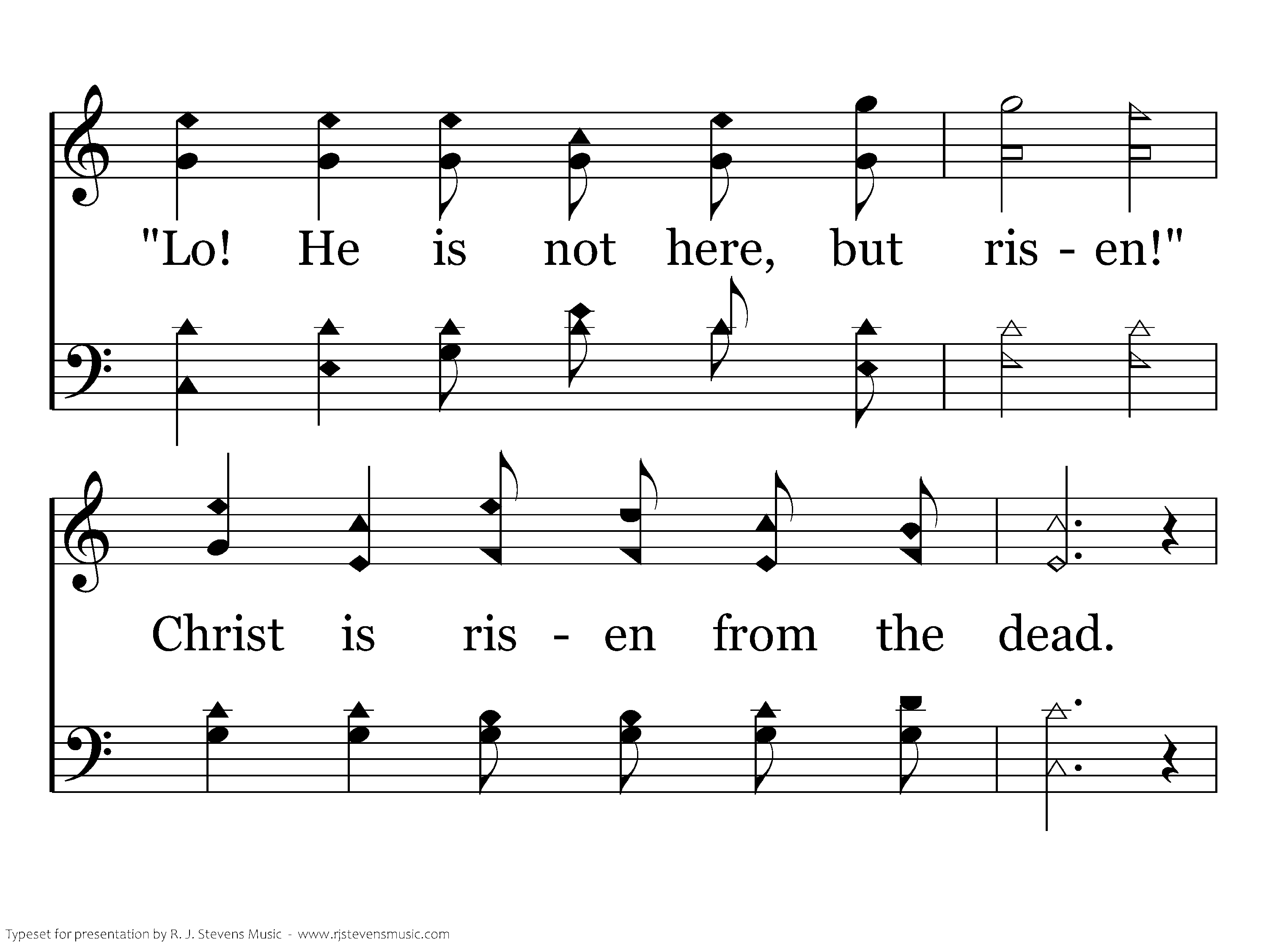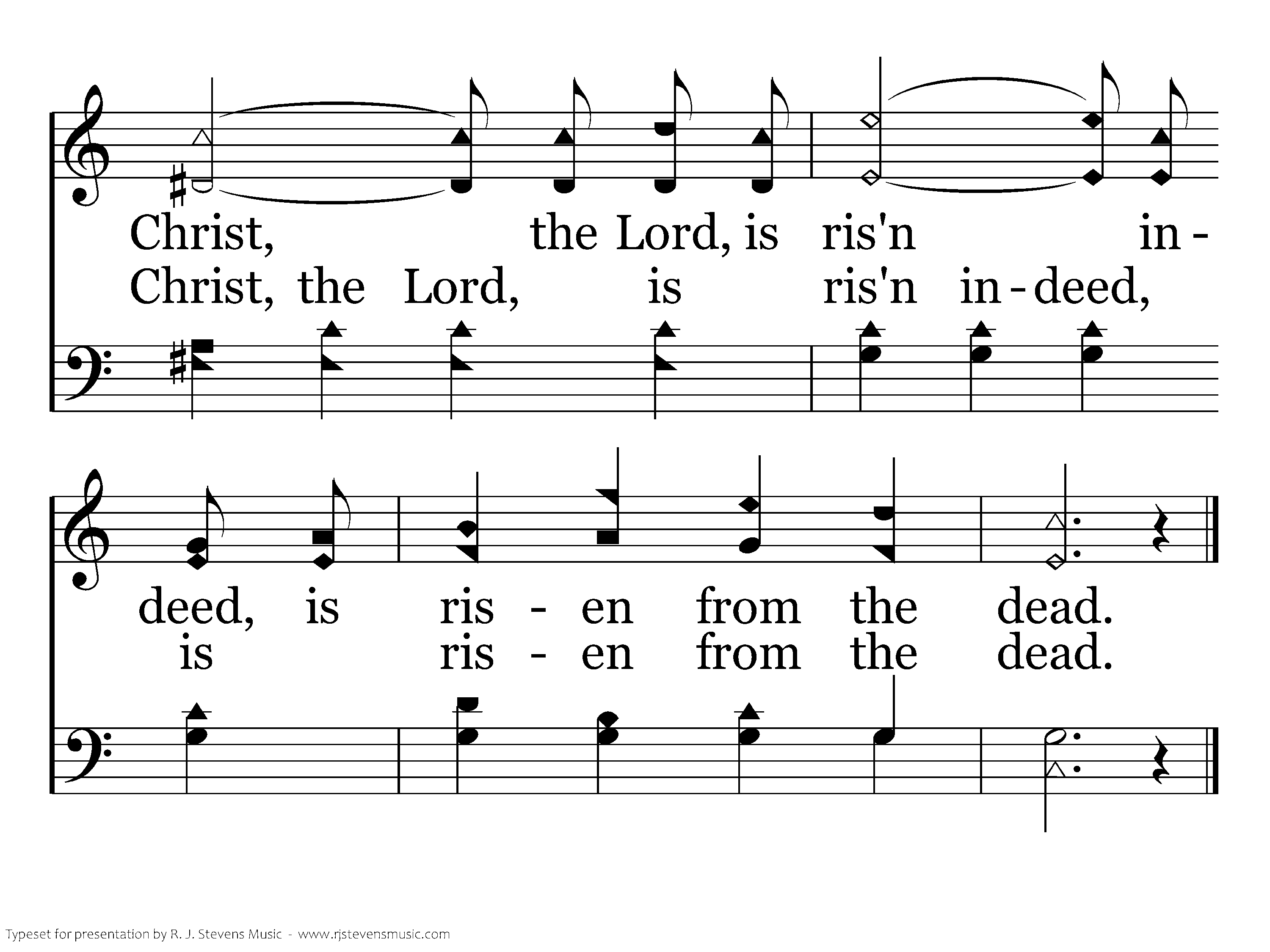 They crucified my Lord, Laid Him in the tomb, Now lies the Son of God in death's sable gloom. The Man of grief and toil There in silence lies; Death has within its coil God of earth and skies. But, behold, there was an earthquake, For from heav'n there came an angel, With a countenance like lightning, And a raiment white as snow. When at dawn came Mary Magdalene, "Twas the angel's voice which said: Lo! He is not here, but risen!" Christ is risen from the dead. He who for the world's salvation bled, Now is risen, risen from the dead, Glory, honor we will ever sing, Praise to our risen King. Hallelujah sing, with hearts to heav'n and voices raise, Ever shout, ye ransomed ones, for you His blood was shed; Sing a hymn of gladness , sing to God a hymn of praise, Christ the Lord is ris'n indeed is risen from the dead.
