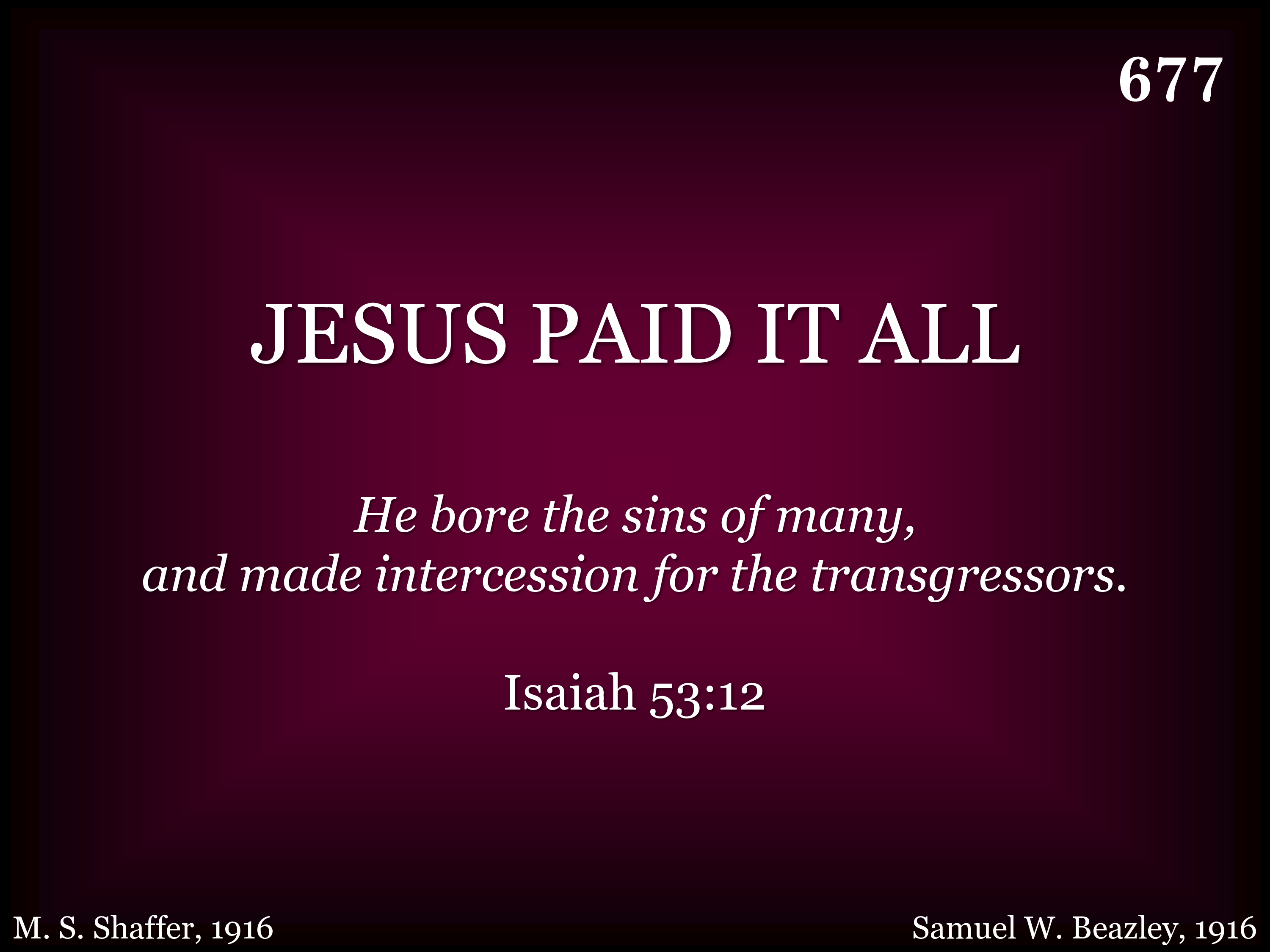 | Title | Jesus Paid It All |