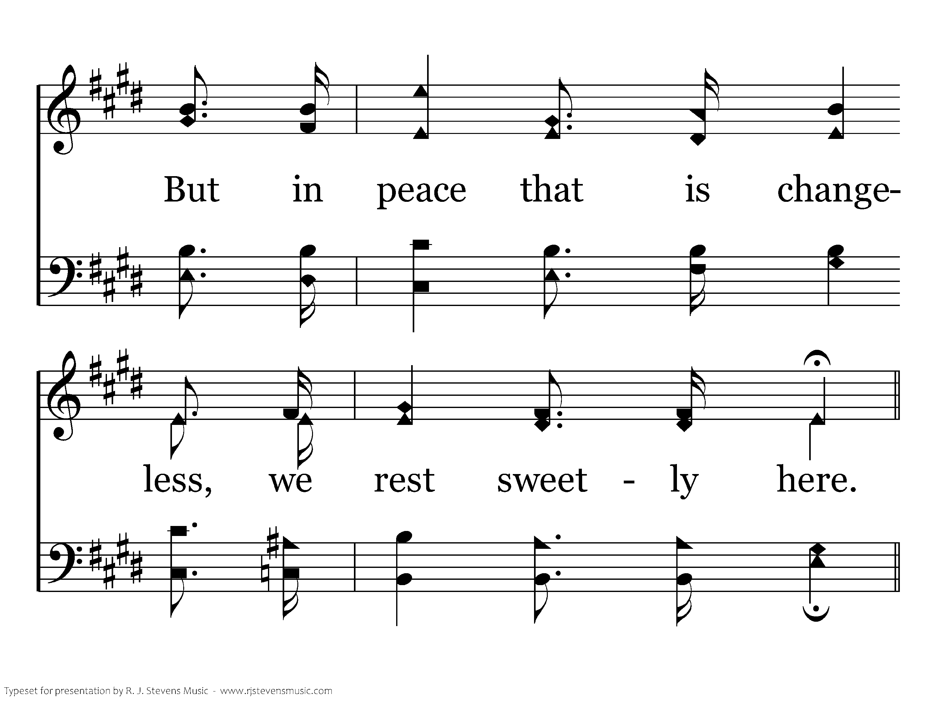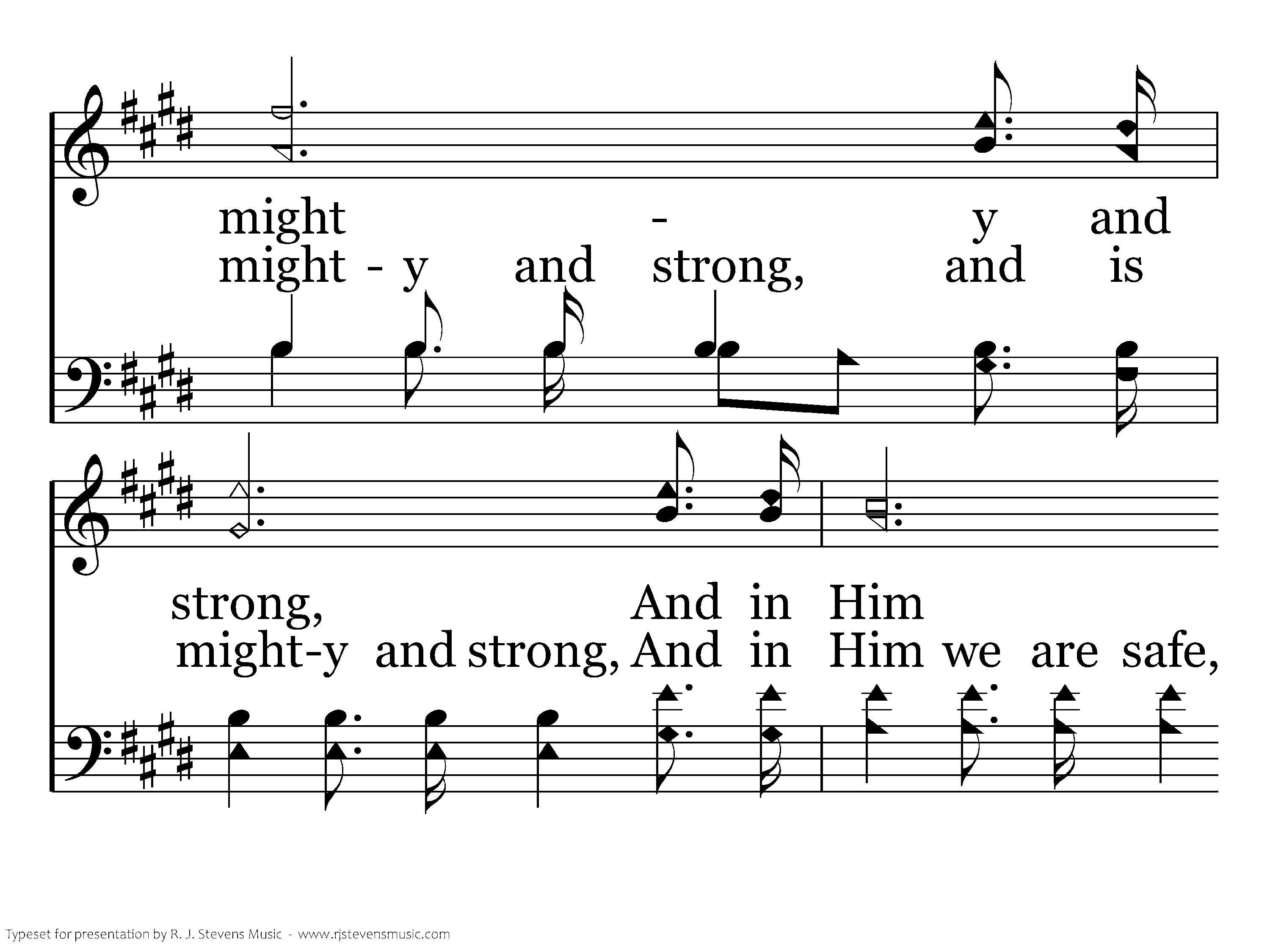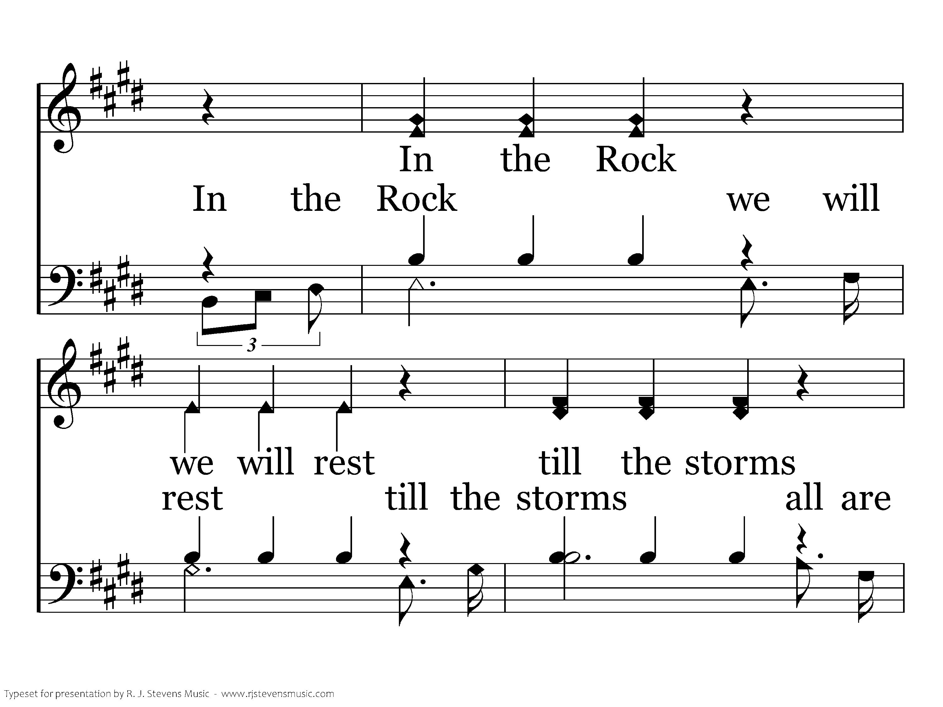 For the Lord is our Rock and is mighty and strong, And in Him we are safe He's our help and our song. In the Rock we will rest till the storms all are past; He will guide thru the gloom till the light dawns at last, dawns at last.