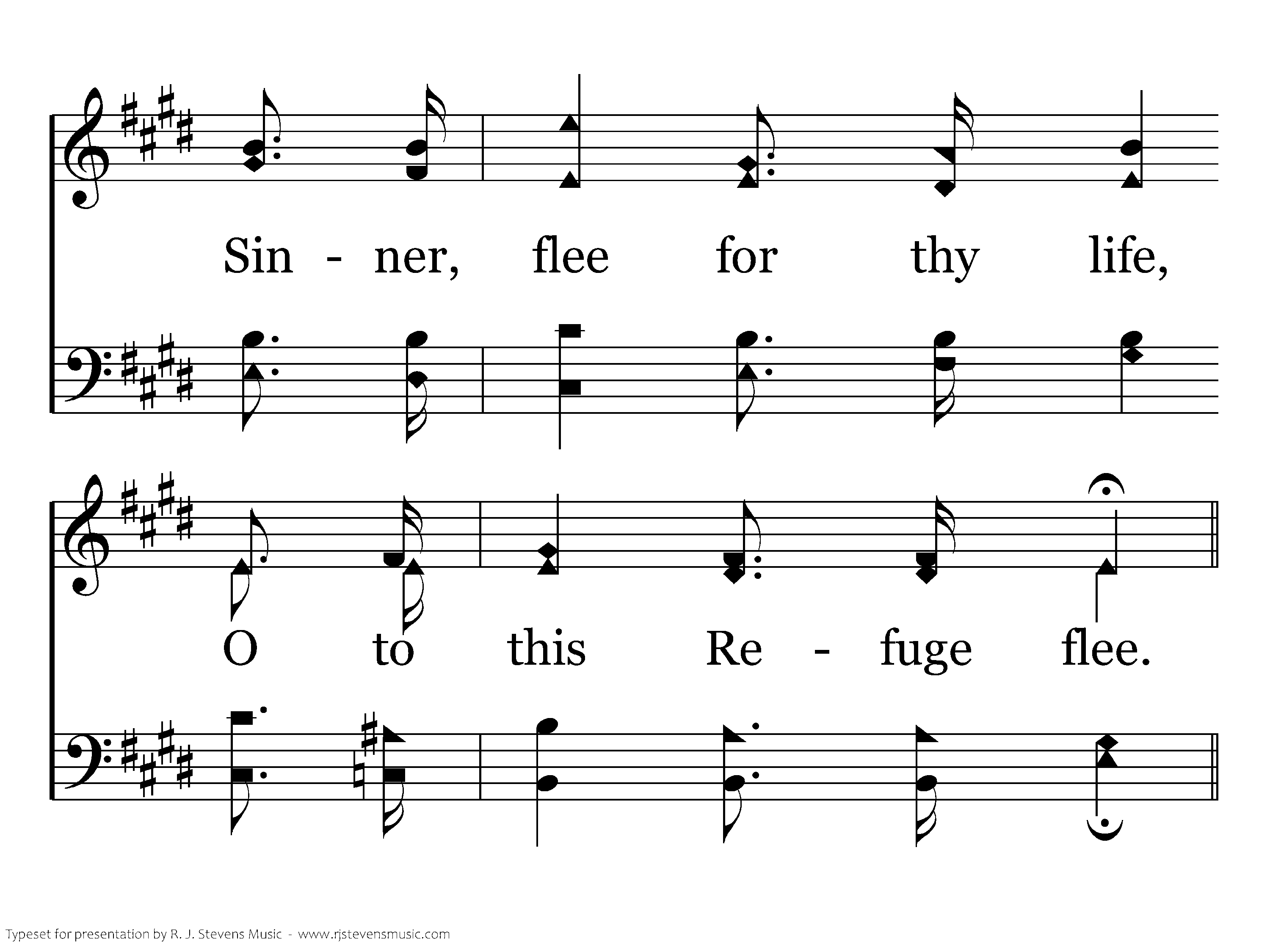 O the Rock, blessed Rock, what a calm, blest retreat, We will rest in the shade all secure from the heat; In the Rock we're contented, we're happy and free; Sinner, flee for thy life, O to this Refuge flee.