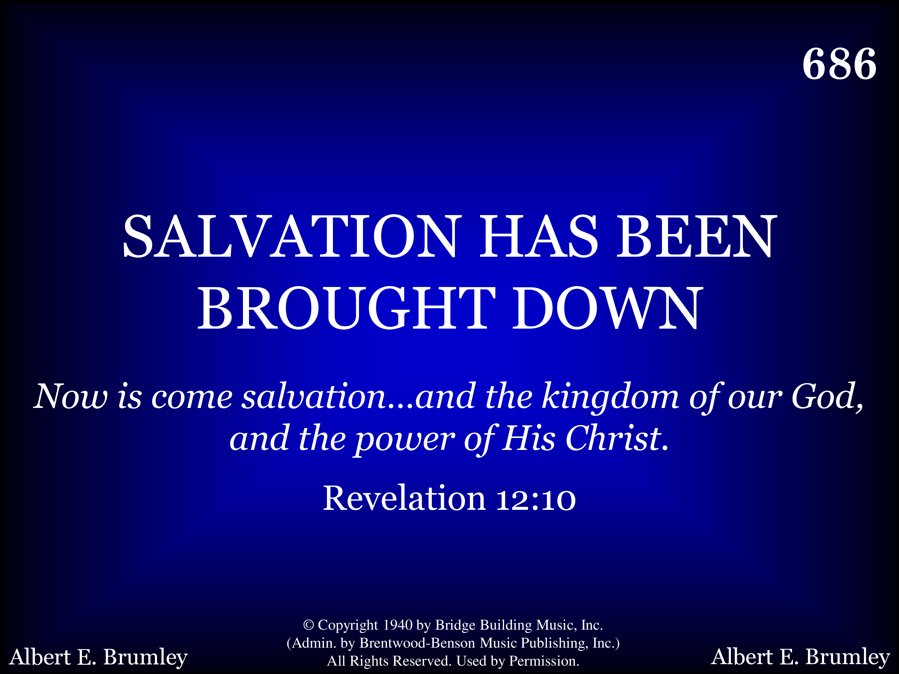 - Copyright © 1940 by Bridge Building Music. (Admin. by Brentwood-Benson Music Publishing, Inc.) All Rights Reserved. Used by Permission.