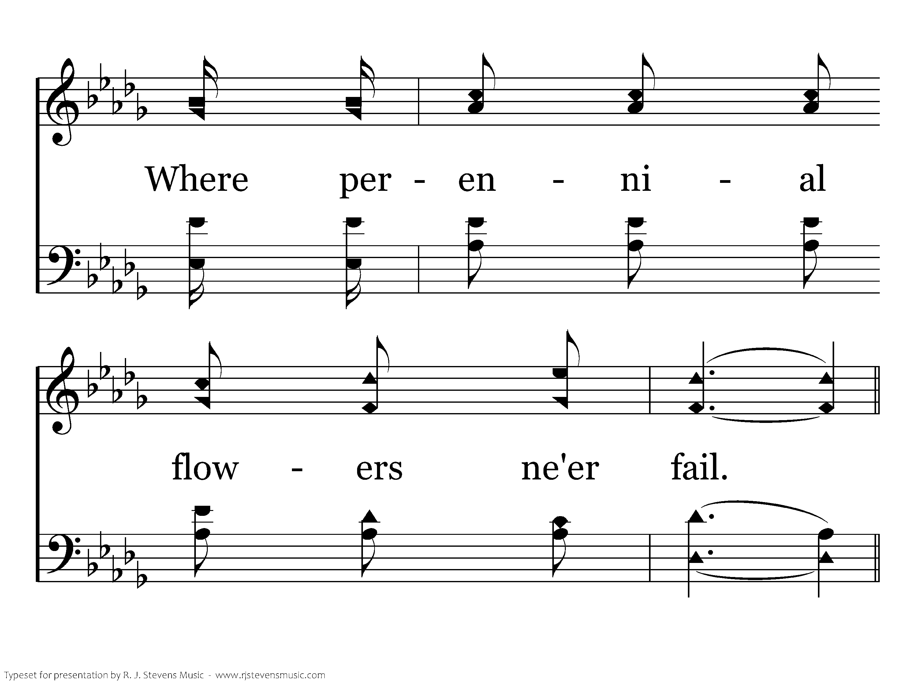 As I roam the hillside, or I list to the tide, As I pluck the sweet flowers that grow in the dale; A faint picture is there of a land bright and fair, Where perennial flowers ne'er fail.