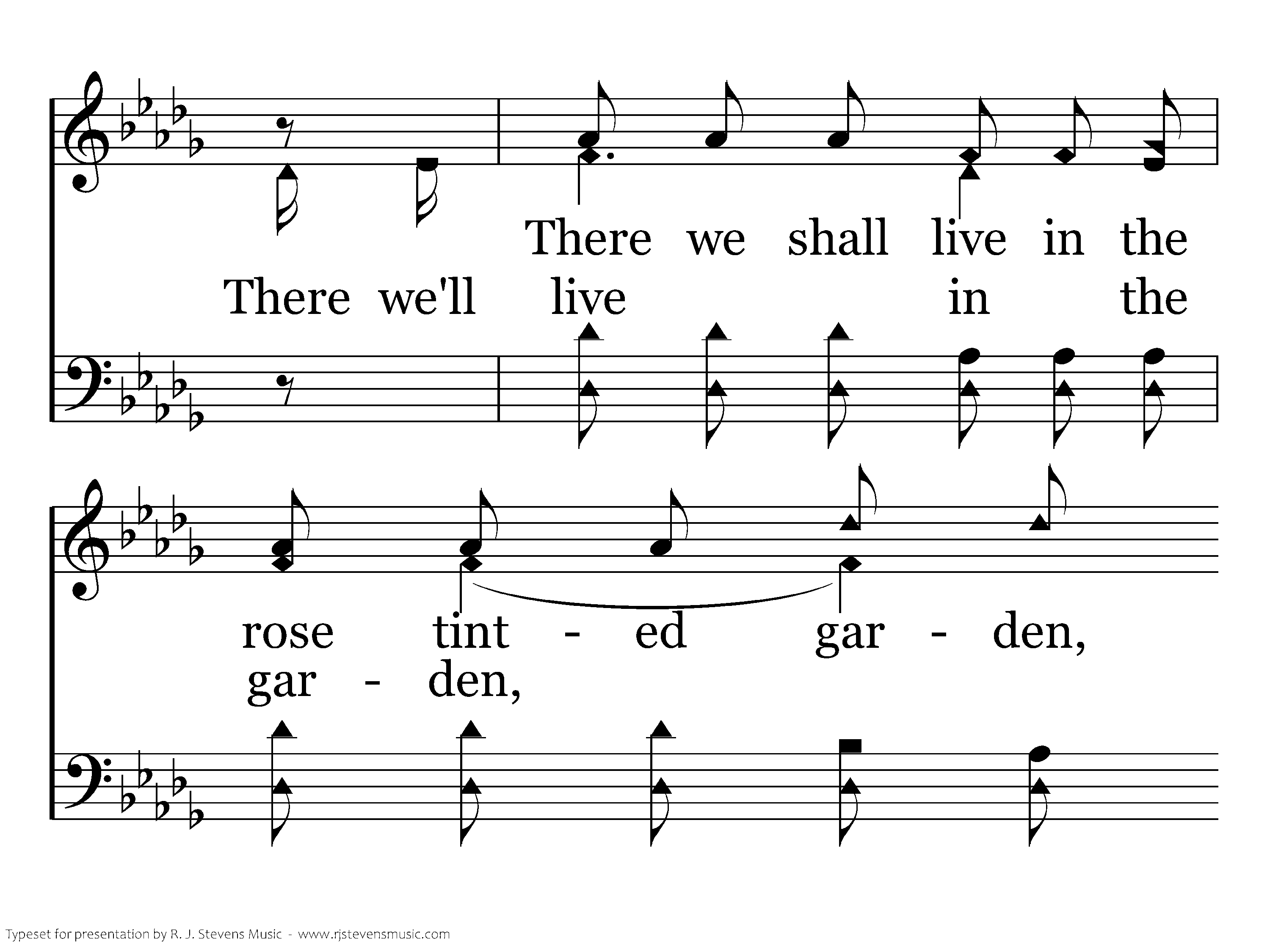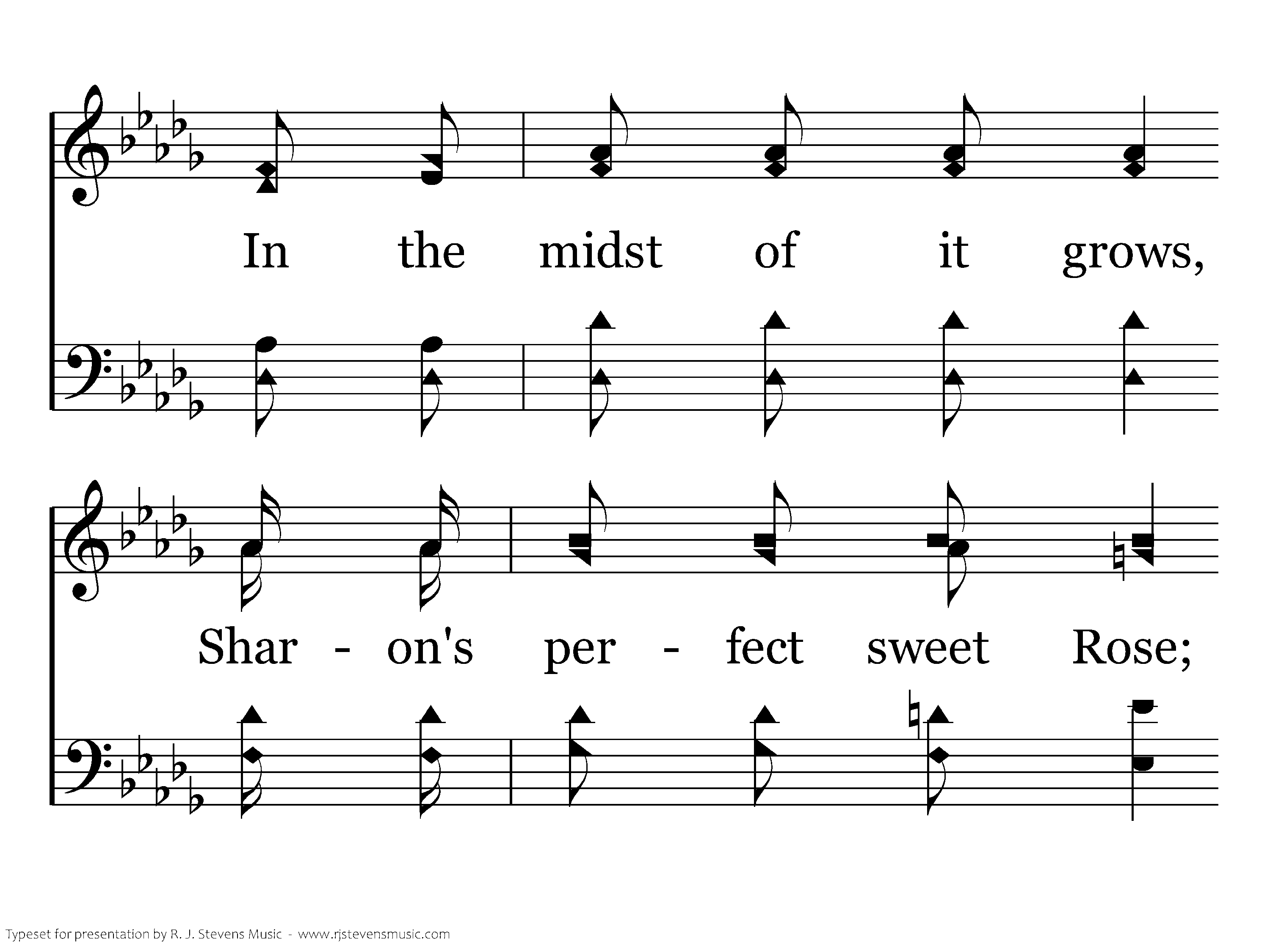 Tho' your garden is rare, it is naught to compare With the flowers that bloom in the garden above, In the midst of it grows, Sharon's perfect sweet Rose; 'Tis the wonderful Flower we love.