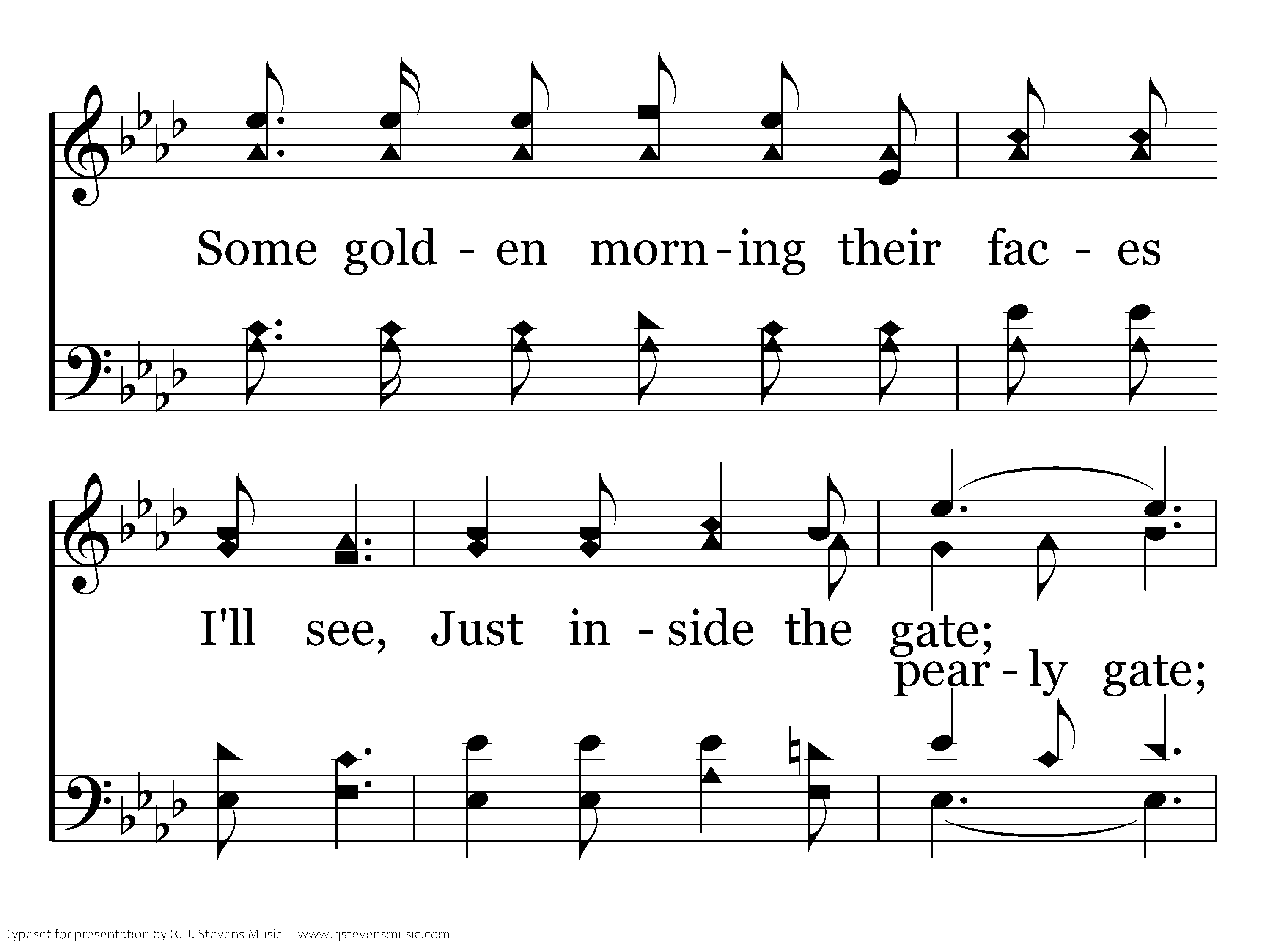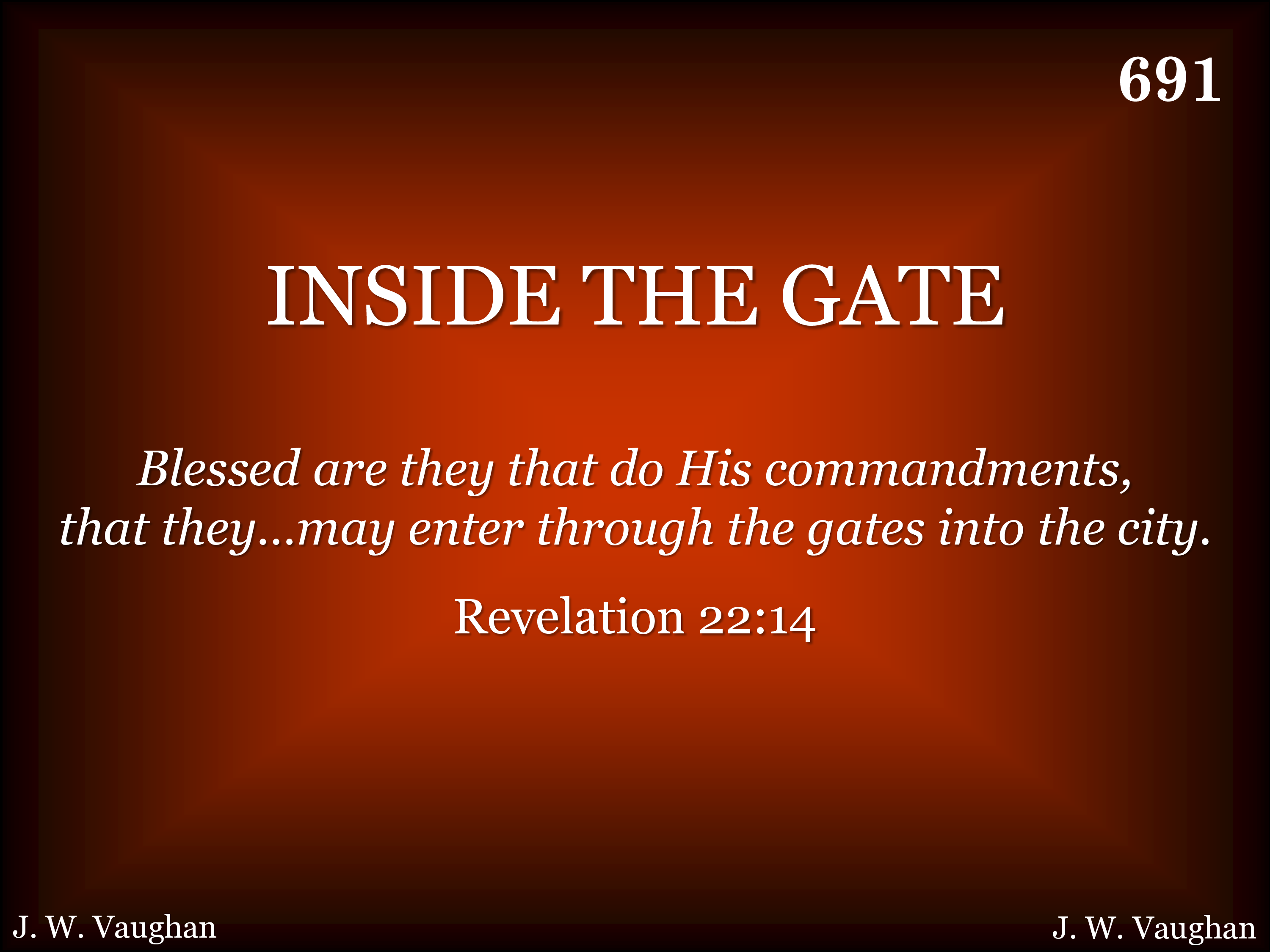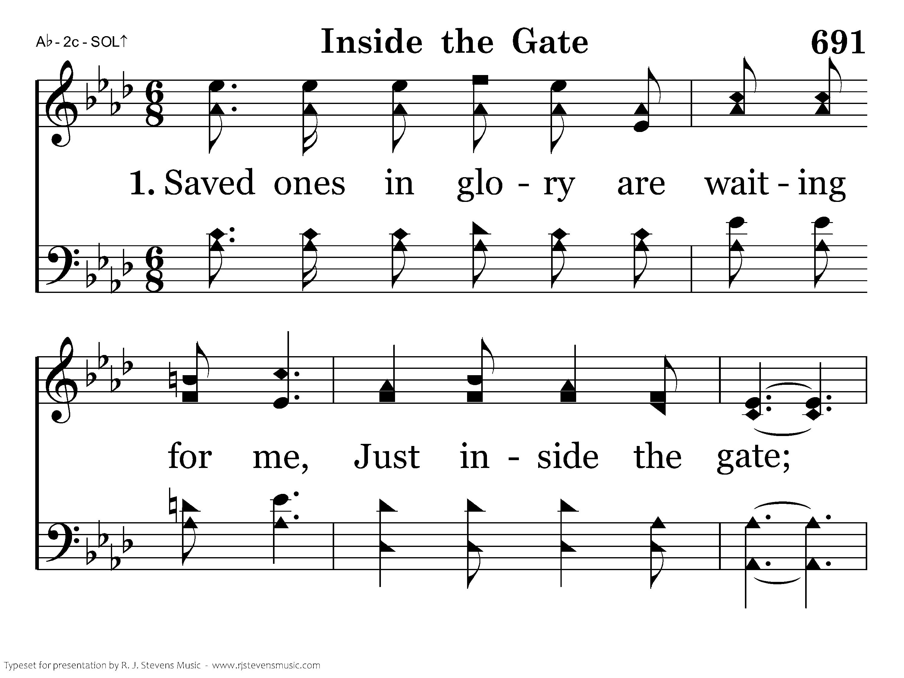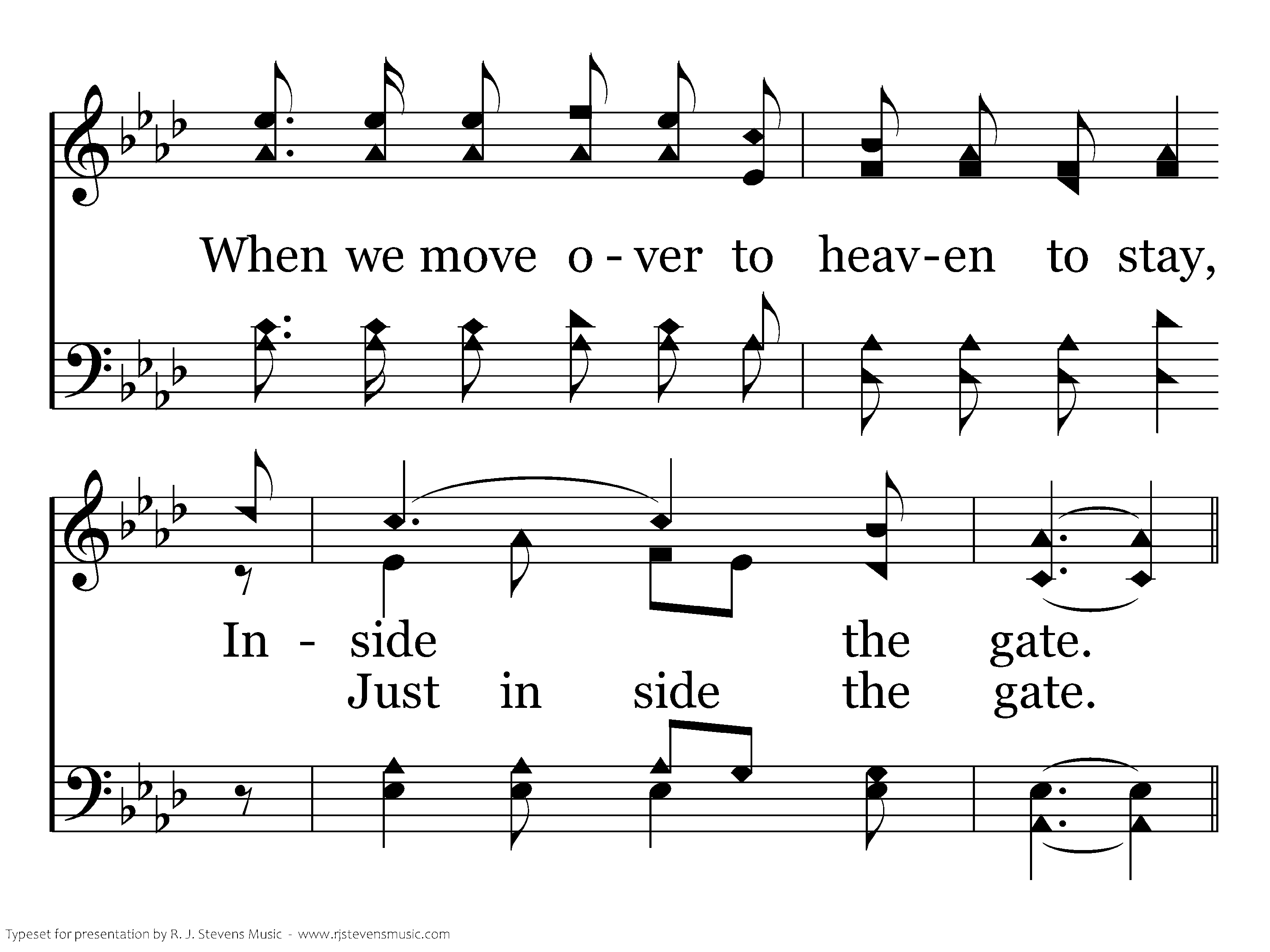 Inside the home gate, Where saints for me wait With angels of light all robed in pure white, 'Twill be a glad day, A wonderful day When we enter that home Just inside, inside the gate.