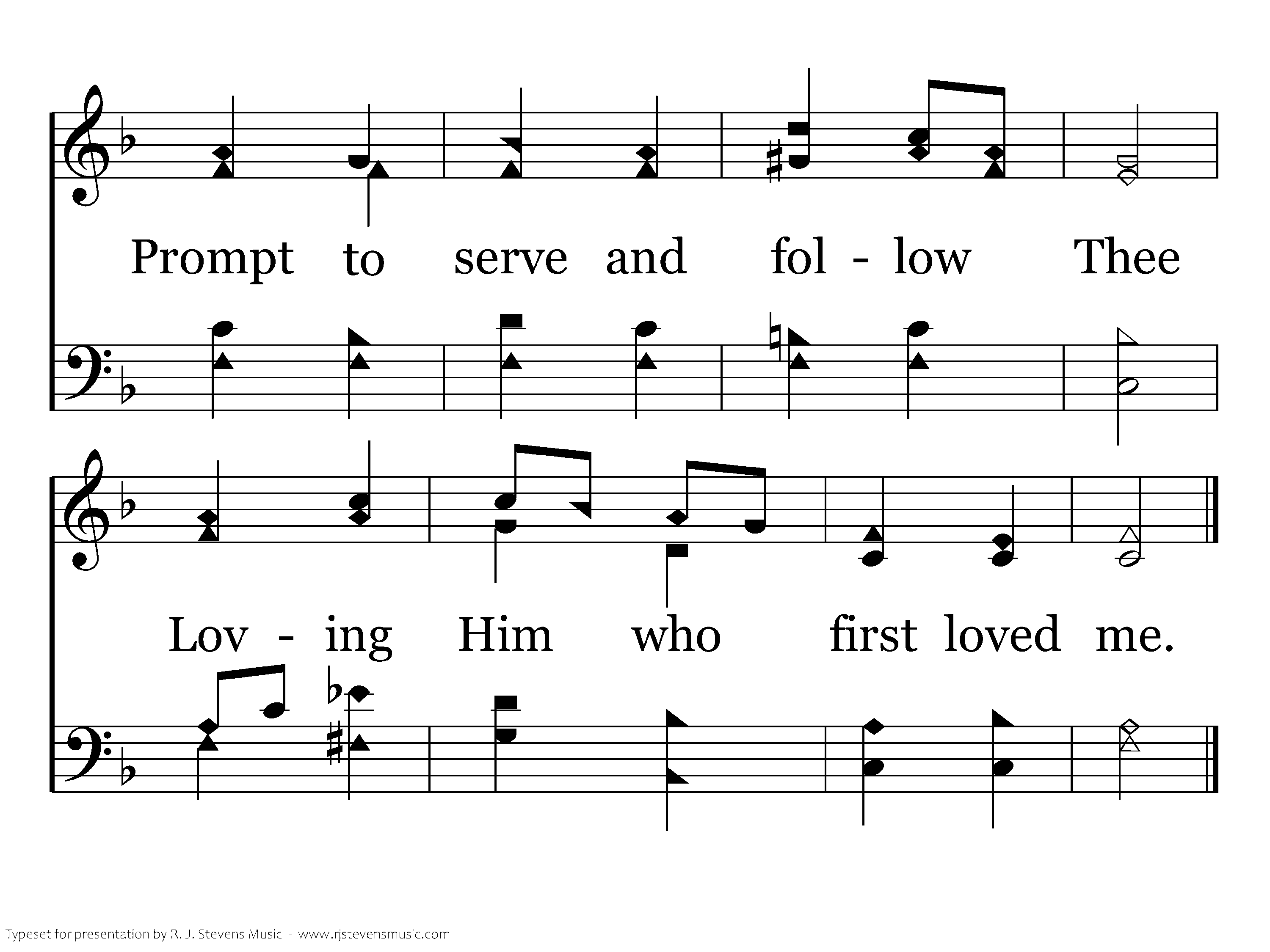 Teach me all Thy steps to trace, Strong to follow in Thy grace, Learning how to love from Thee Loving Him who first loved me.