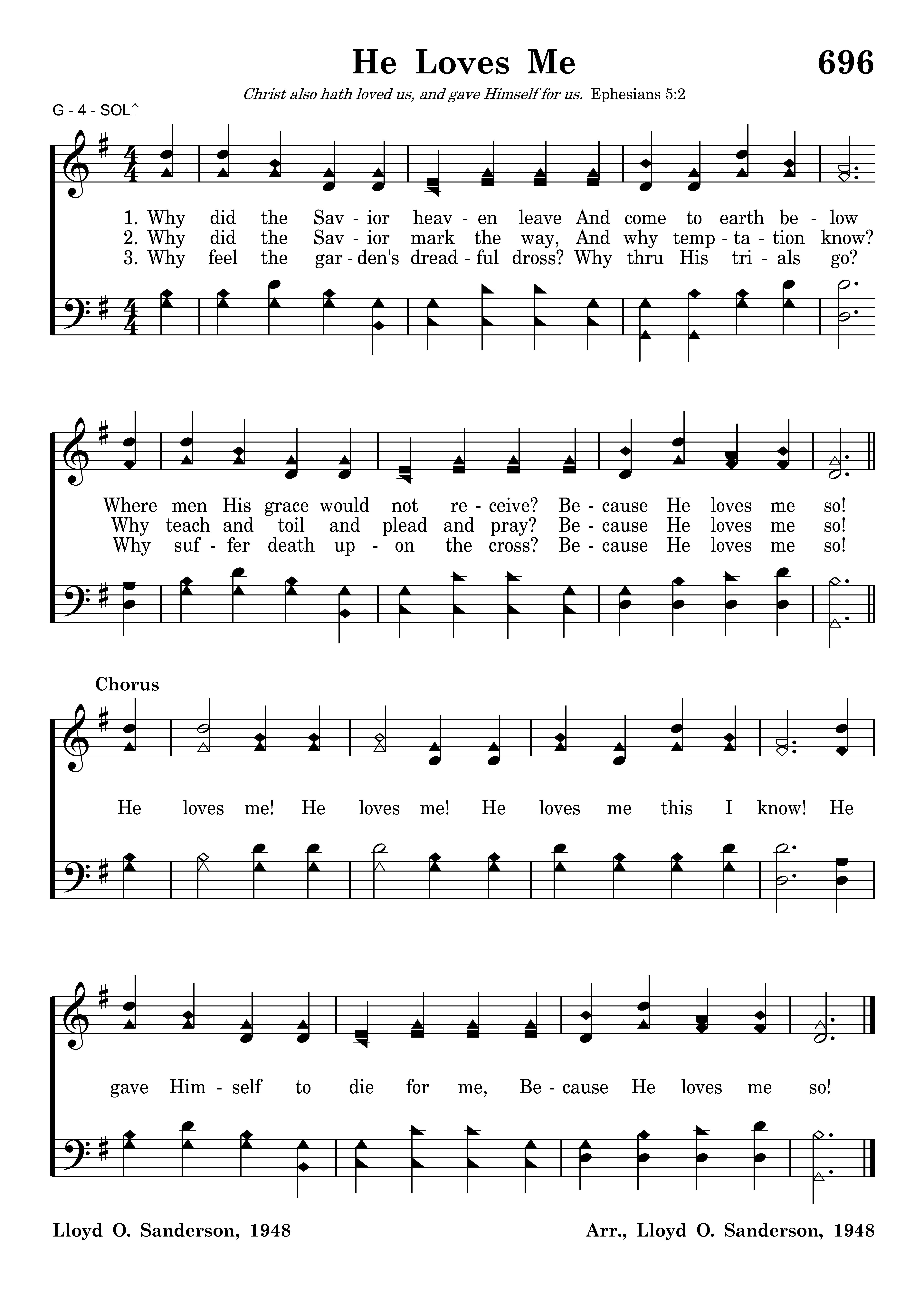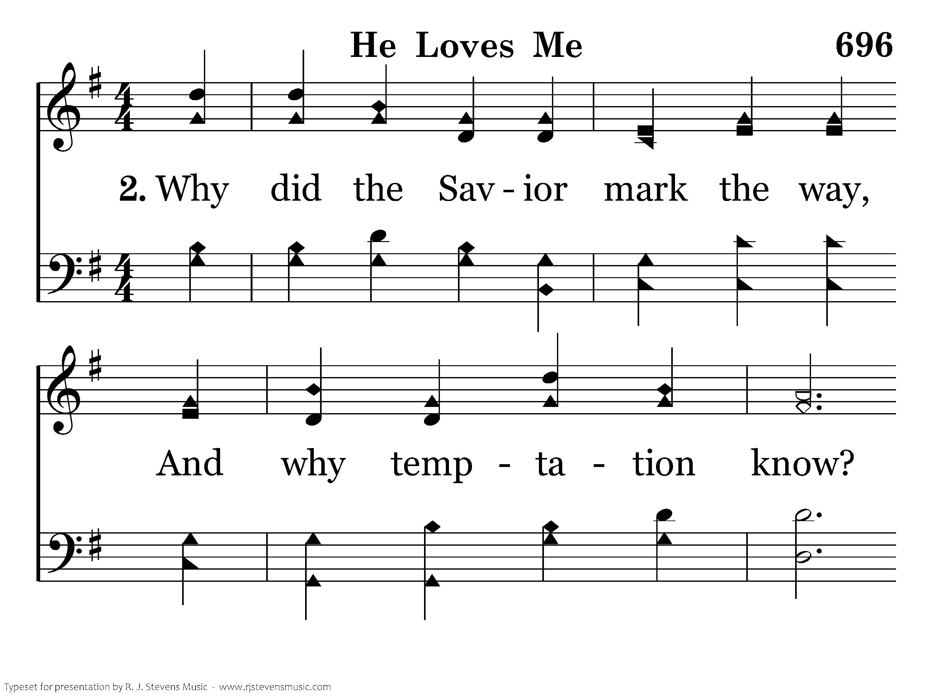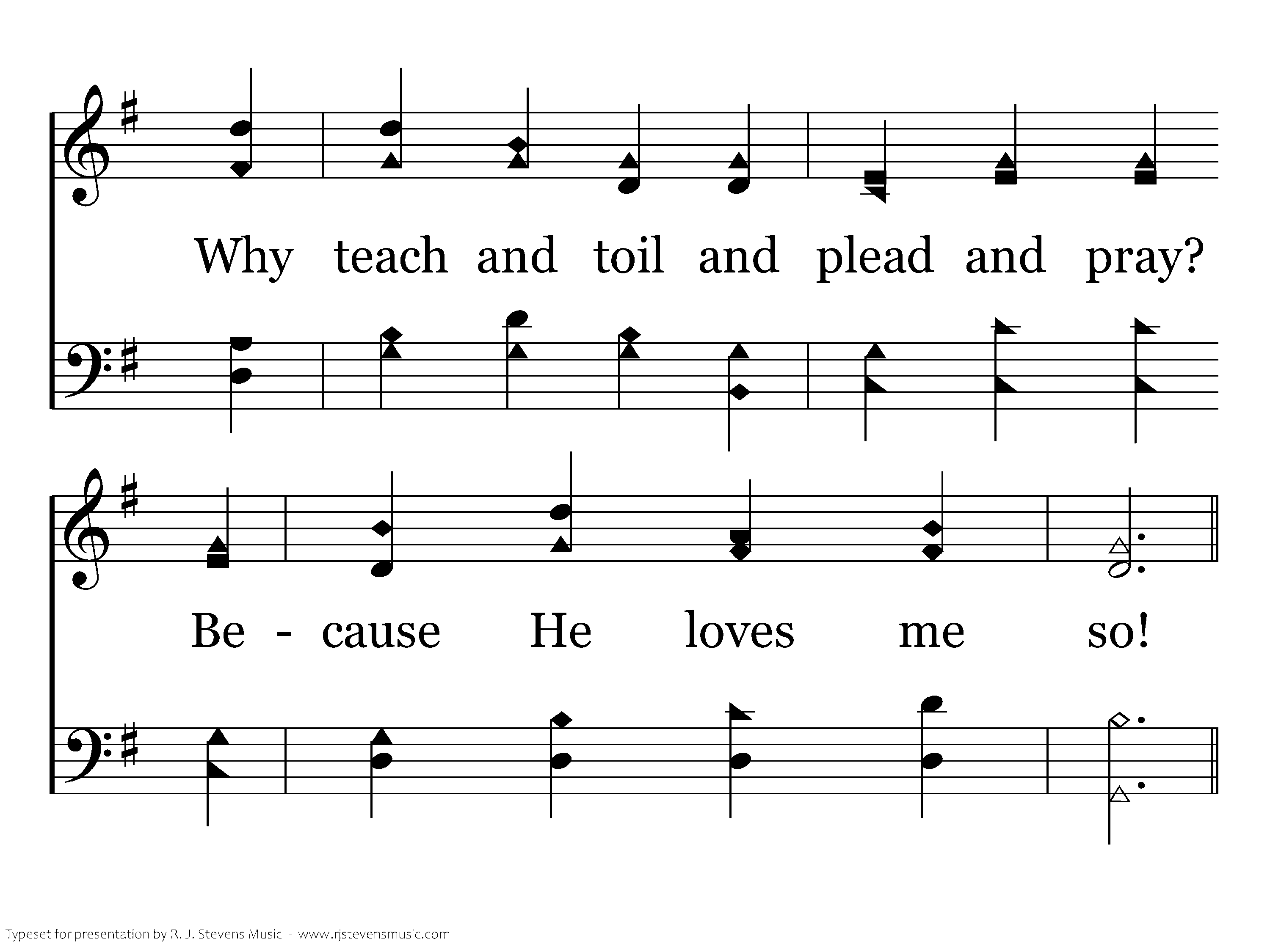 Why did the Savior mark the way, And why temptation know? Why teach and toil and plead and pray? Because He loves me so!