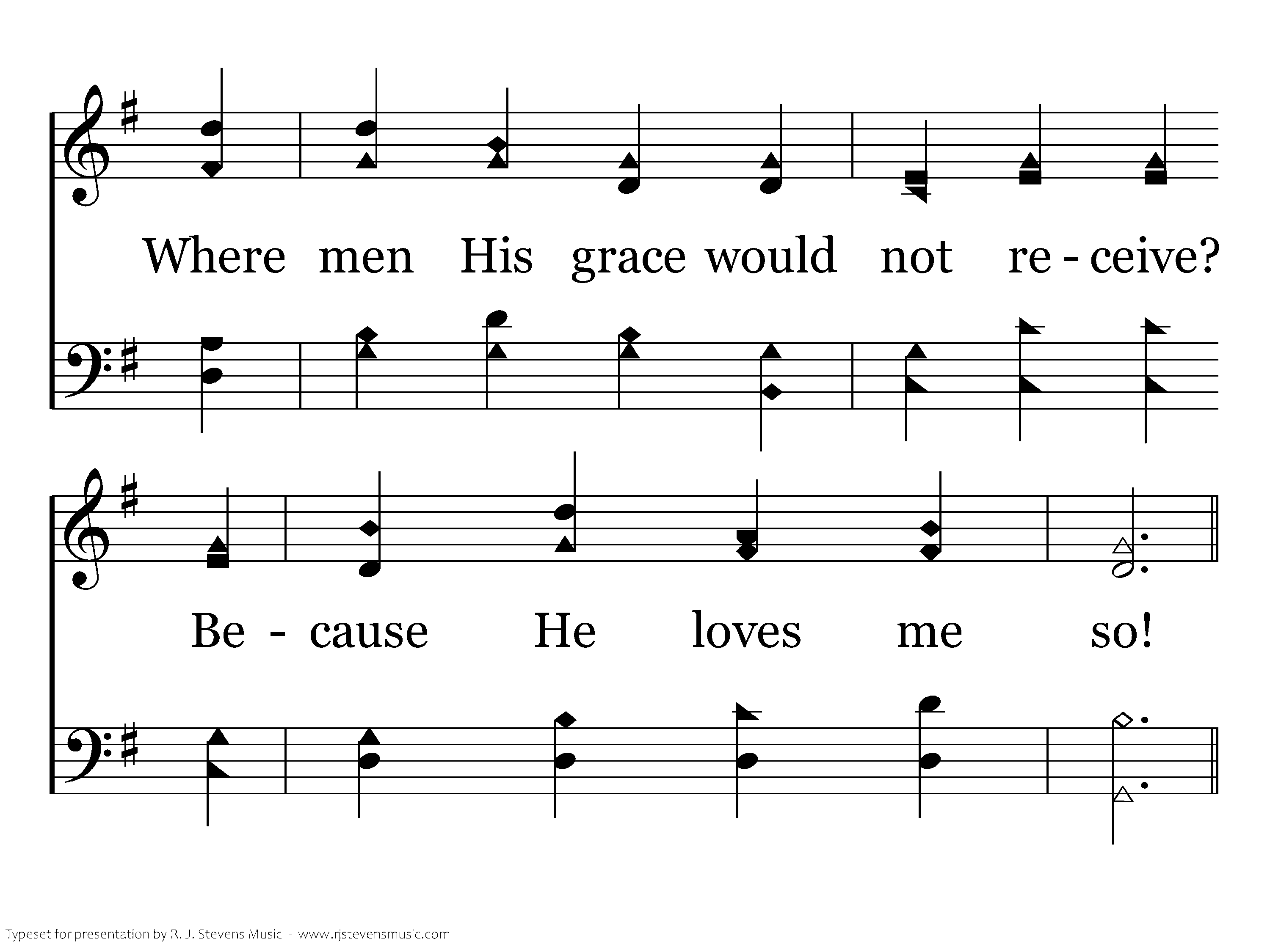 Why did the Savior heaven leave And come to earth below Where men His grace would not receive? Because He loves me so!