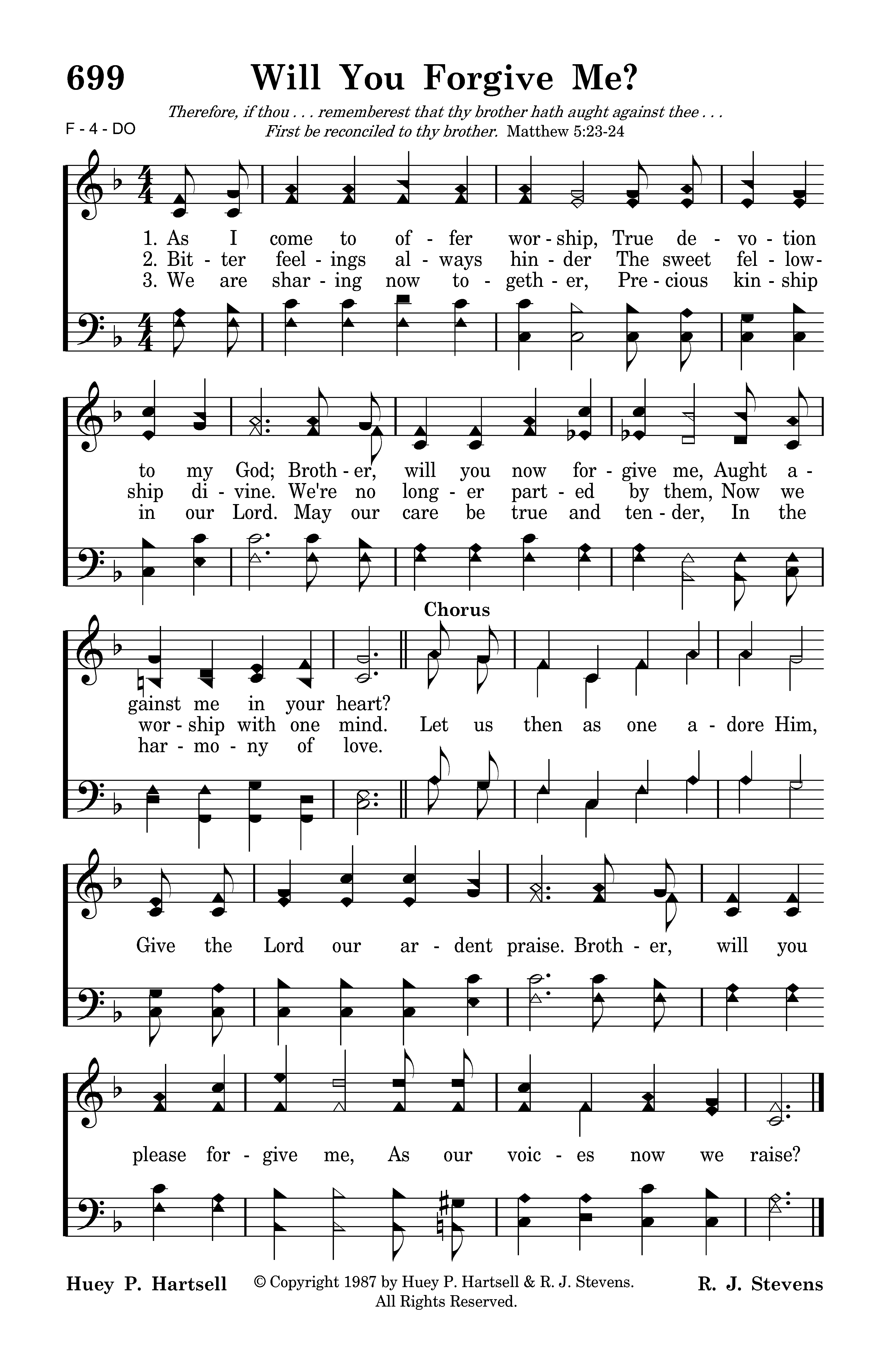 Let us then as one adore Him, Give the Lord our ardent praise. Brother, will you please forgive me, As our voices now we raise.