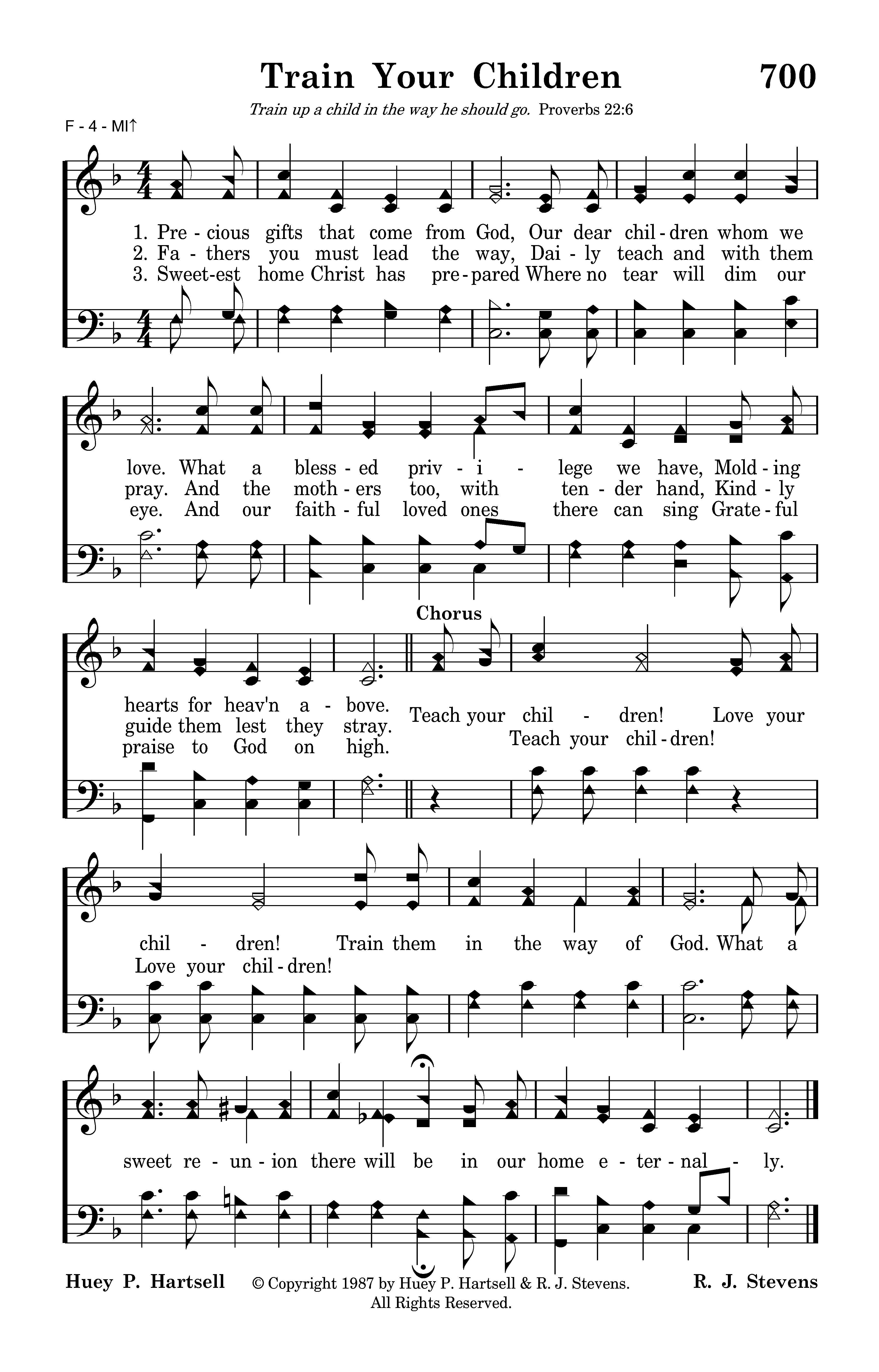 Precious gifts that come from God, Our dear children whom we love. What a blessed privilege we have, Molding hearts for heav'n above.