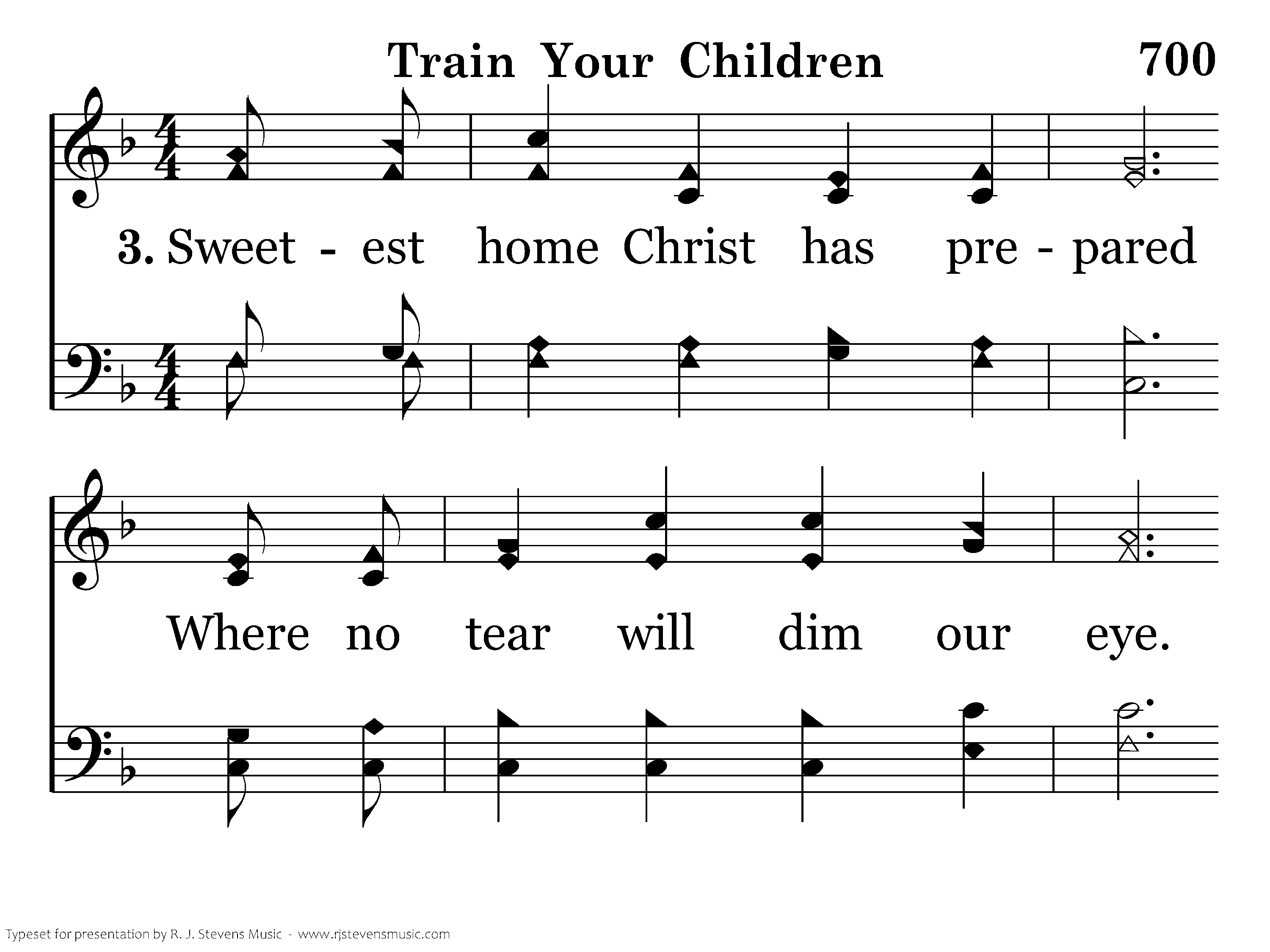 Sweetest home Christ has prepared Where no tear will dim our eye. And our faithful loved ones there can sing Grateful praise to God on high.