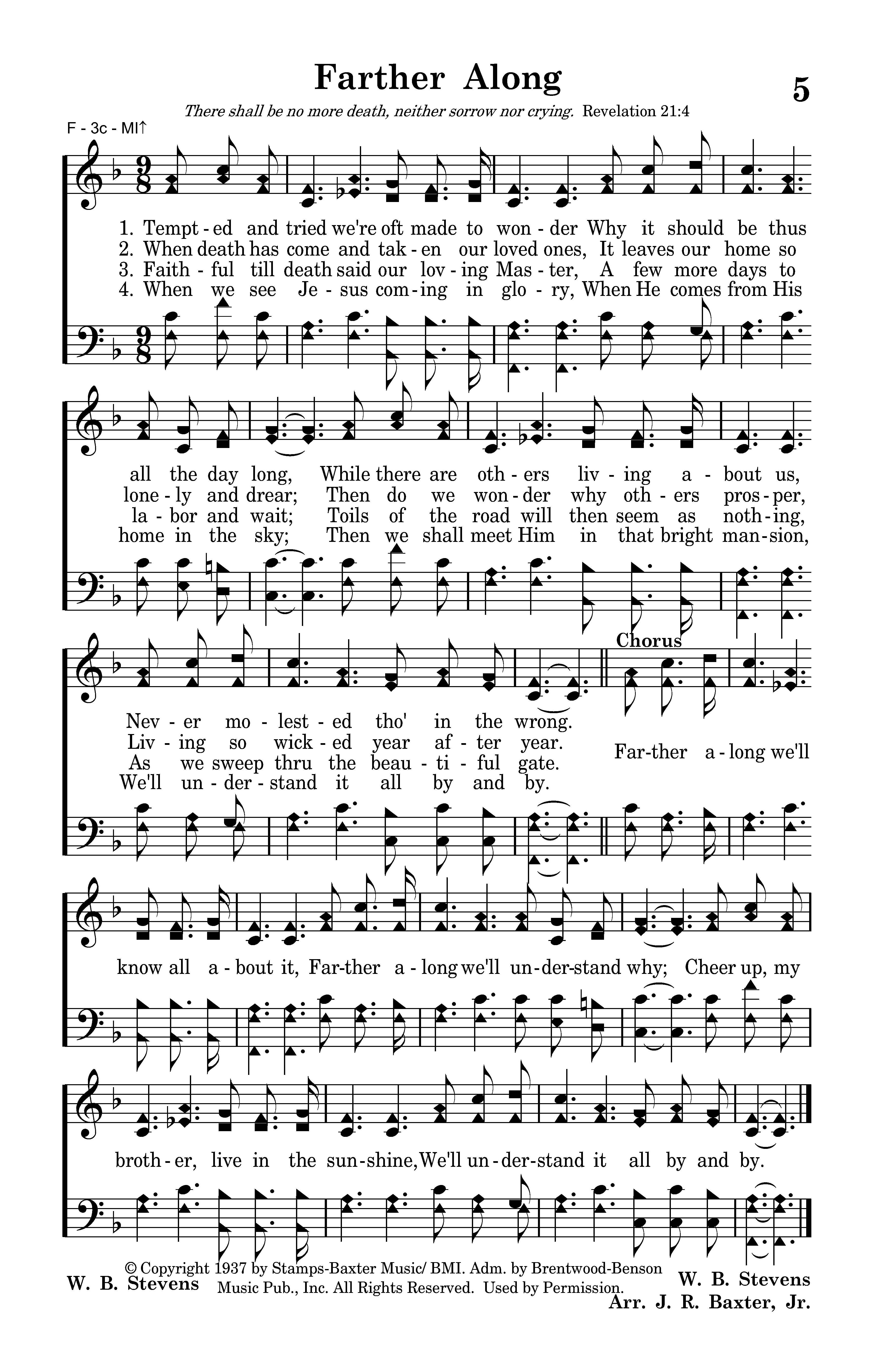 - Copyright © 1937 by Stamps-Baxter Music. (Admin. by Brentwood-Benson Music Publishing, Inc.) All Rights Reserved. Used by Permission.