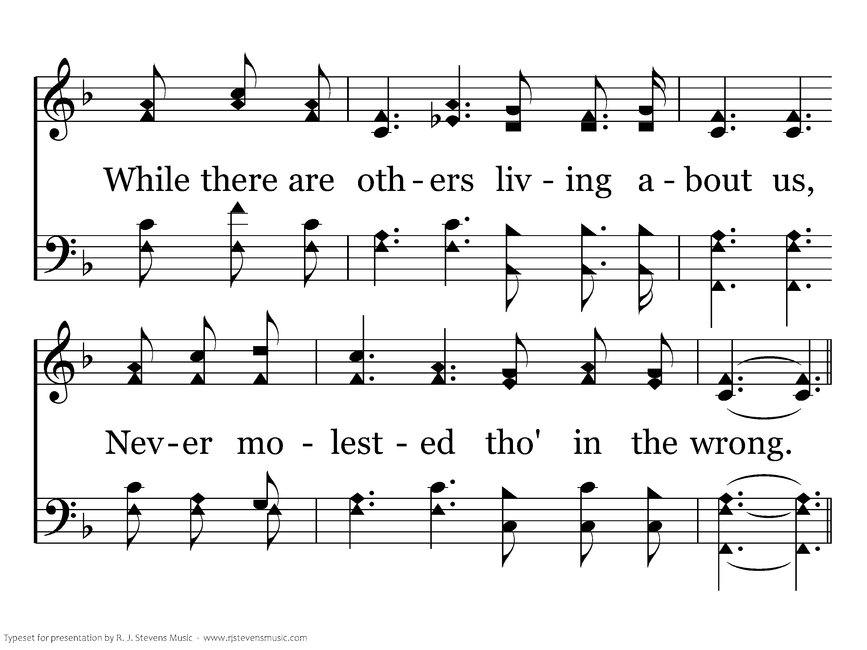 Tempted and tried we're oft made to wonder Why it should be thus all the day long, While there are others living about us, Never molested tho' in the wrong.