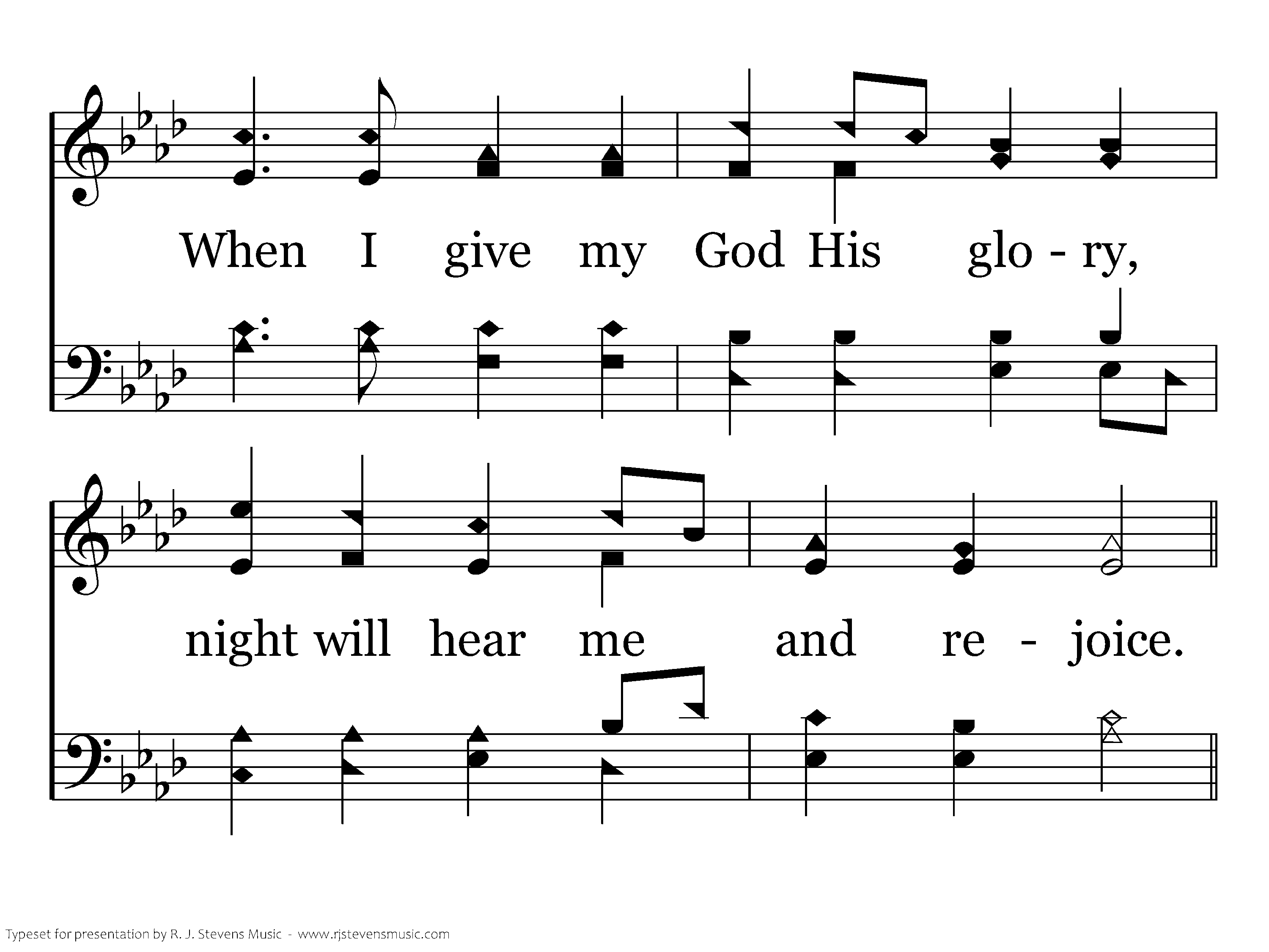 Stars and joy in praises from me; "lesser light" will know my voice. When I give my God His glory, night will hear me and rejoice.