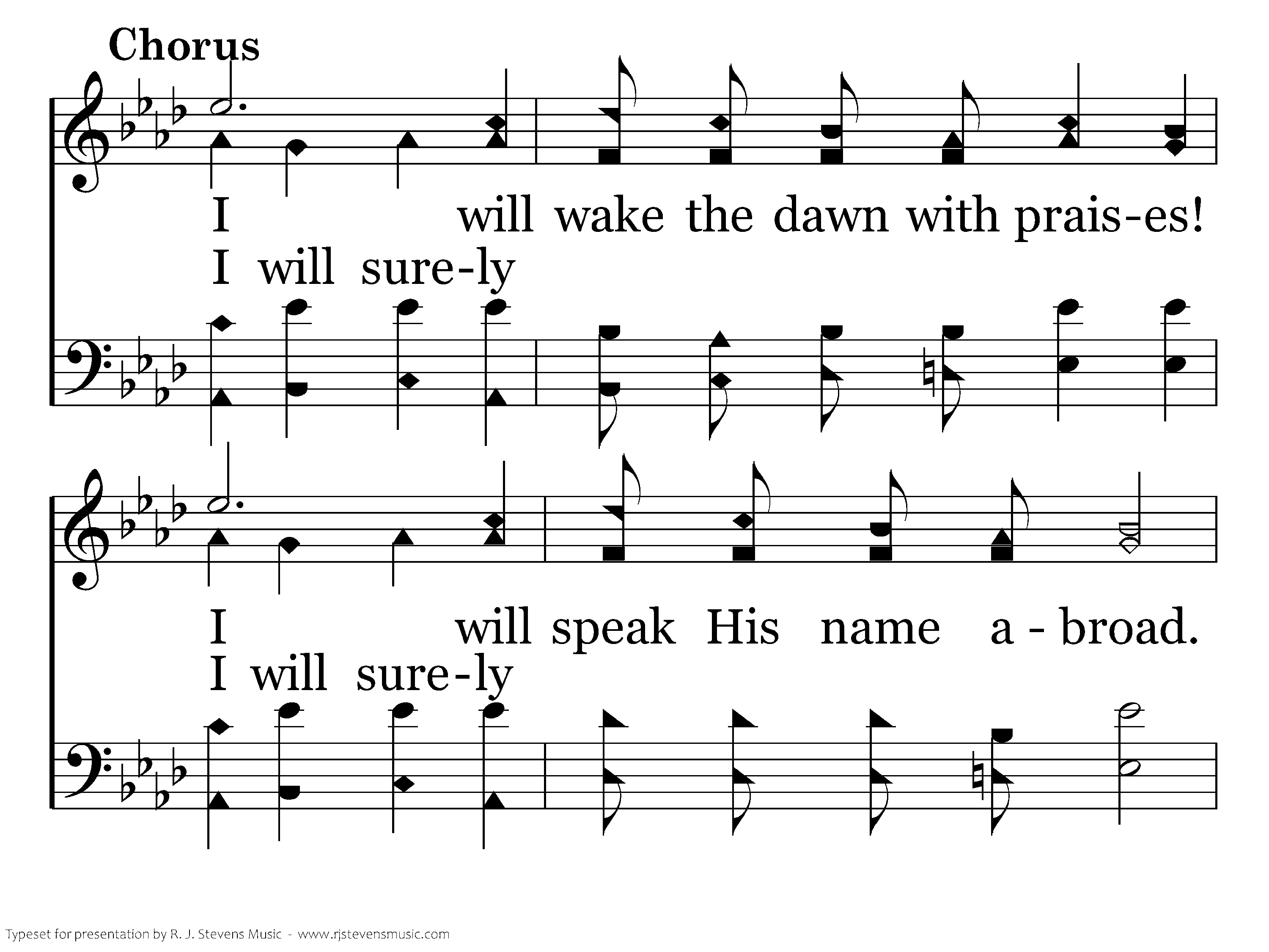 I will surely wake the dawn with praises! I will surely speak His name abroad. I will worship Him forever, He my Lord, my only God.