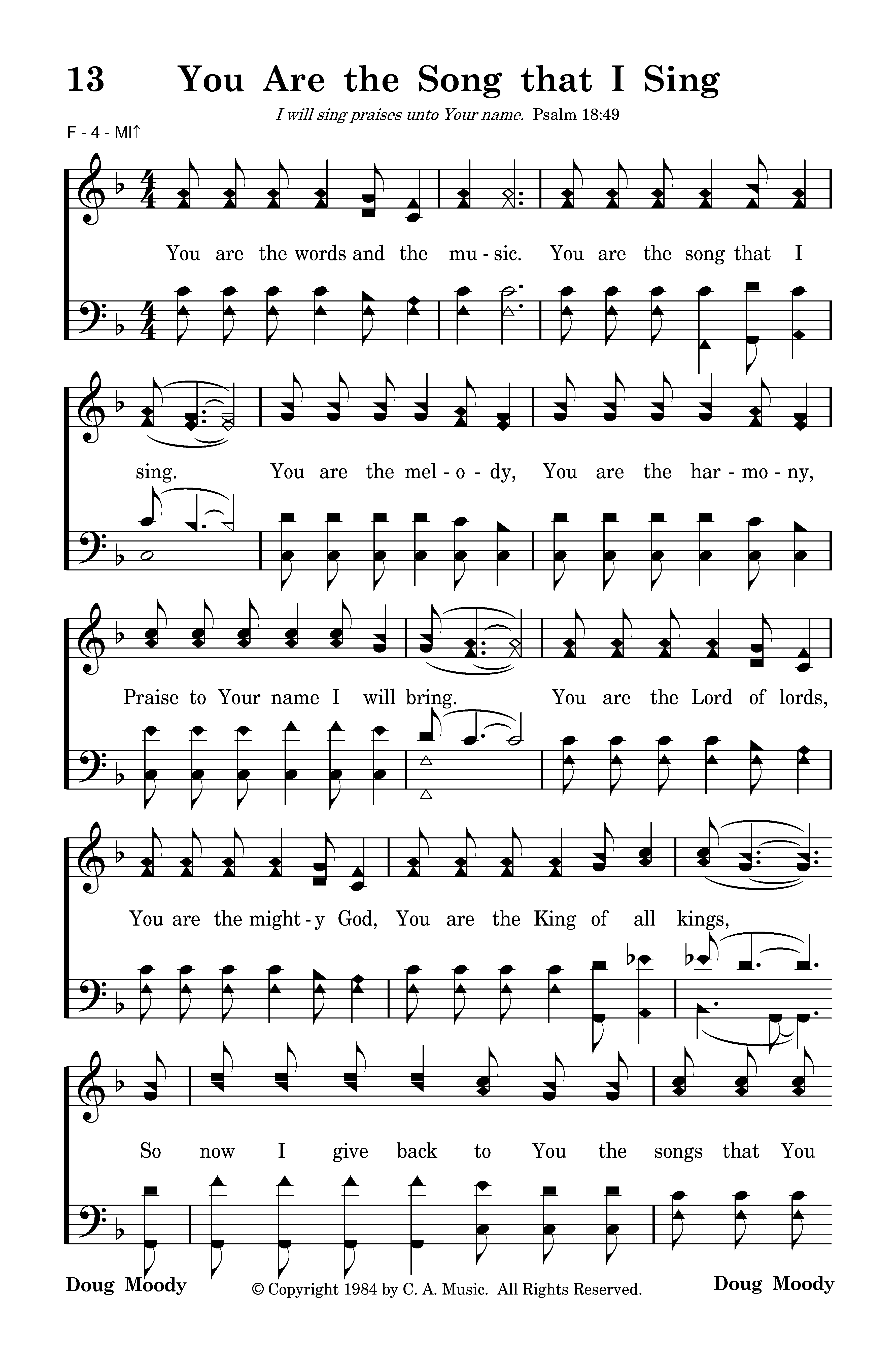 - Copyright © 1986 by C. A. Music. (Admin. by Music Services, Inc.) All Rights Reserved. Used by Permission.