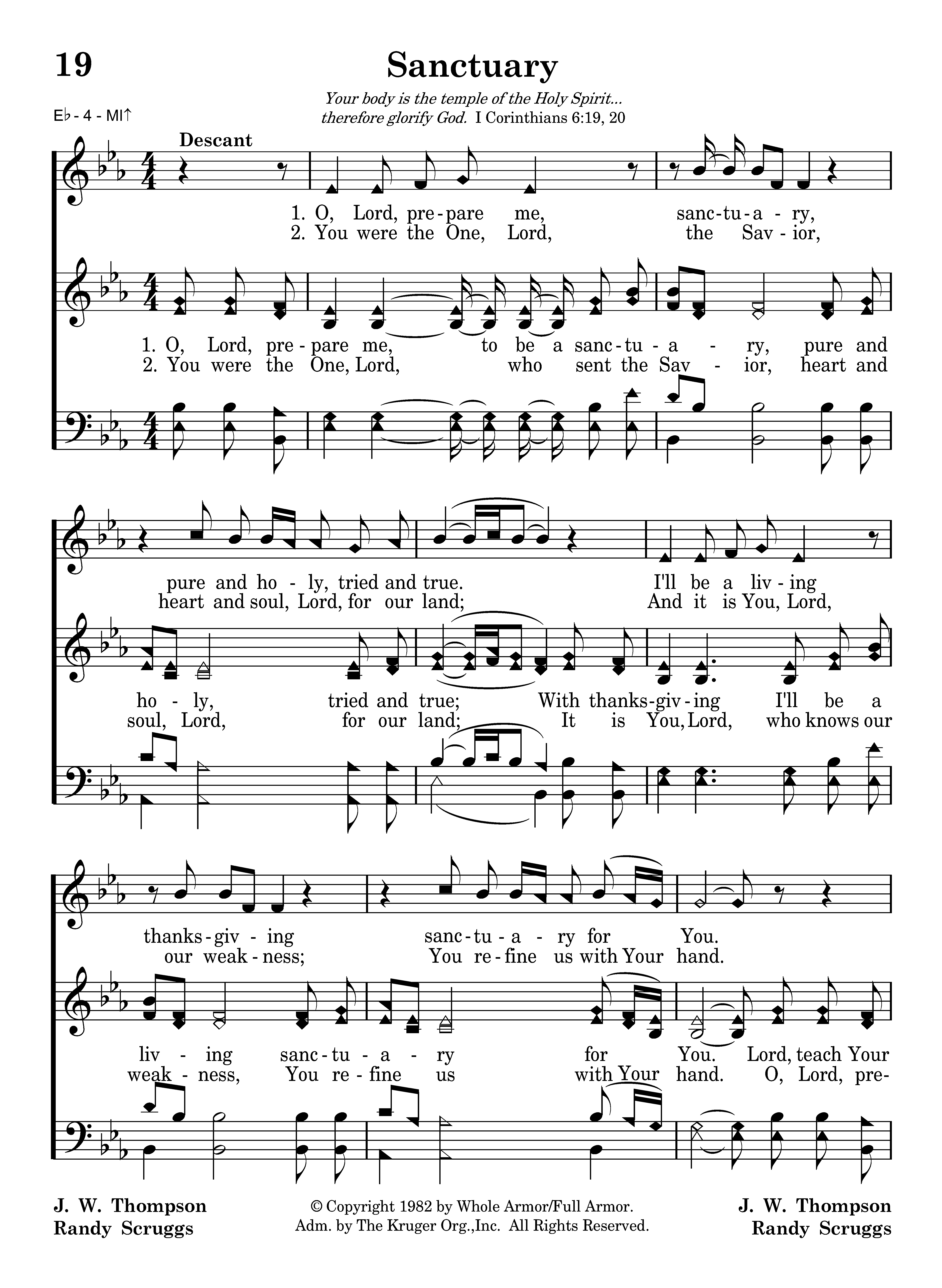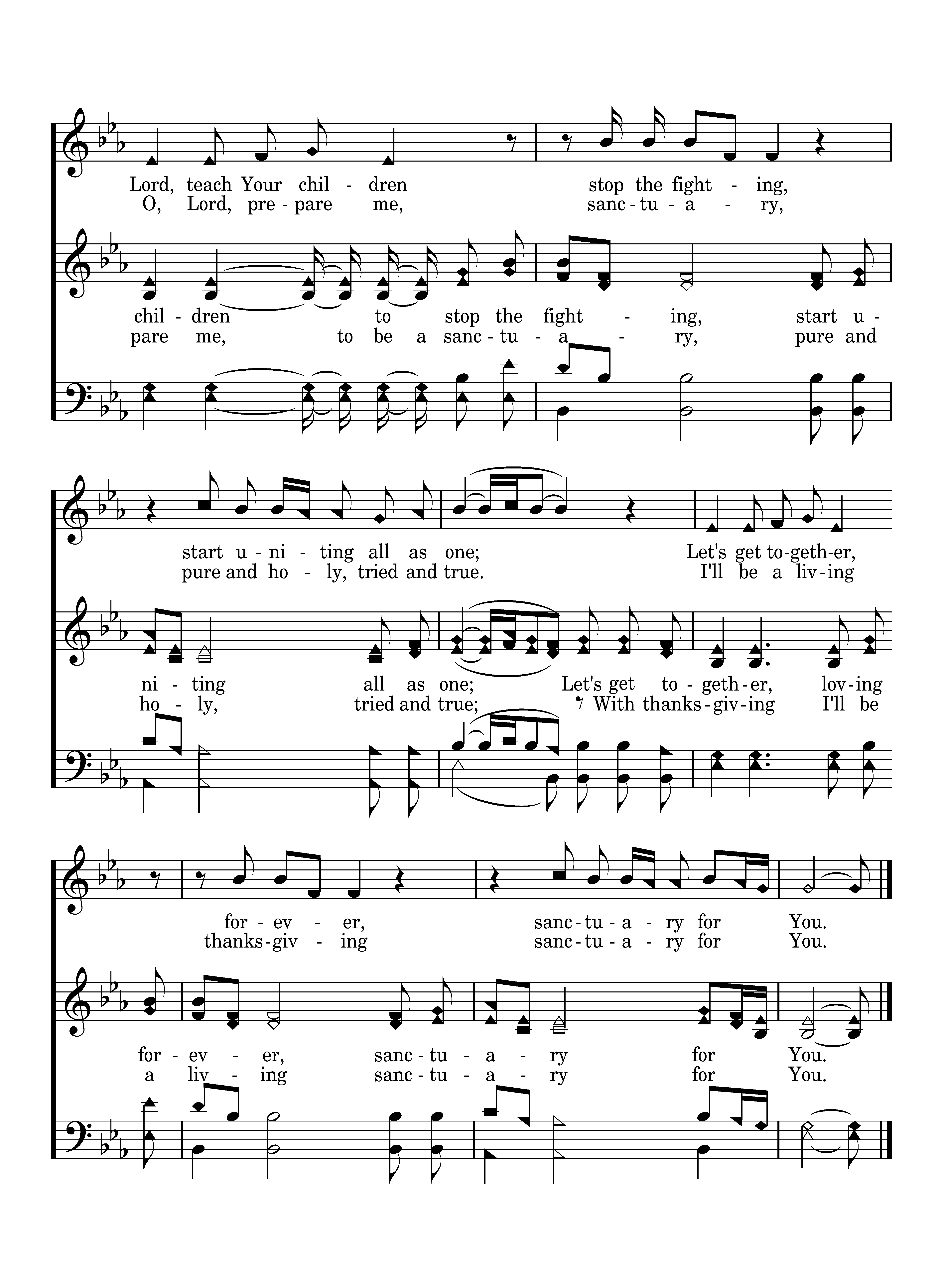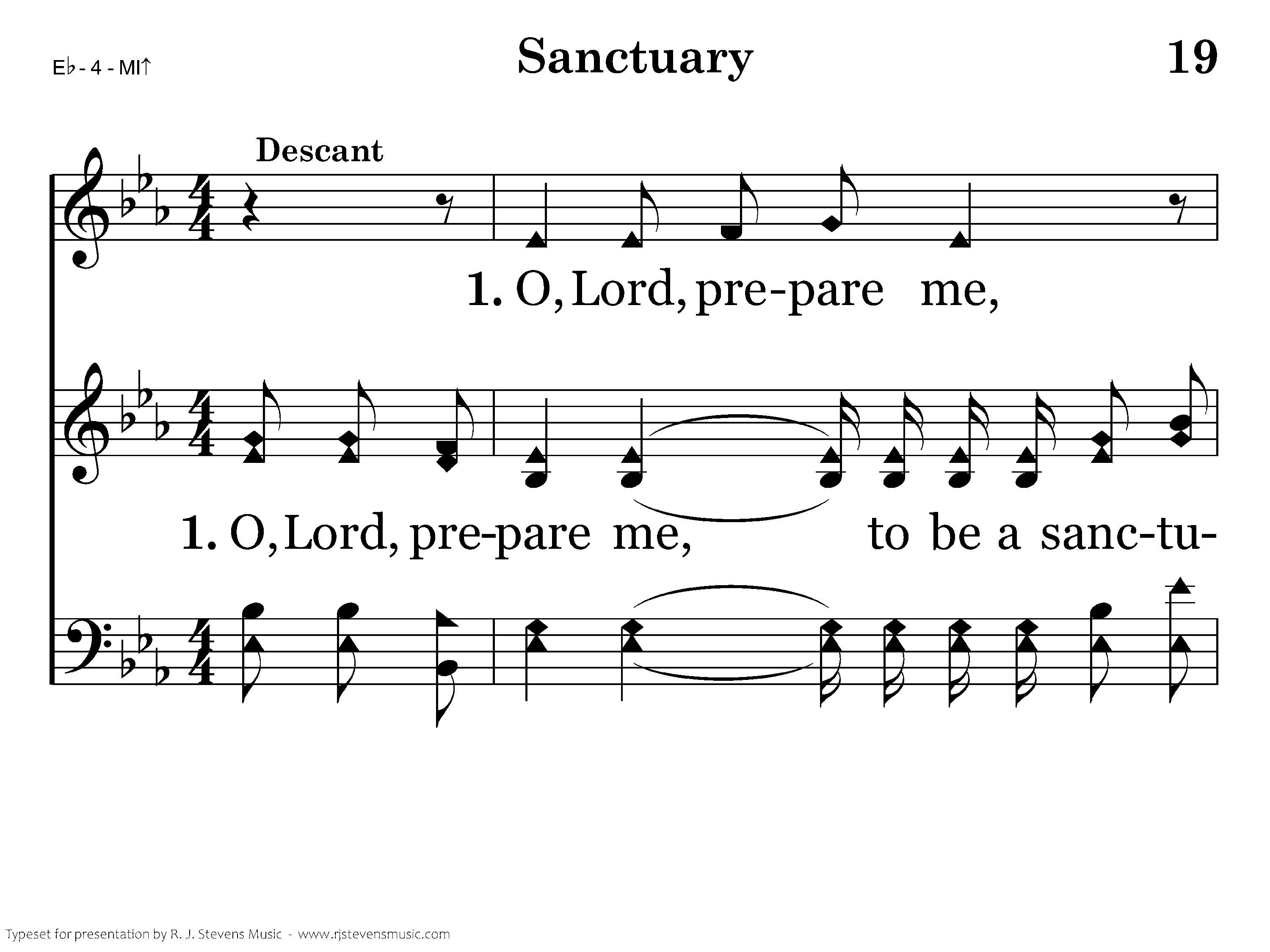 O, Lord, prepare me, to be a sanctuary, pure and holy, tried and true; With thanksgiving I'll be a living sanctuary for You. Lord, teach Your children to stop the fighting, start uniting all as one; Let's get together, loving forever, sanctuary for You.