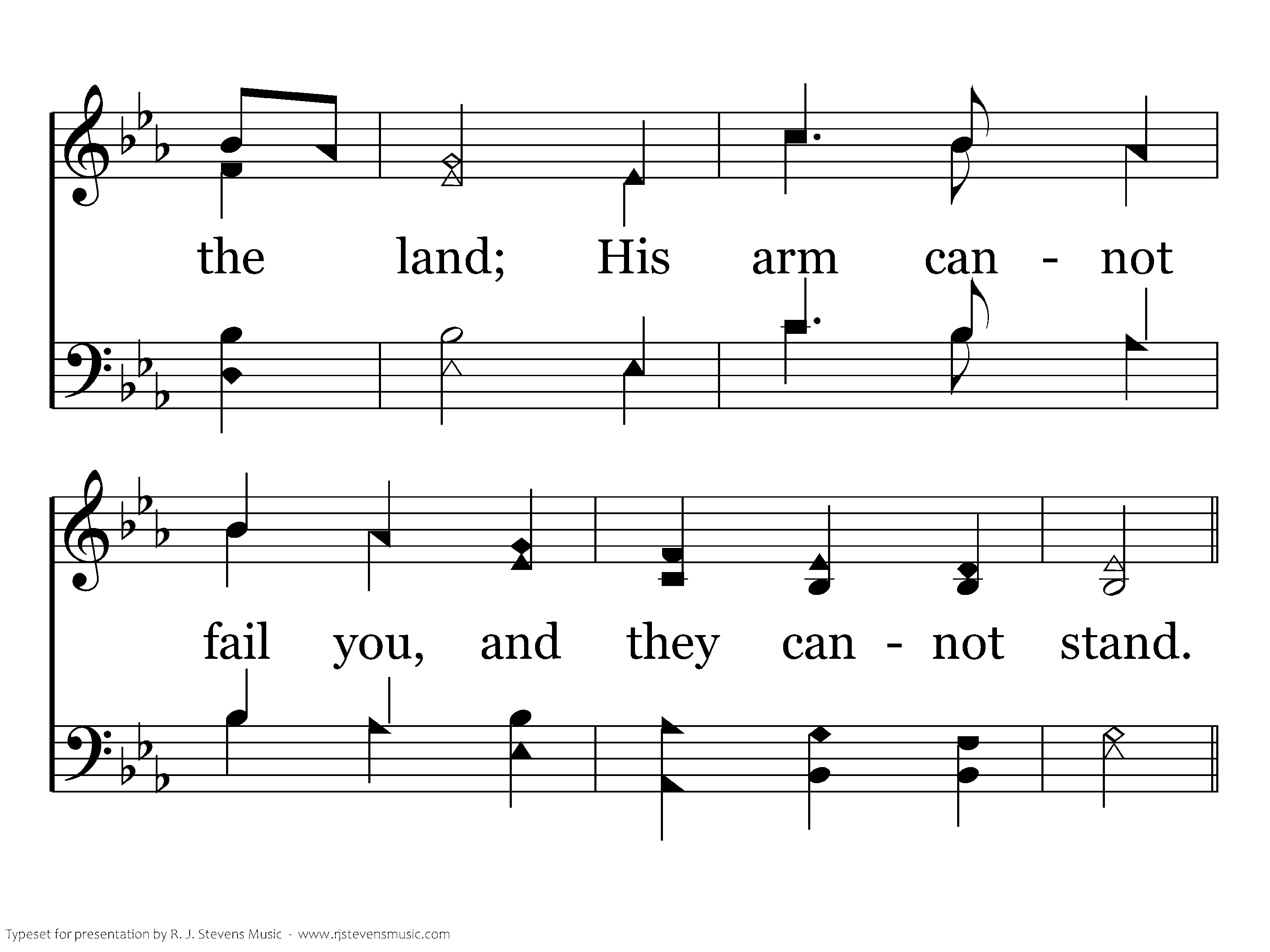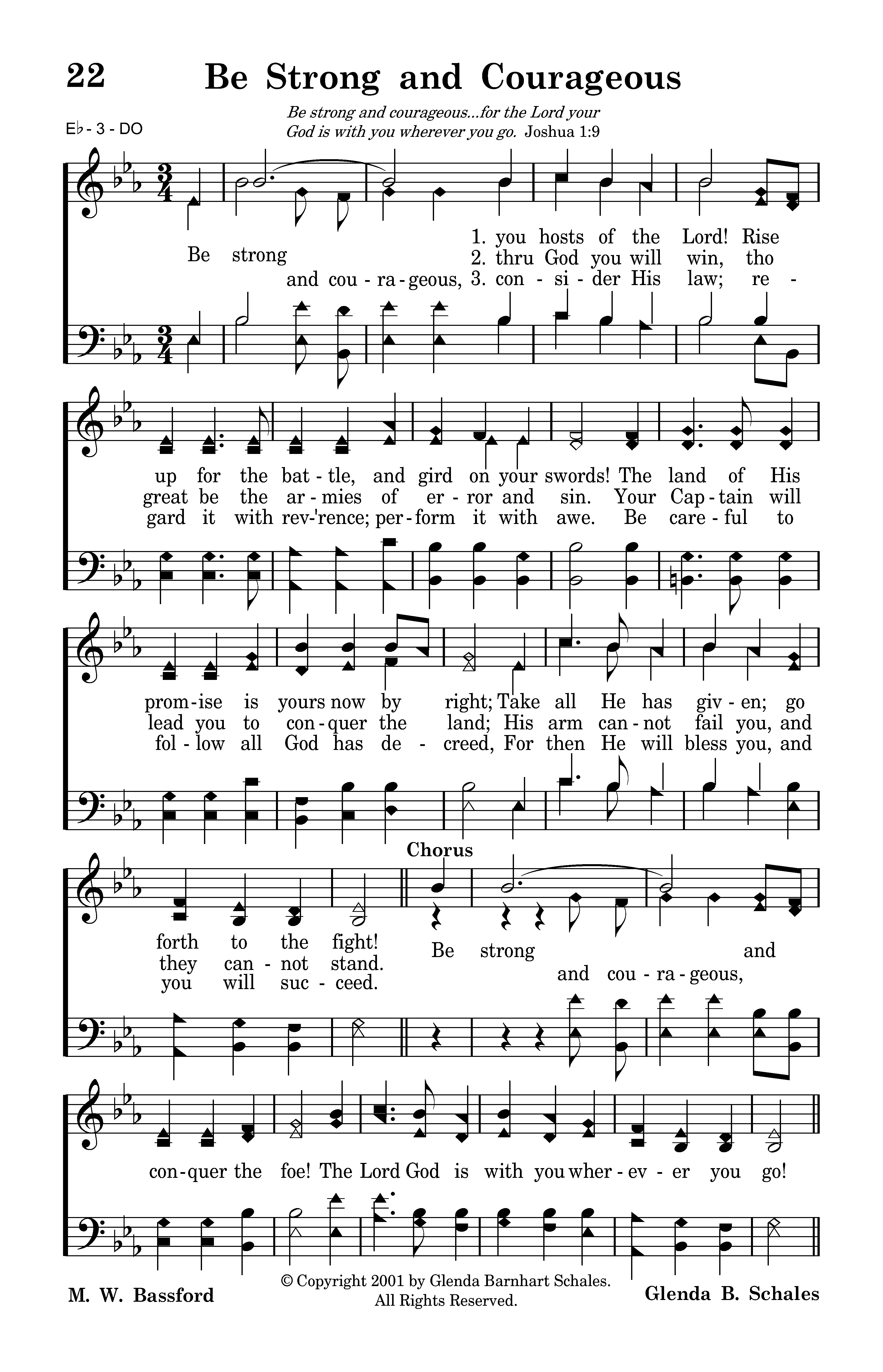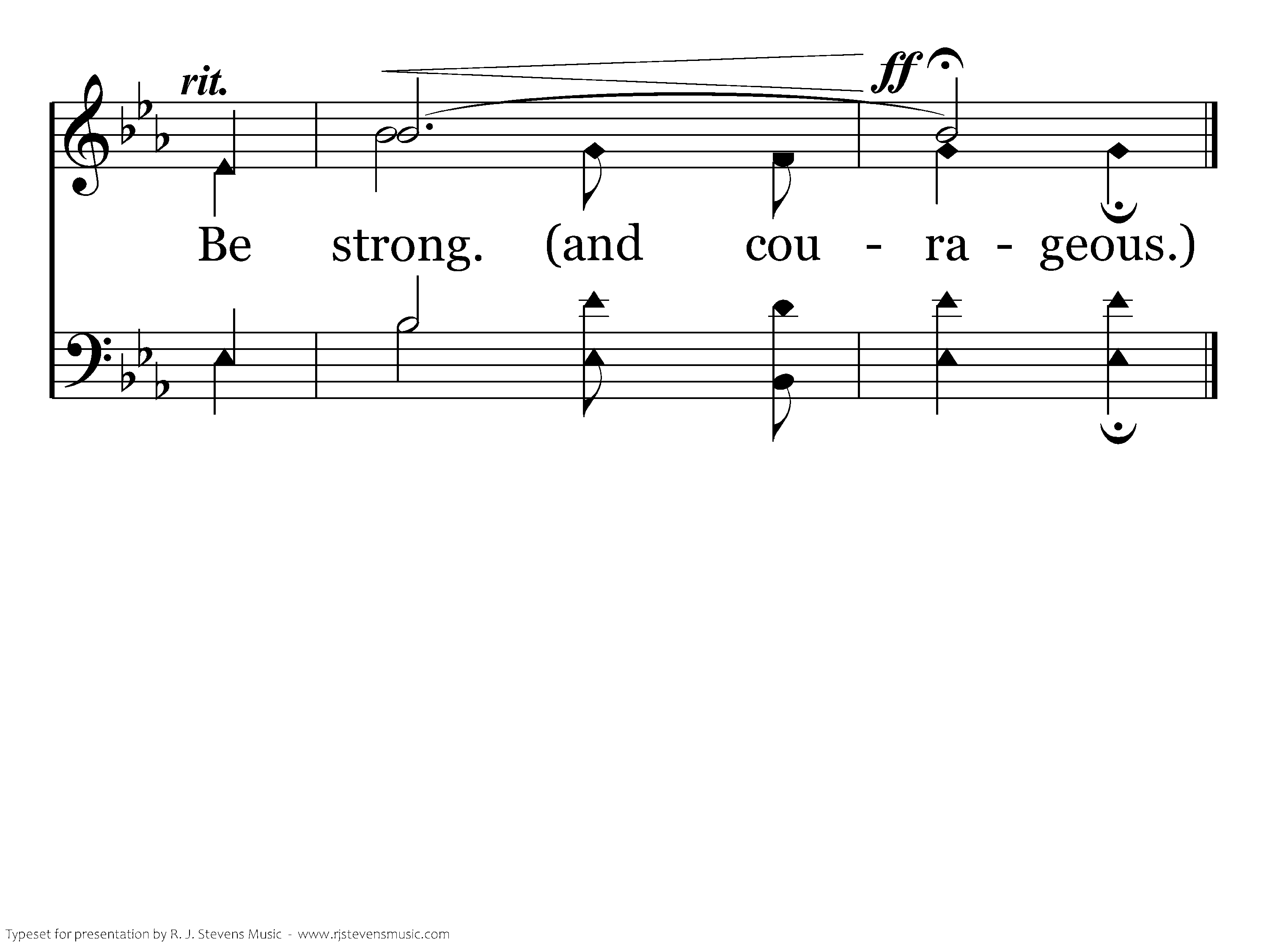 Be strong and courageous, you hosts of the Lord! Rise up for the battle, and gird on your swords! The land of His promise is yours now by right; Take all He has given; go forth to the fight!