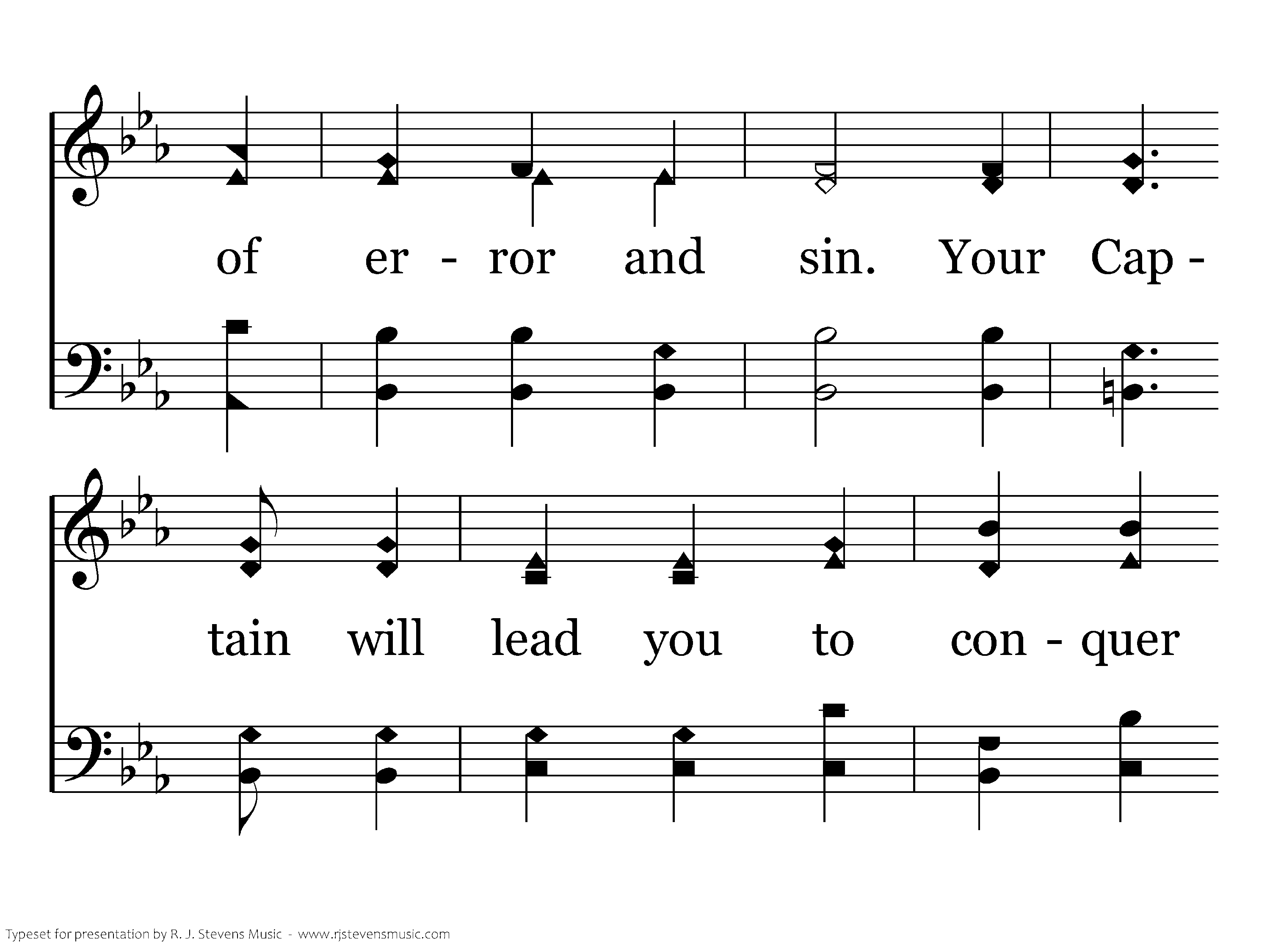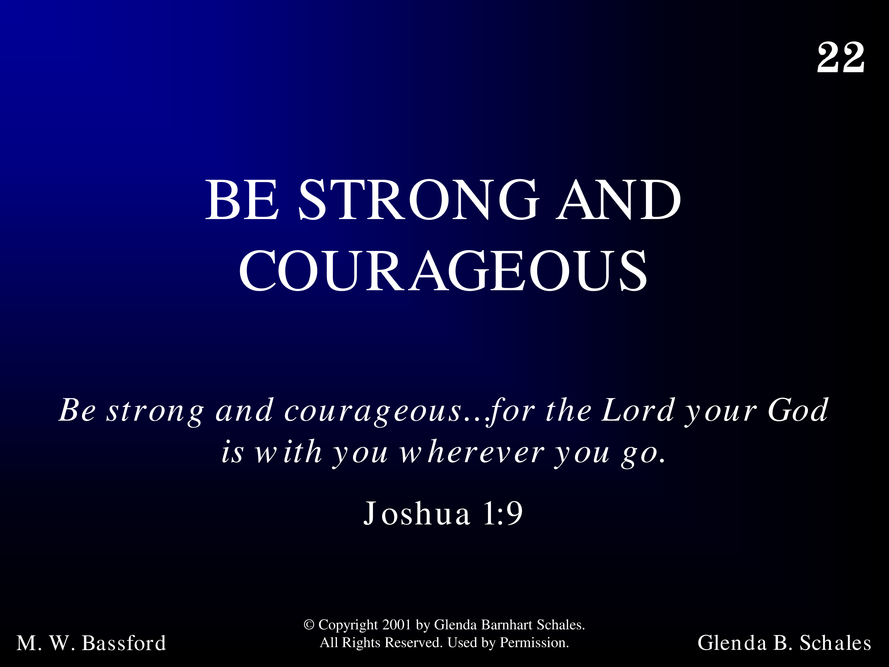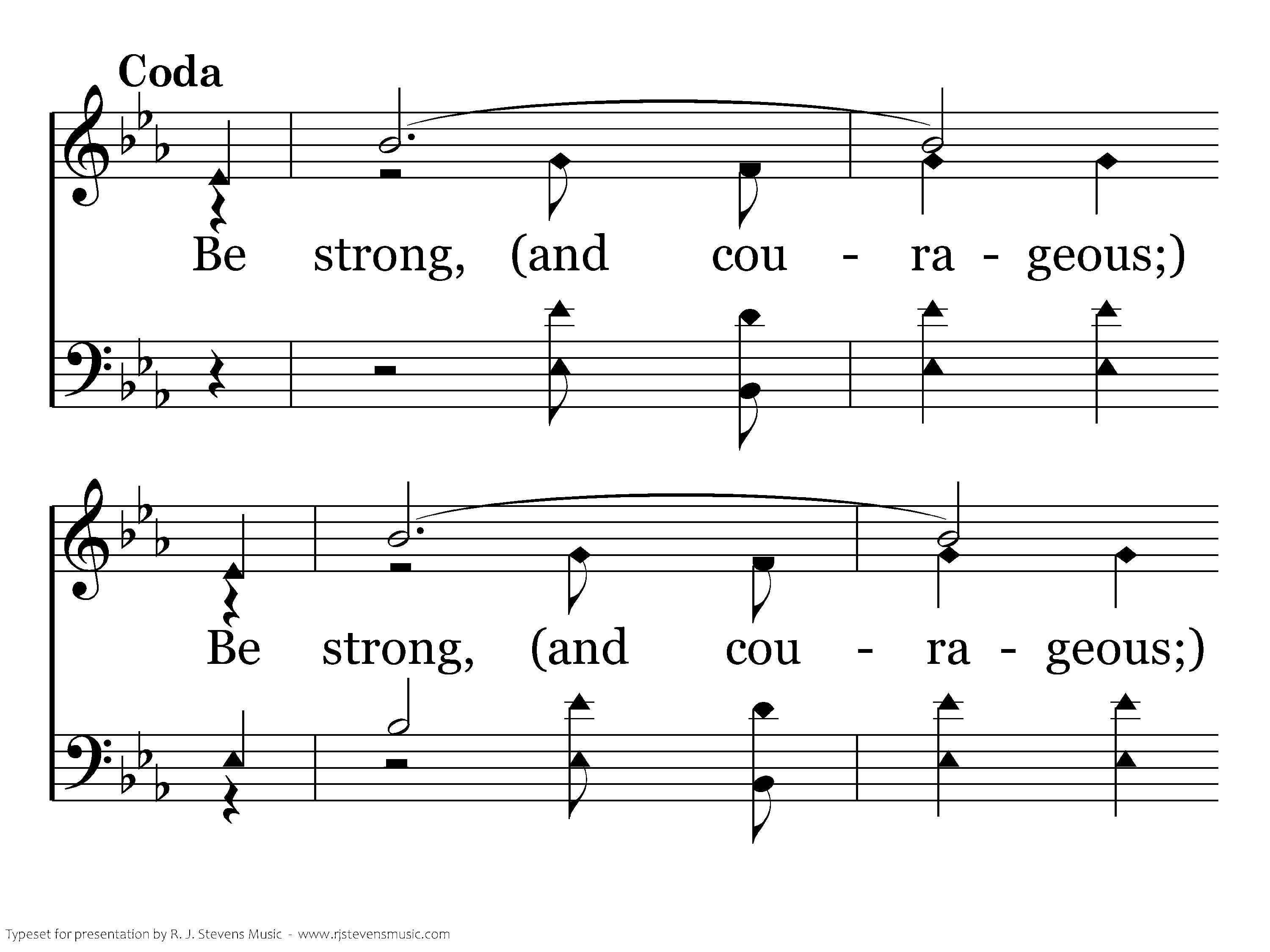 Be strong and courageous, you hosts of the Lord! Rise up for the battle, and gird on your swords! The land of His promise is yours now by right; Take all He has given; go forth to the fight!