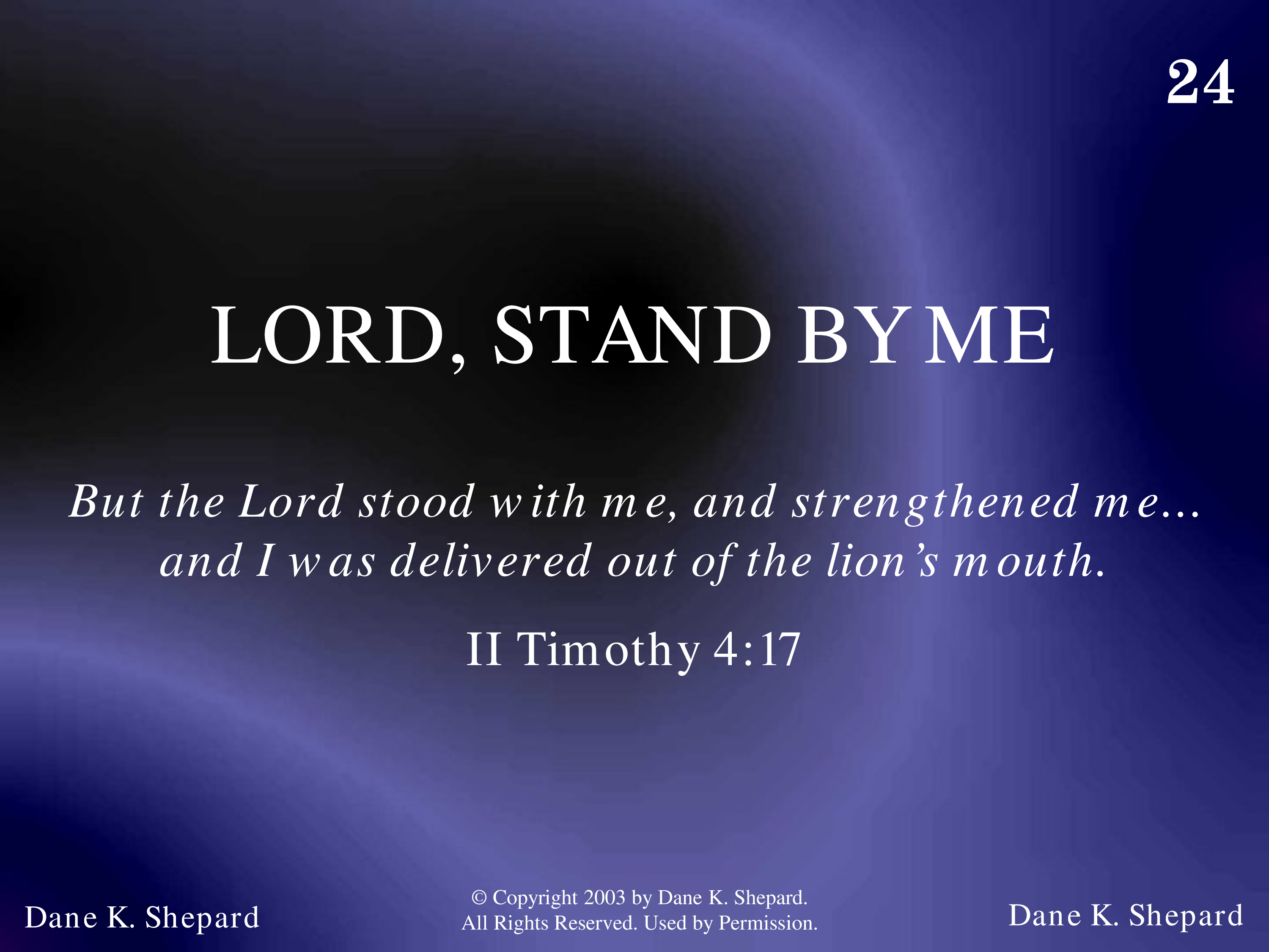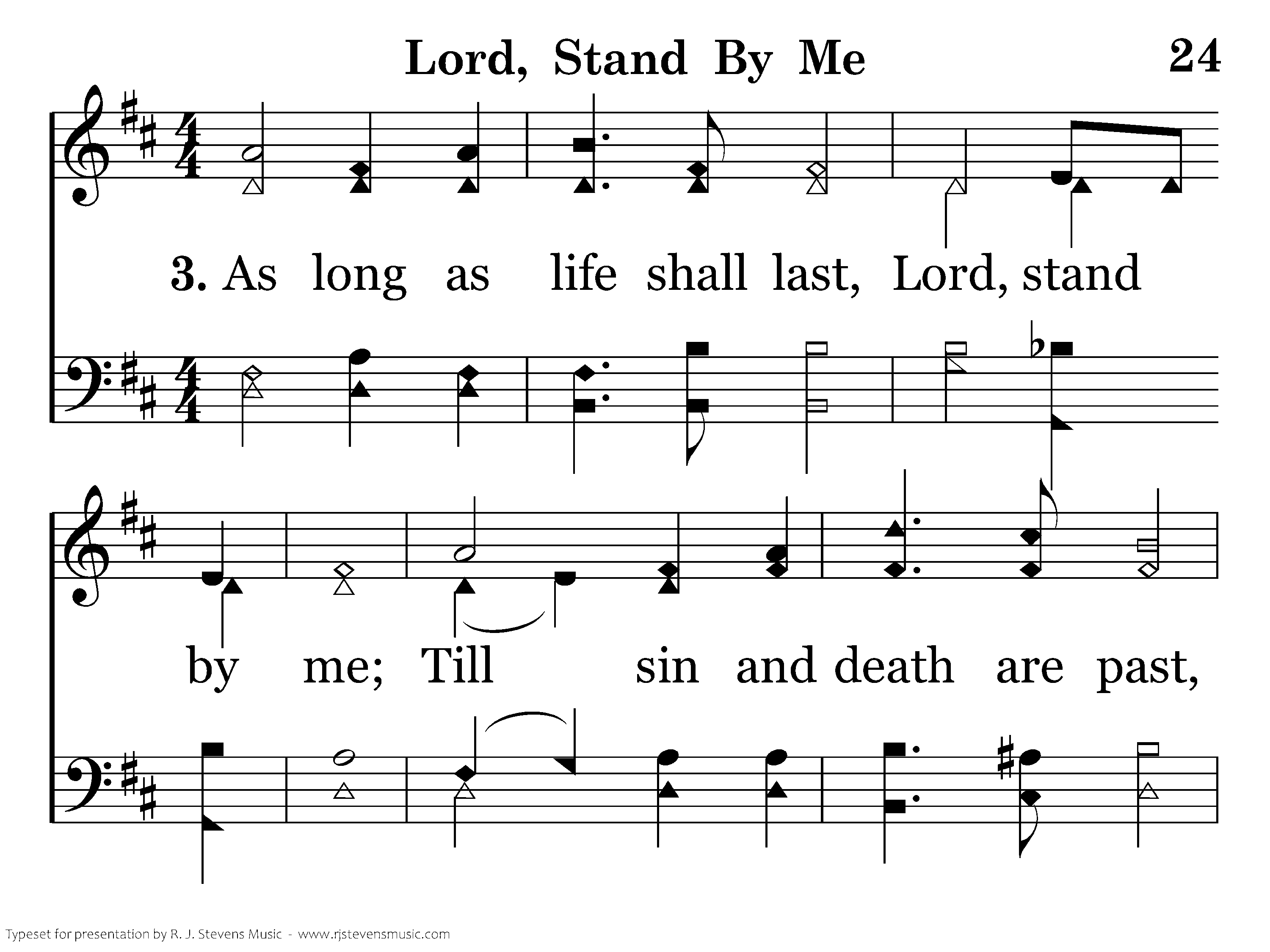 As long as life shall last, Lord, stand by me; Till sin and death are past, Lord, stand by me; Till heaven's gates appear, Thy face I see, And evermore I'm Thine; Lord, stand by me.