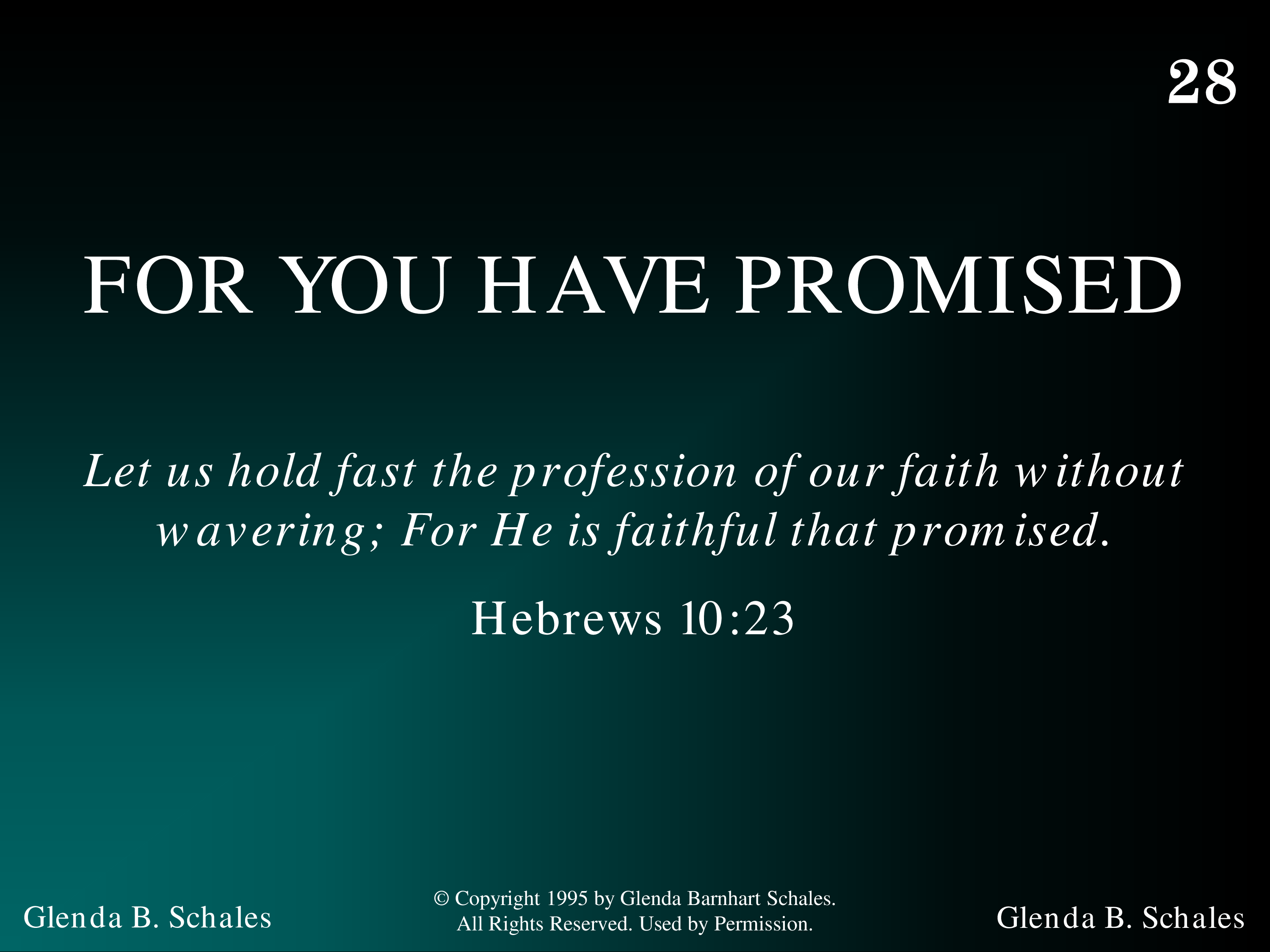 - Copyright © 1995 by Glenda Barnhart Schales. All Rights Reserved. Used by Permission.