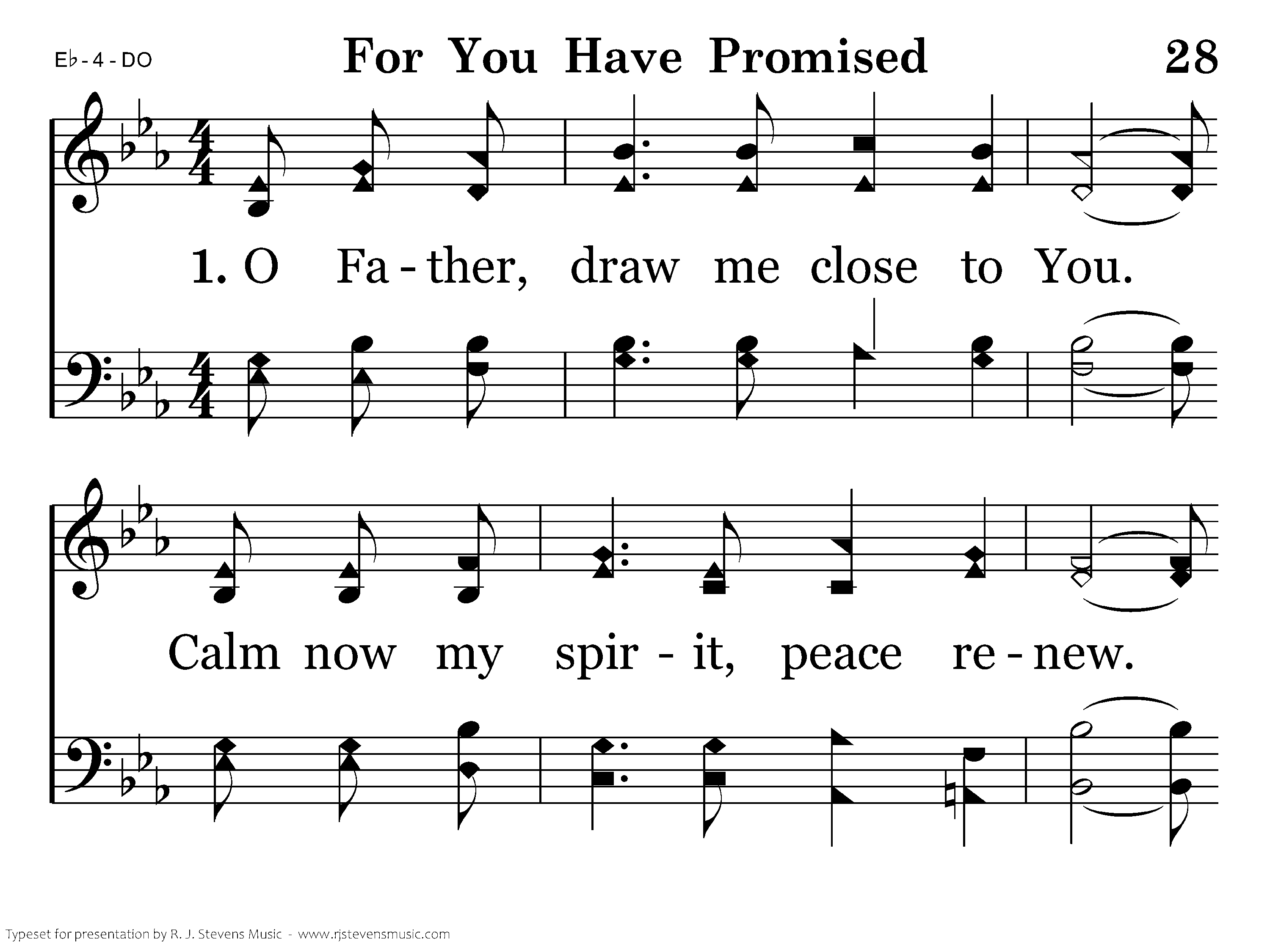 O Father, draw me close to You. Calm now my spirit, peace renew. And yes, I know You hear, for You are near, For You have promised, and I believe.