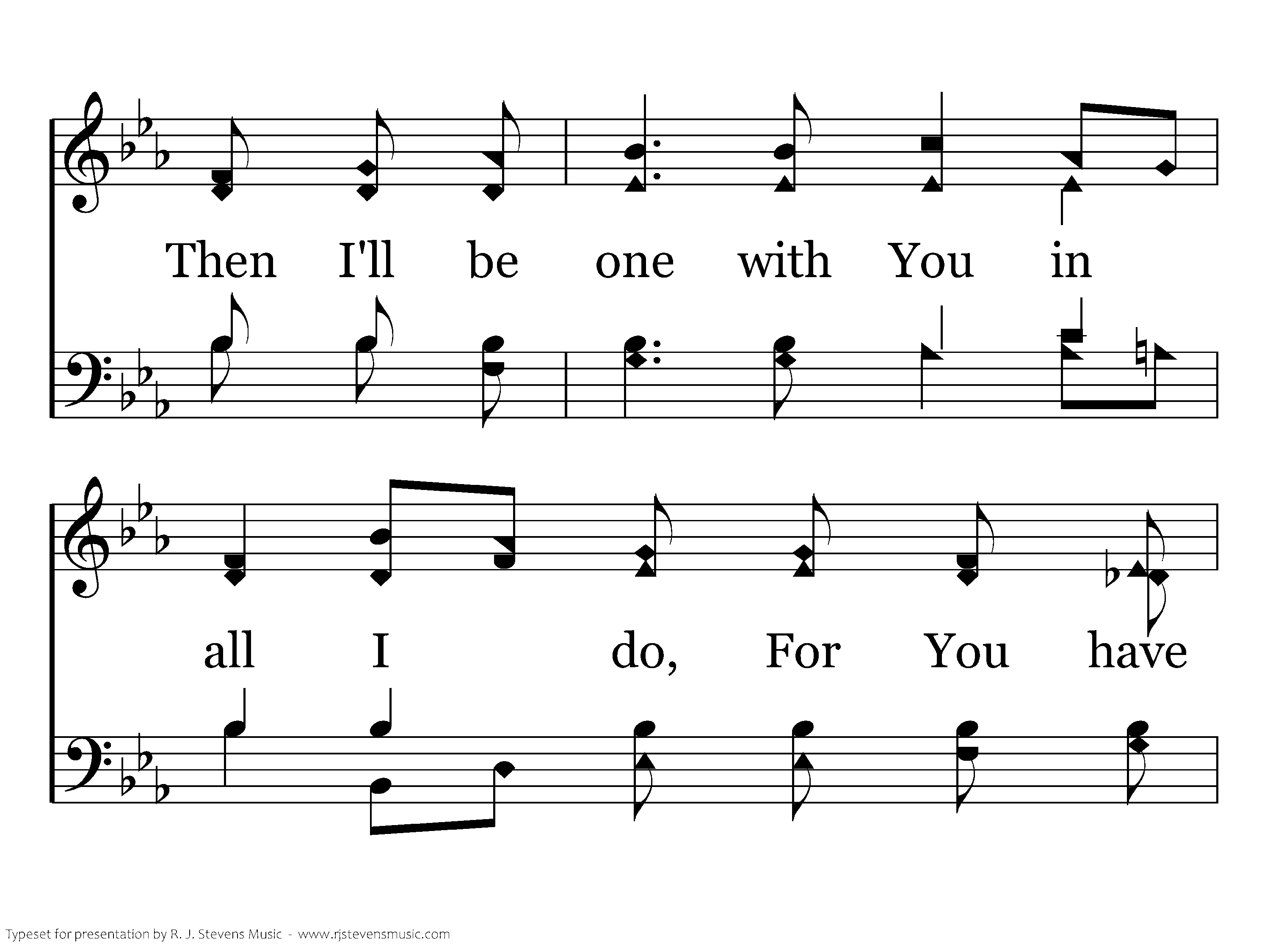 Secure my heart, Lord, as I kneel. Make sure my trust, my all, I yield. Then I'll be one with You in all I do, For You have promised, and I believe.