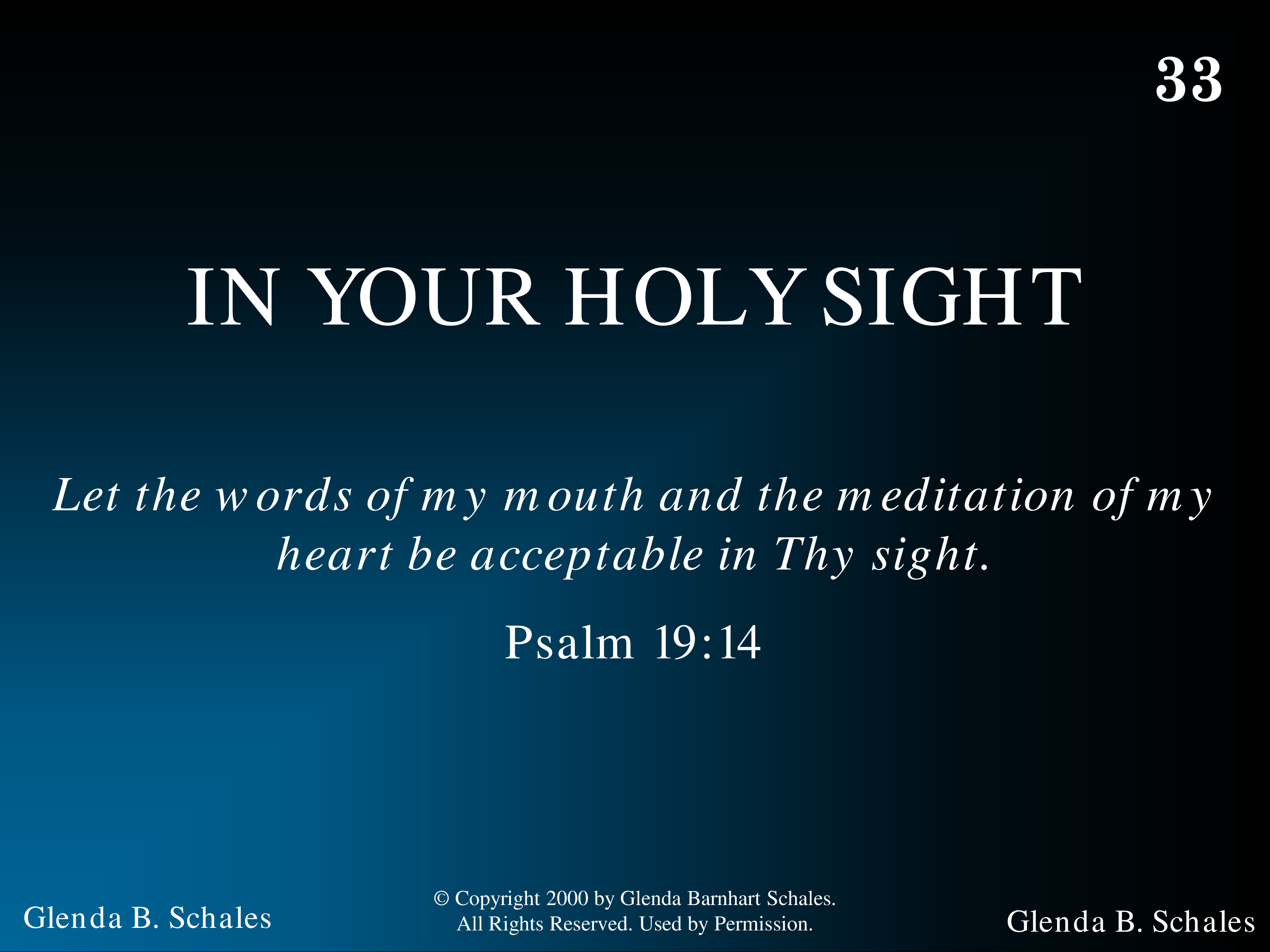 - Copyright © 2000 by Glenda B. Schales. All Rights Reserved. Used by Permission.