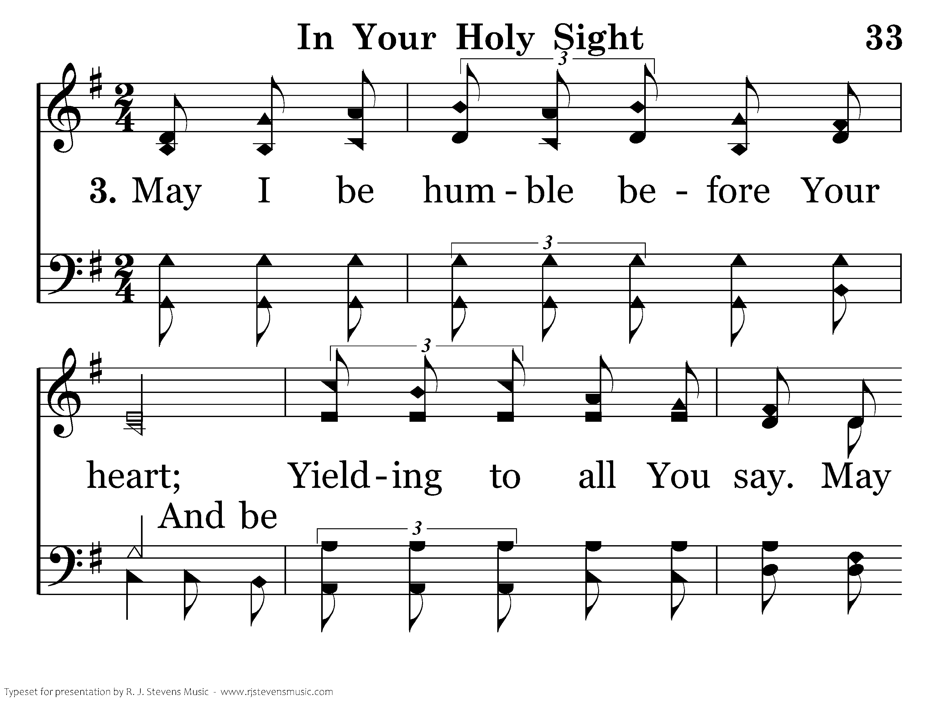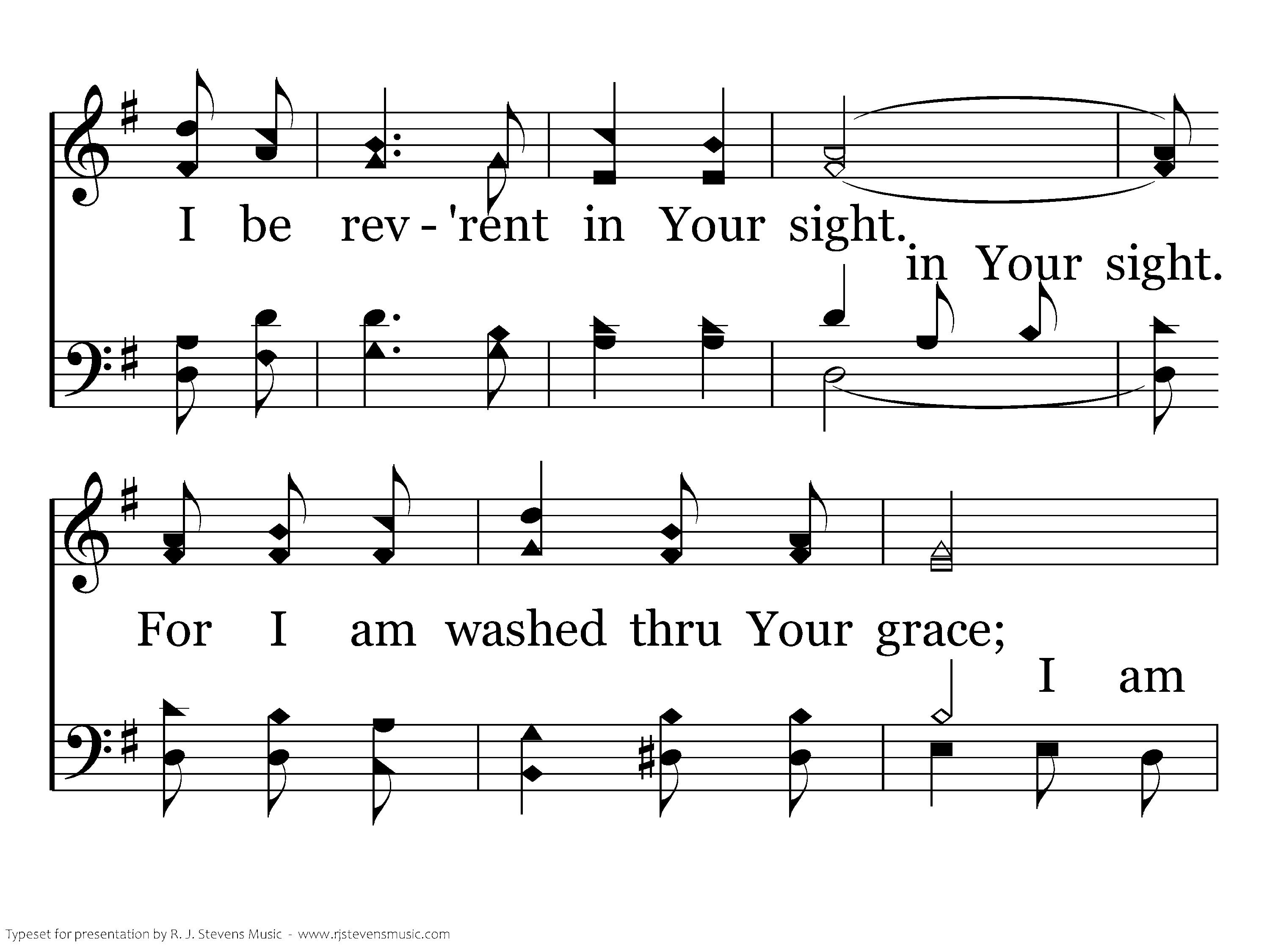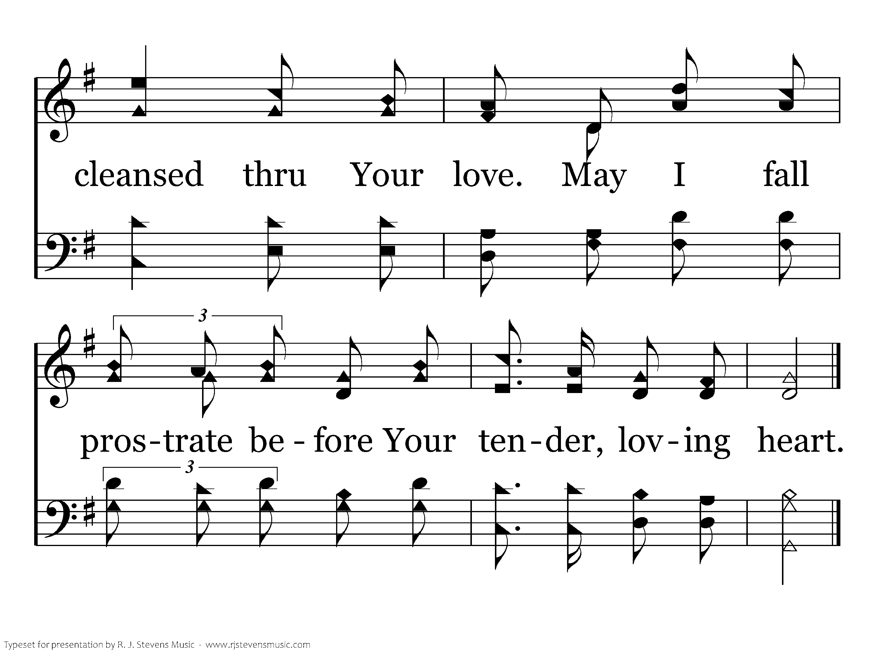 May I be humble before Your heart; (And be) Yielding to all You say. May I be rev'rent in Your sight. (in Your sight.) For I am washed thro' Your grace; (I am) cleansed thro' Your love. May I fall prostrate before Your tender, loving heart.