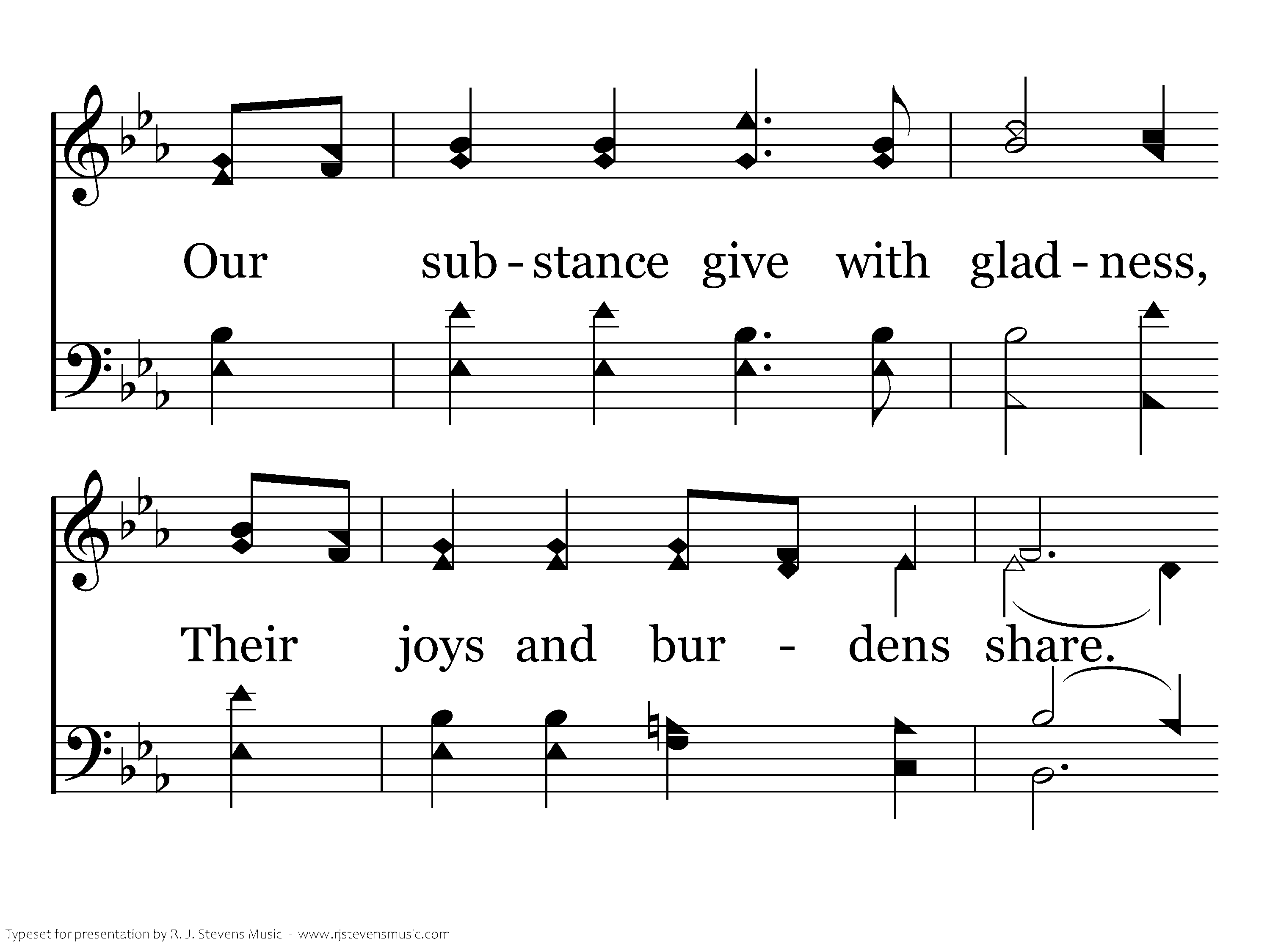 May we, who also serve Thee, Serve them in thought and prayer, Our substance give with gladness, Their joys and burdens share. To give them strength and comfort, May we their hands uphold Till all Thy sheep who're straying Are gathered in Thy fold.