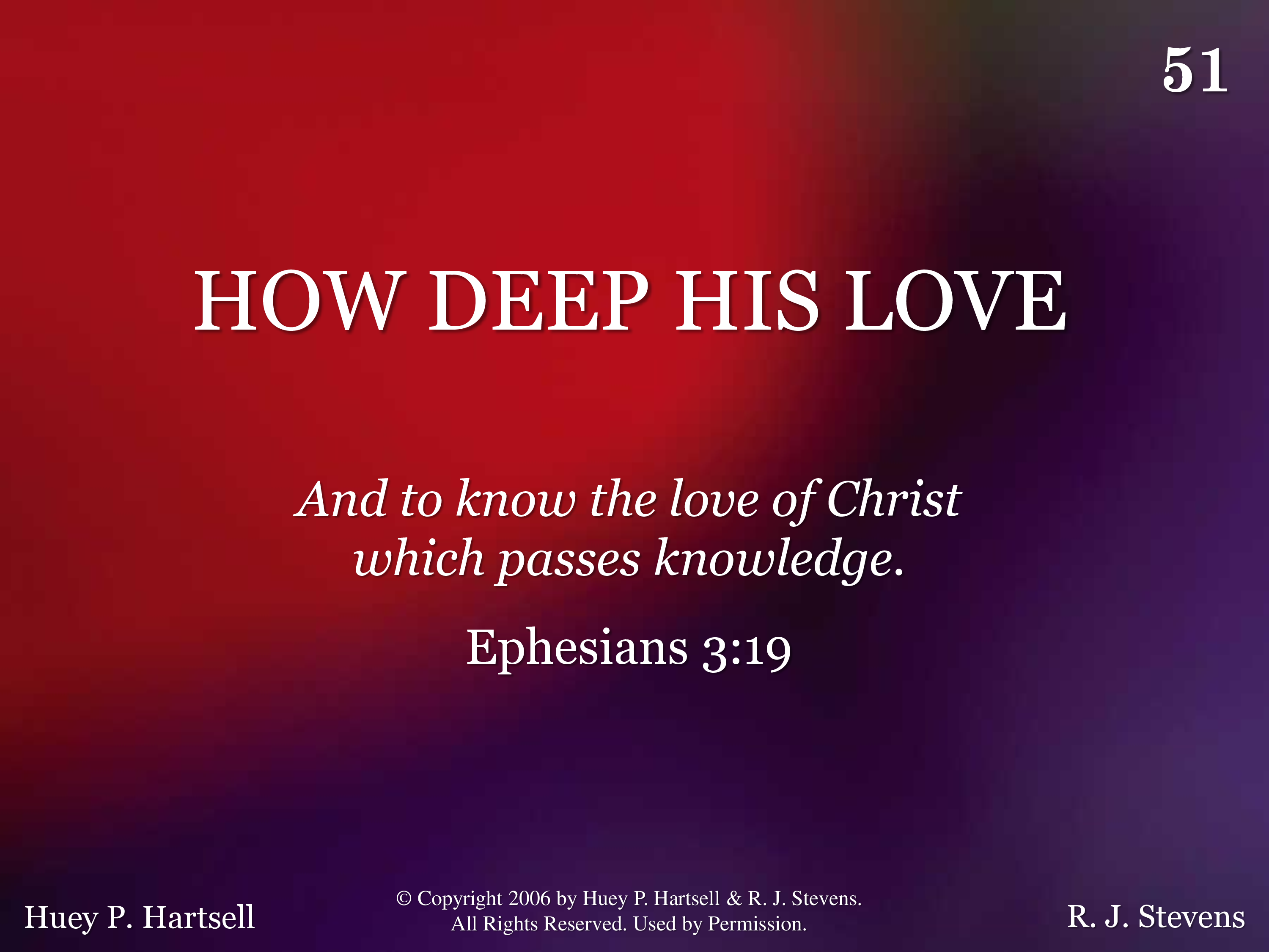How deep His love, with broken heart; to bear my sins, from God, did part. Labor of soul, God, satisfied; When His own Son, was crucified.