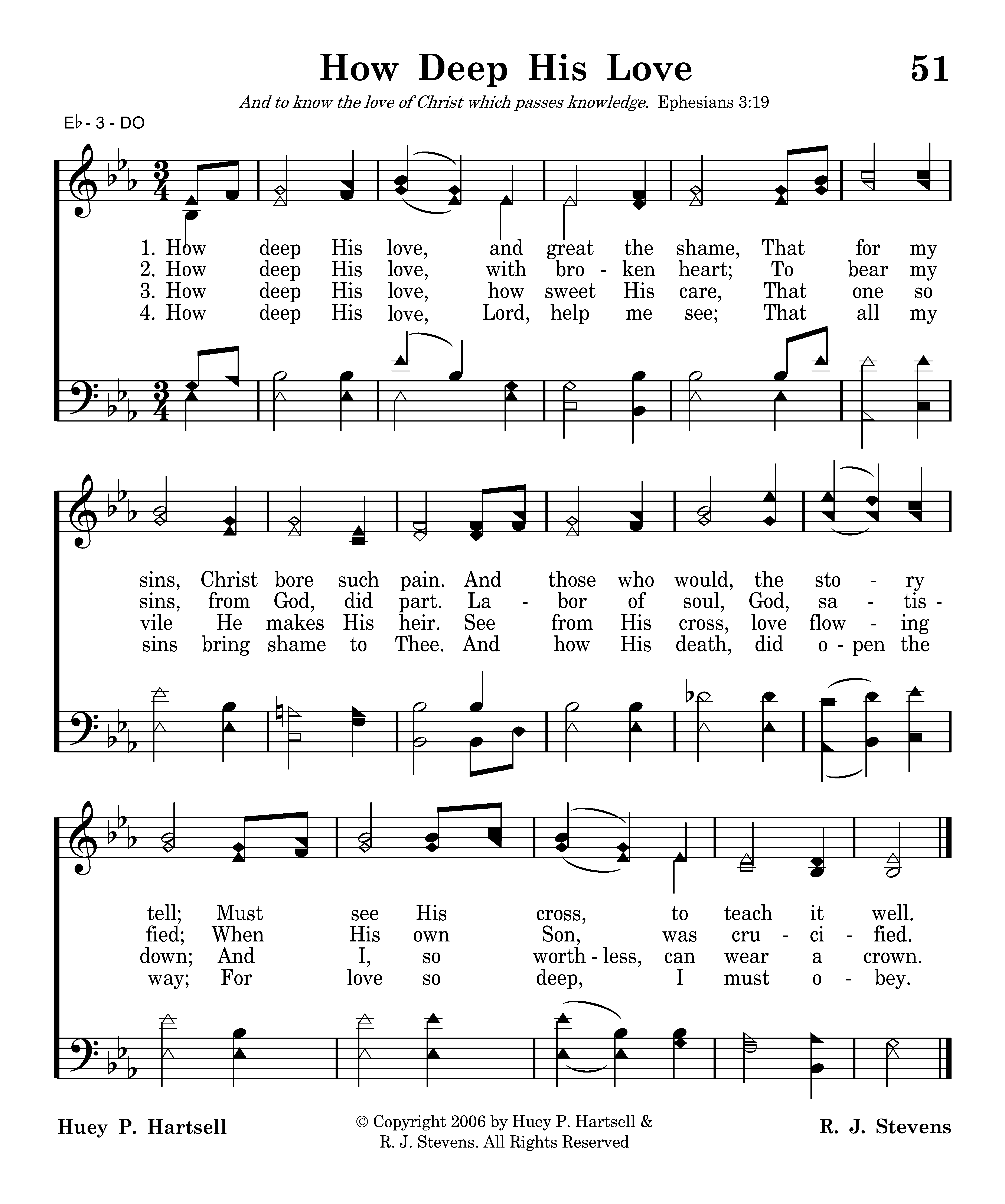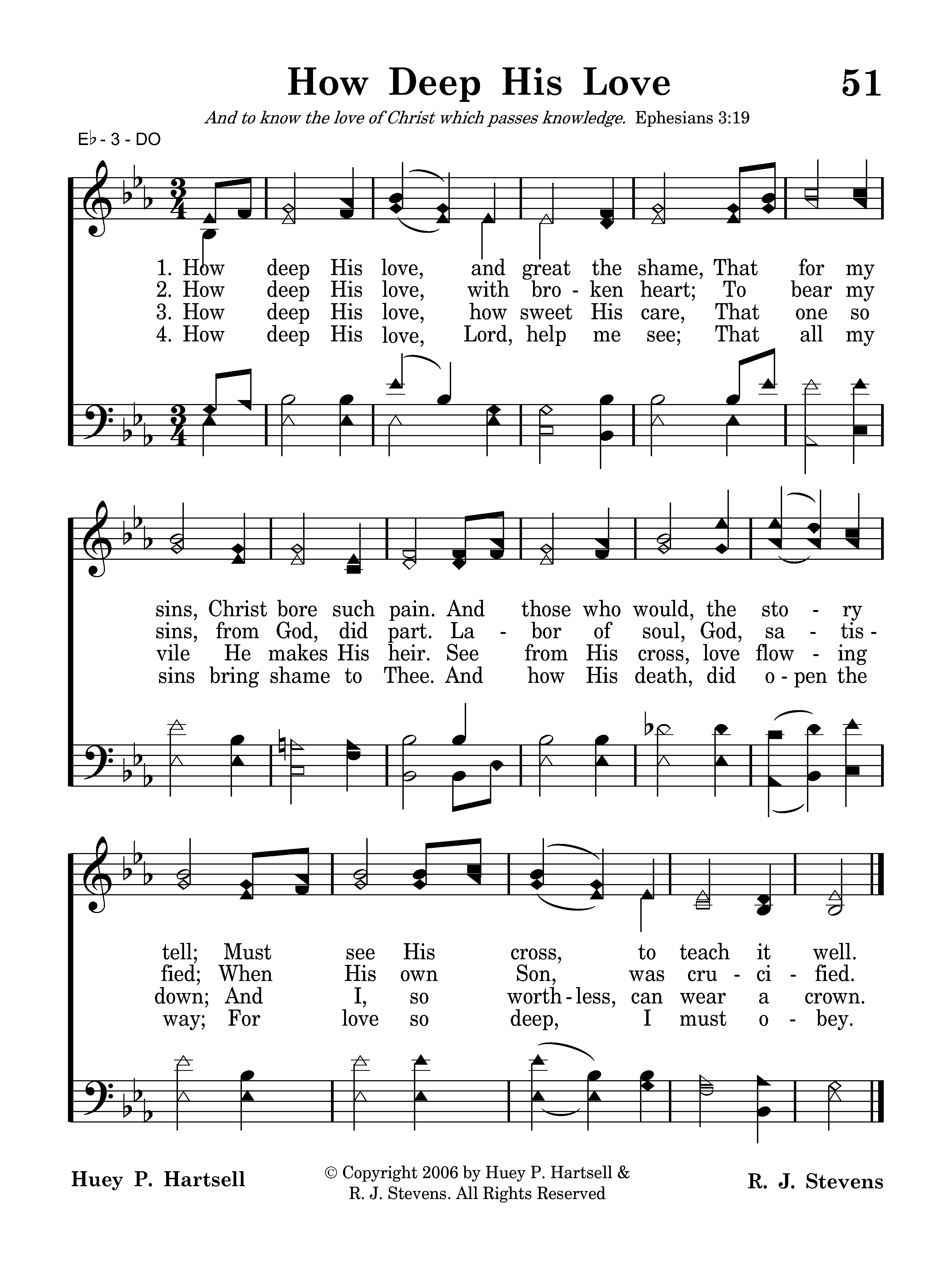 How deep His love, and great the shame, that for my sins, Christ bore such pain. And those who would, the story tell; Must see His cross, To teach it well.
